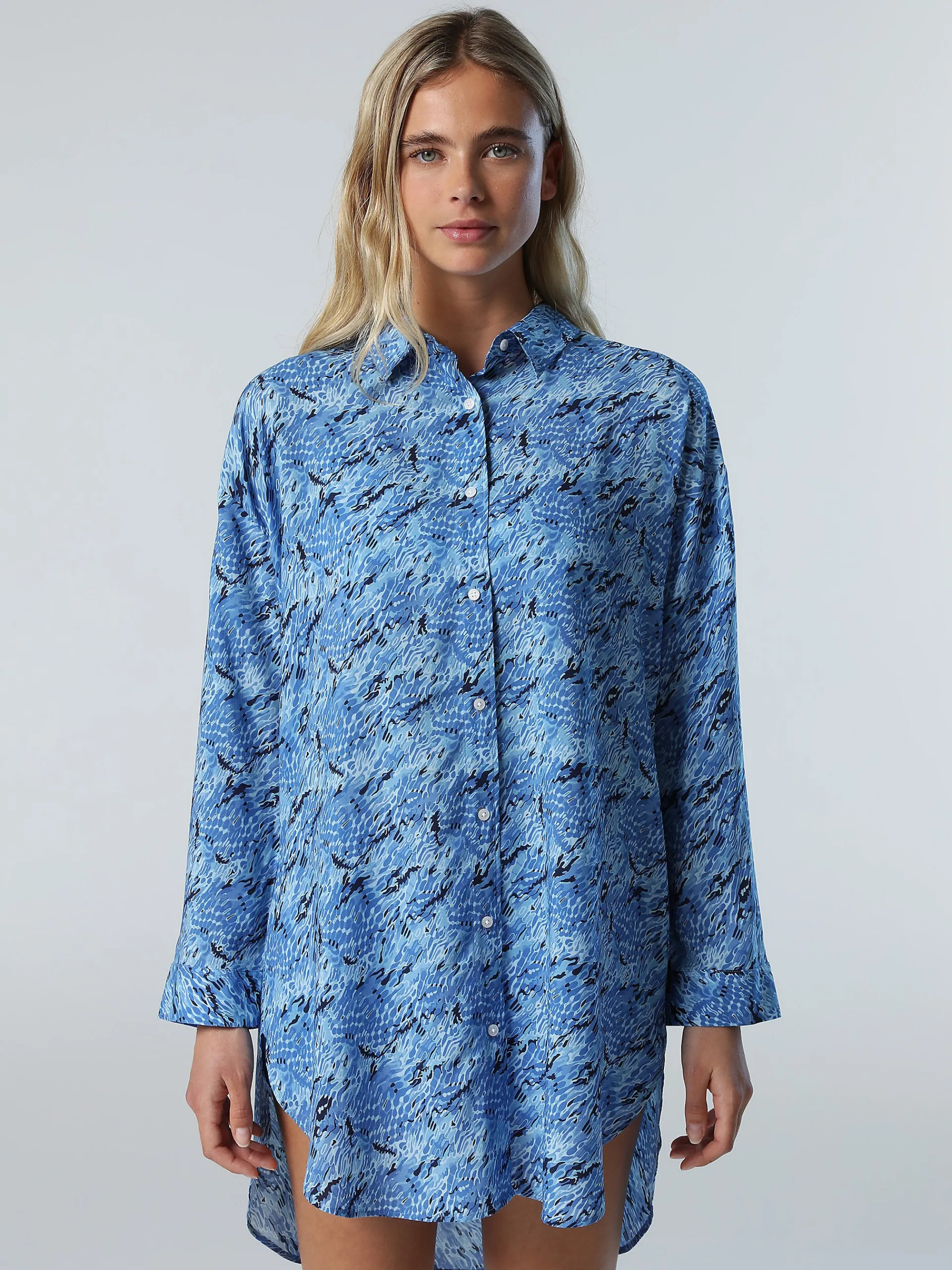 L'abito chemisier realizzato in morbida viscosa è perfetto da indossare durante i mesi più caldi. Il modello ha una linea classica d'ispirazione sartoriale con colletto a camicia, l'orlo arrotondato e la piega a cannoncino sul retro. La sua silhouette oversize è impreziosita dalla label logata riflettente sul lato che aggiunge una nota ricercata.