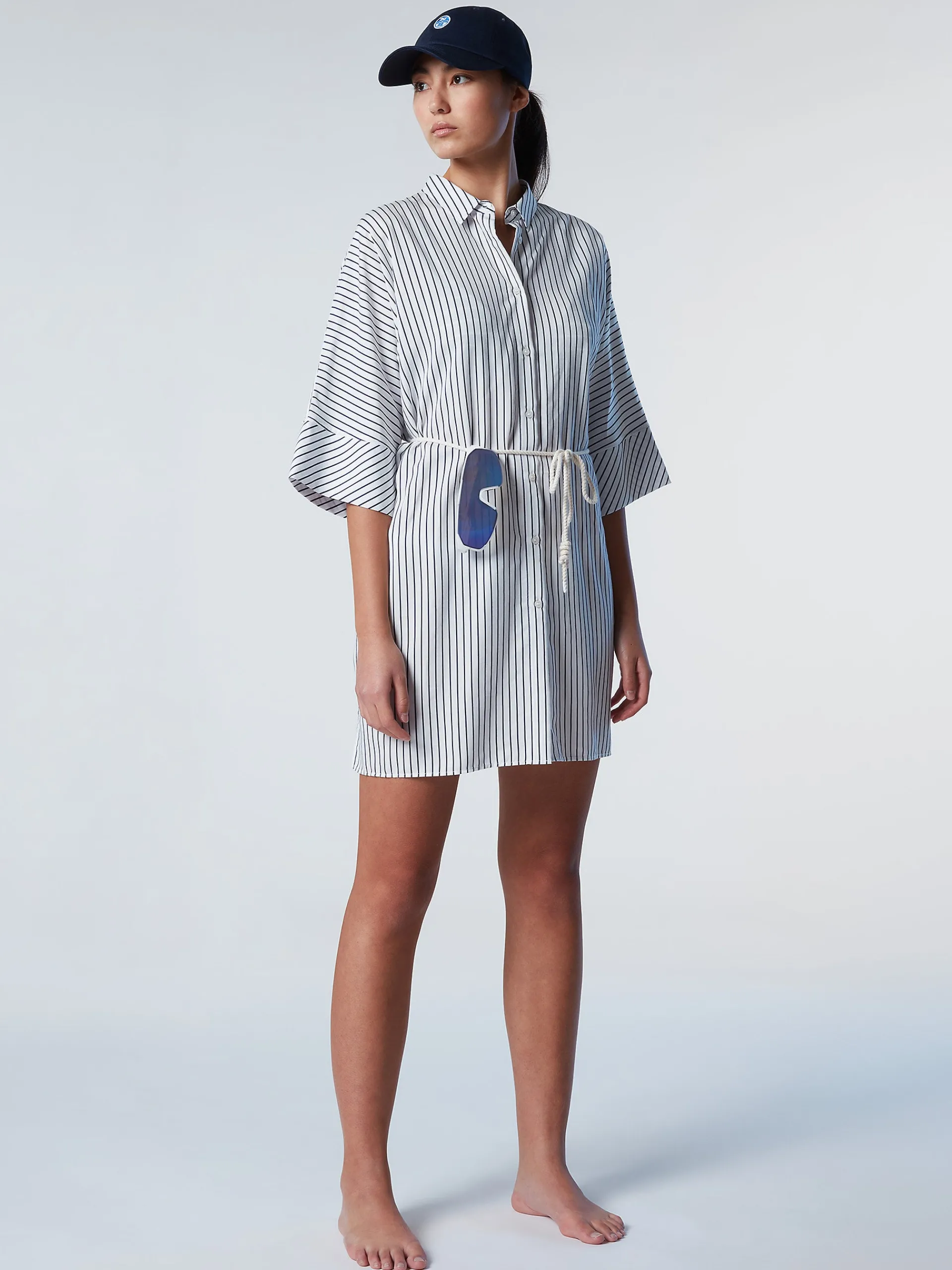 Un abito facile da indossare sopra il costume in spiaggia e come passe-partout dell'estate. Il modello è realizzato in misto viscosa con il classico motivo a righe e la coulisse in corda che richiamano l'heritage North Sails legato al mare e alla vela. Si caratterizza per le ampie maniche a kimono per una silhouette rilassata e versatile.