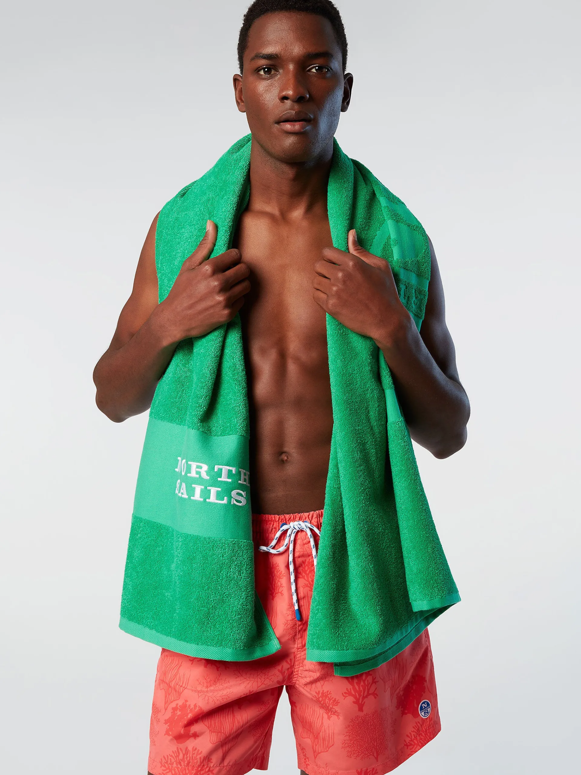 Questi boxer mare con stampa grafica all over lasciano il segno in piscina e in spiaggia. Il modello combina stile e rispetto per il Pianeta perché è realizzato in poliestere riciclato e ha un finish ultra morbido effetto pesca. Rifinito con il logo sulla gamba e la coulisse a righe che richiama il nostro heritage nautico.