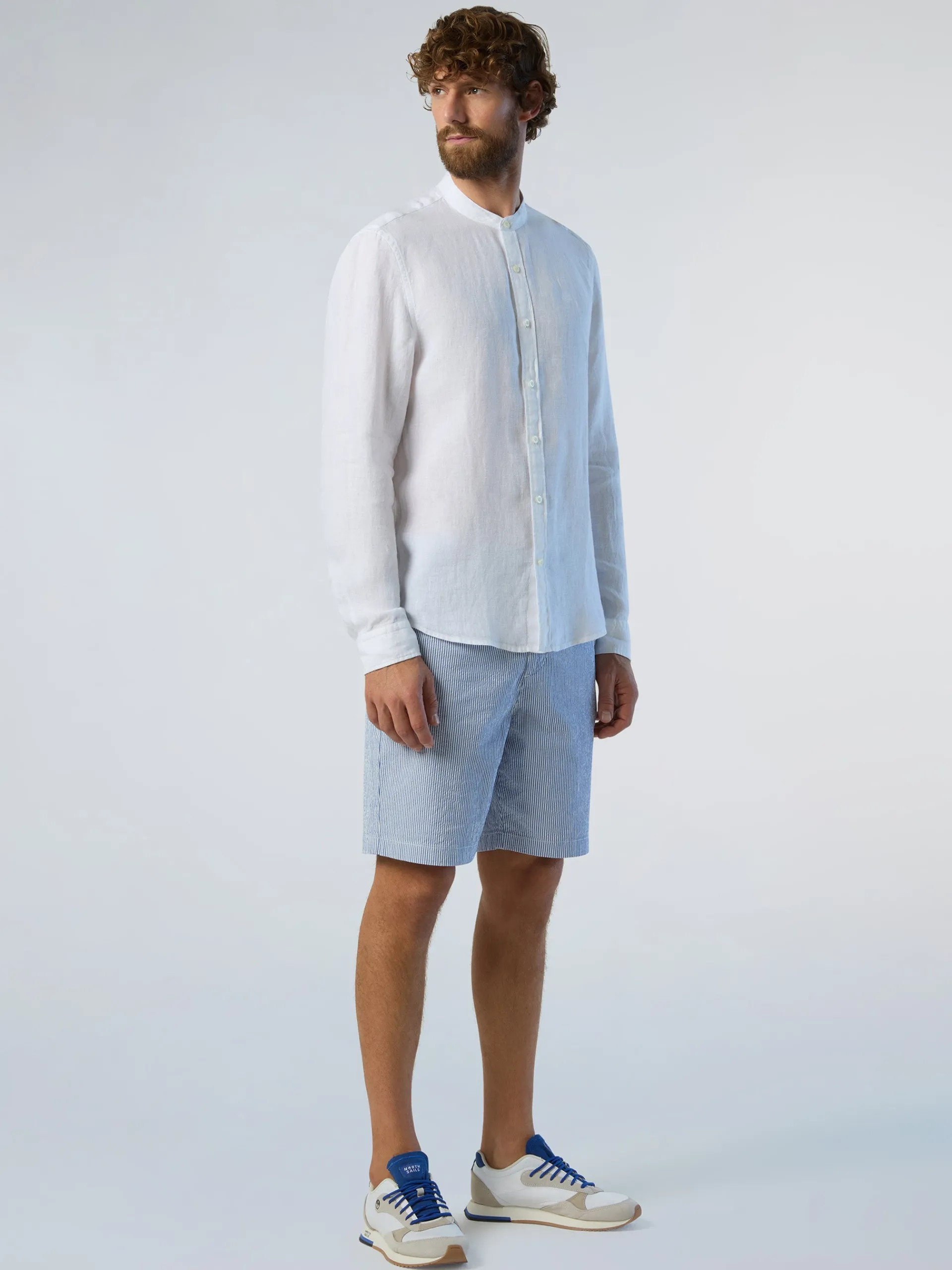 La camicia con collo alla coreana da indossare con il chino in città e fresca in spiaggia sopra il costume da bagno. Il modello è realizzato in lino traspirante e completamente biodegradabile, in linea con il nostro impegno per la protezione del pianeta. Impreziosita con il ricamo del logo in un elegante tono su tono.