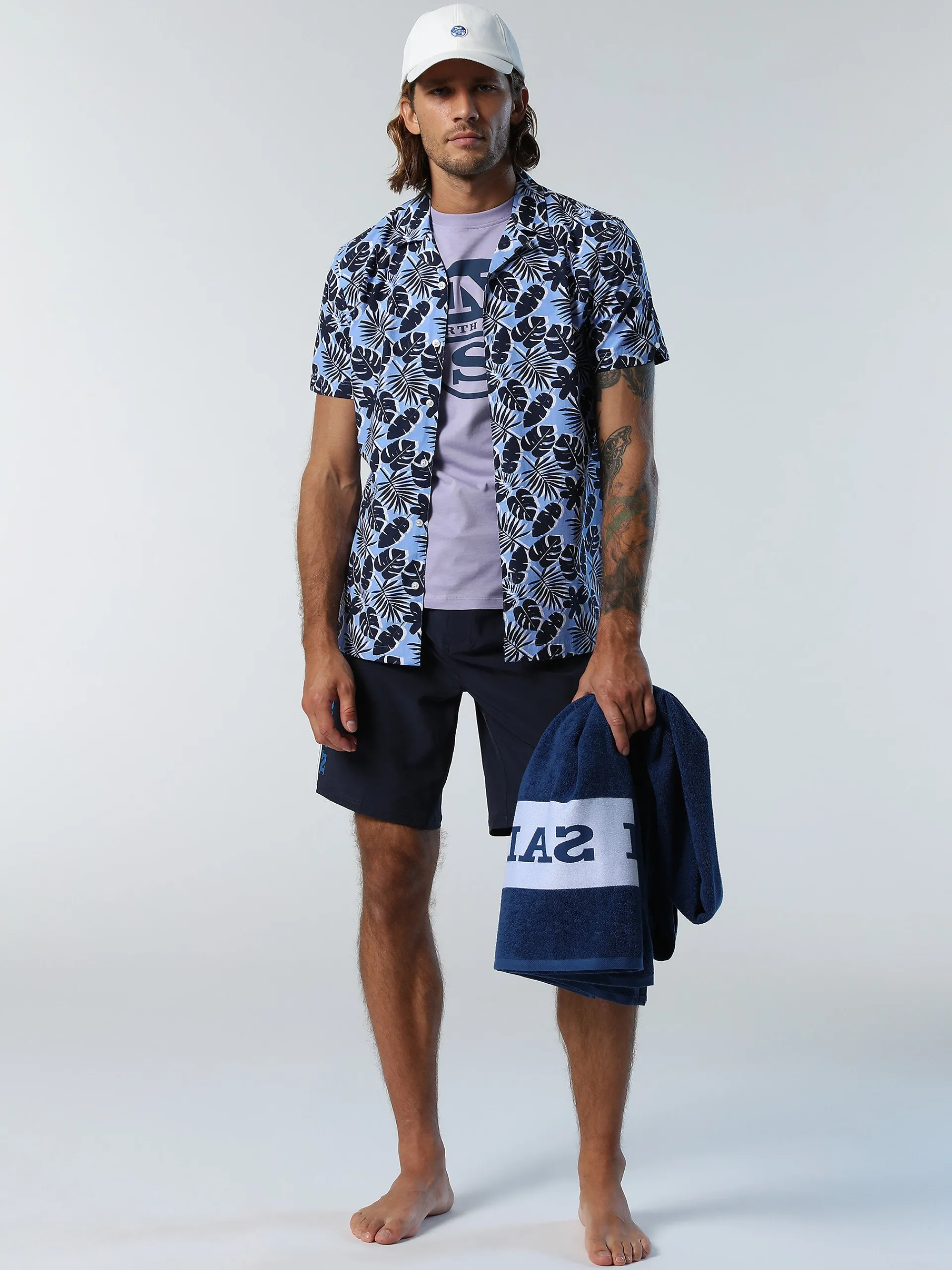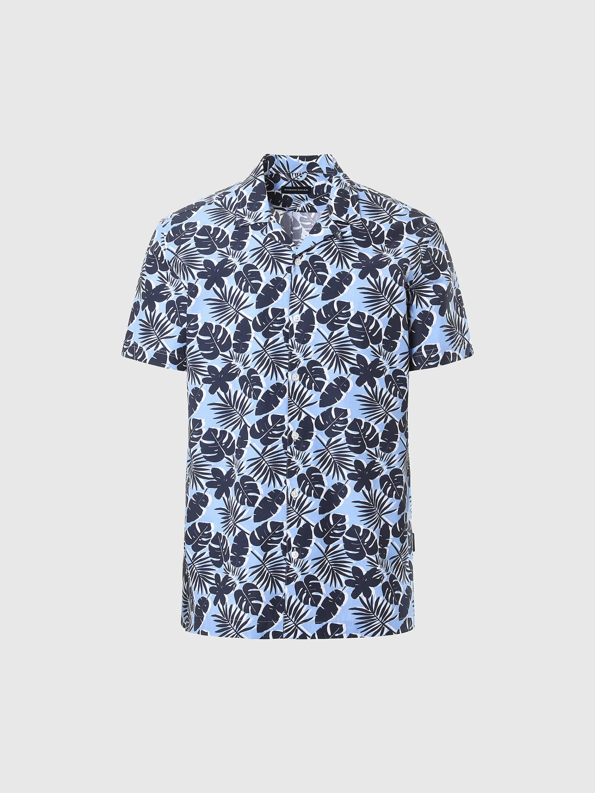 La camicia da uomo a maniche corte che aggiunge un twist ironico e vacanziero al guardaroba dell'estate. Il modello è realizzato in morbido popeline di cotone con stampa tropicale all over. Si caratterizza per il classico colletto bowling dal mood rilassato, la chiusura con bottoni e il carré sul retro.