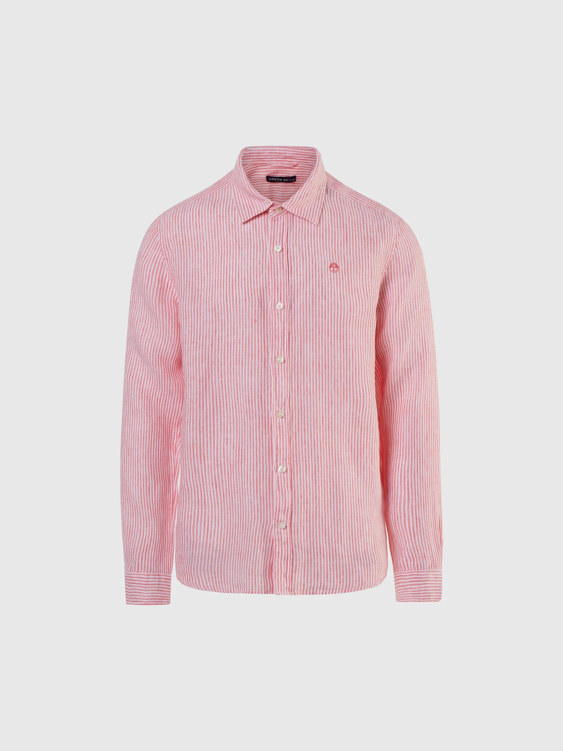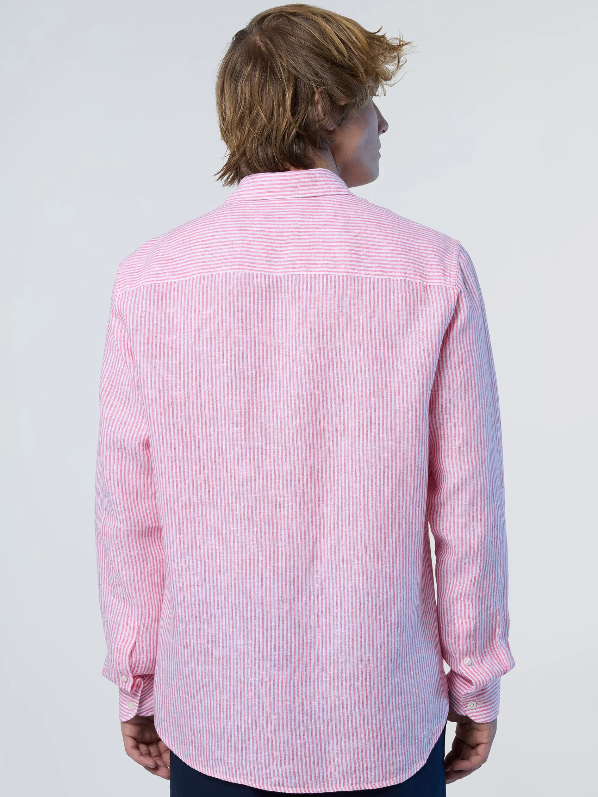 Facile da indossare, leggera e rispettosa del pianeta. Questa camicia a maniche lunghe è realizzata in puro lino: una fibra naturale fresca, traspirante e completamente biodegradabile, perfetta per i mesi estivi. Con il suo caratteristico motivo a righe, il modello da uomo presenta una vestibilità regolare con colletto alla francese, orlo arrotondato e logo sul petto per un tocco distintivo e discreto.