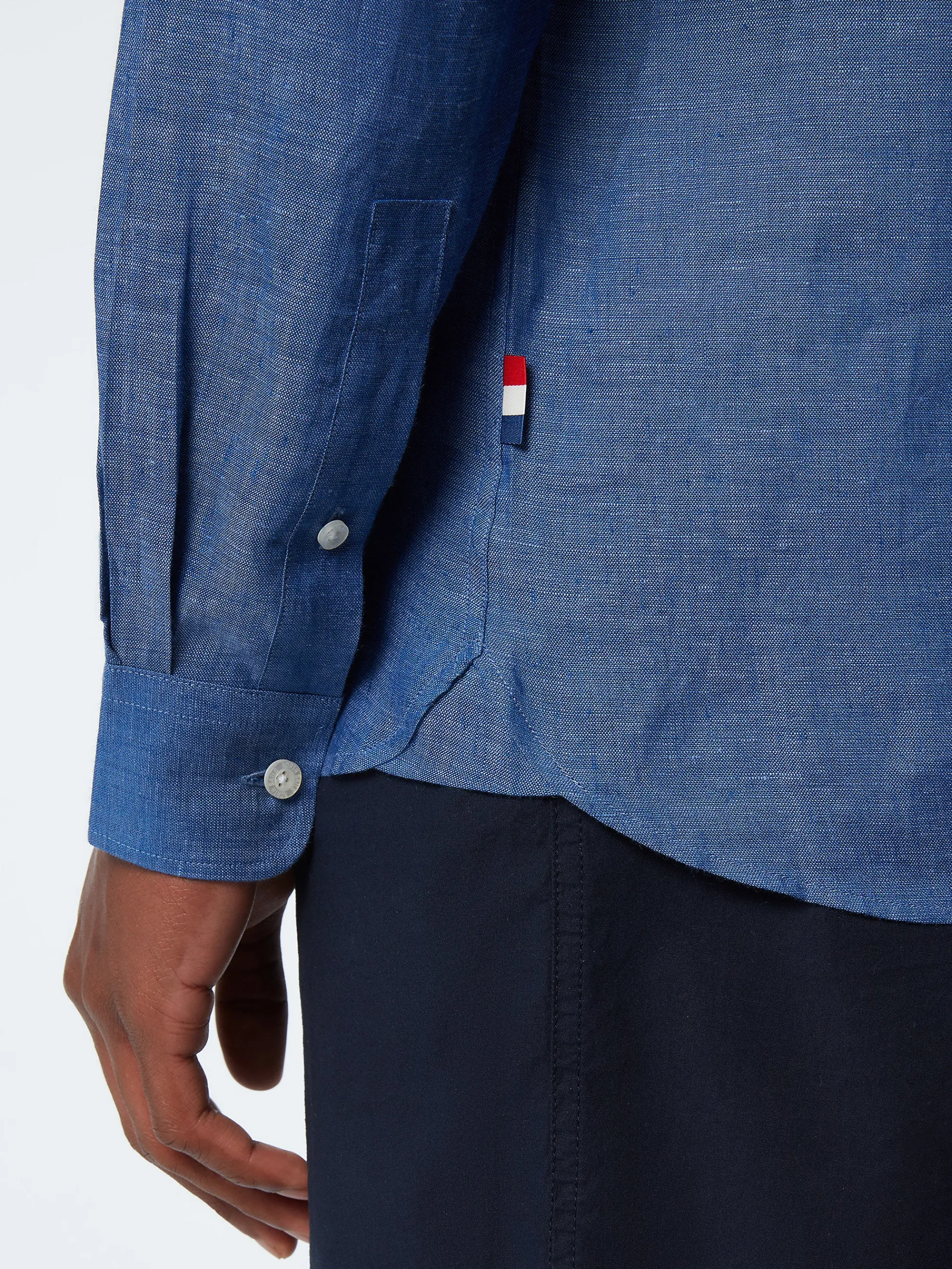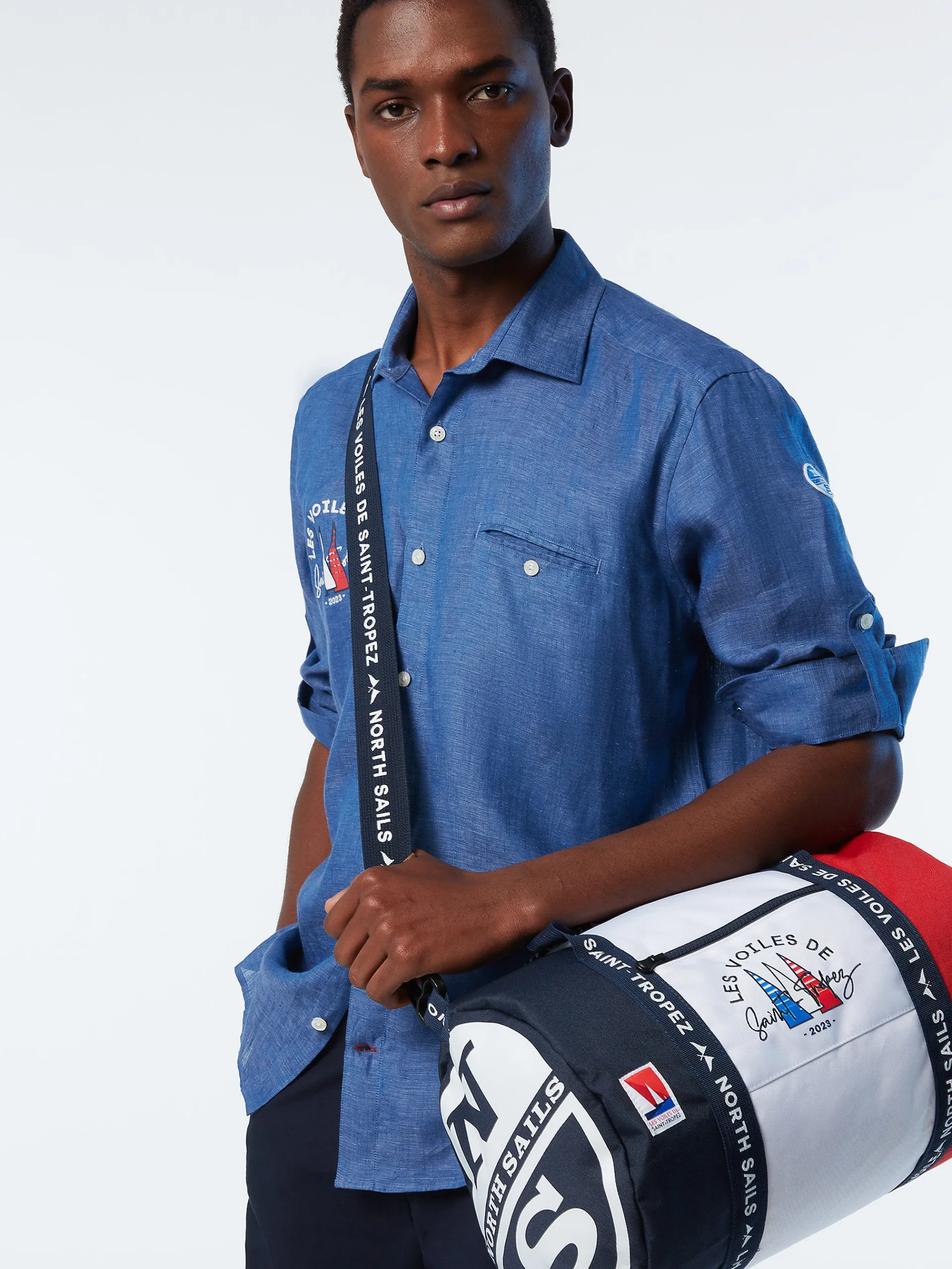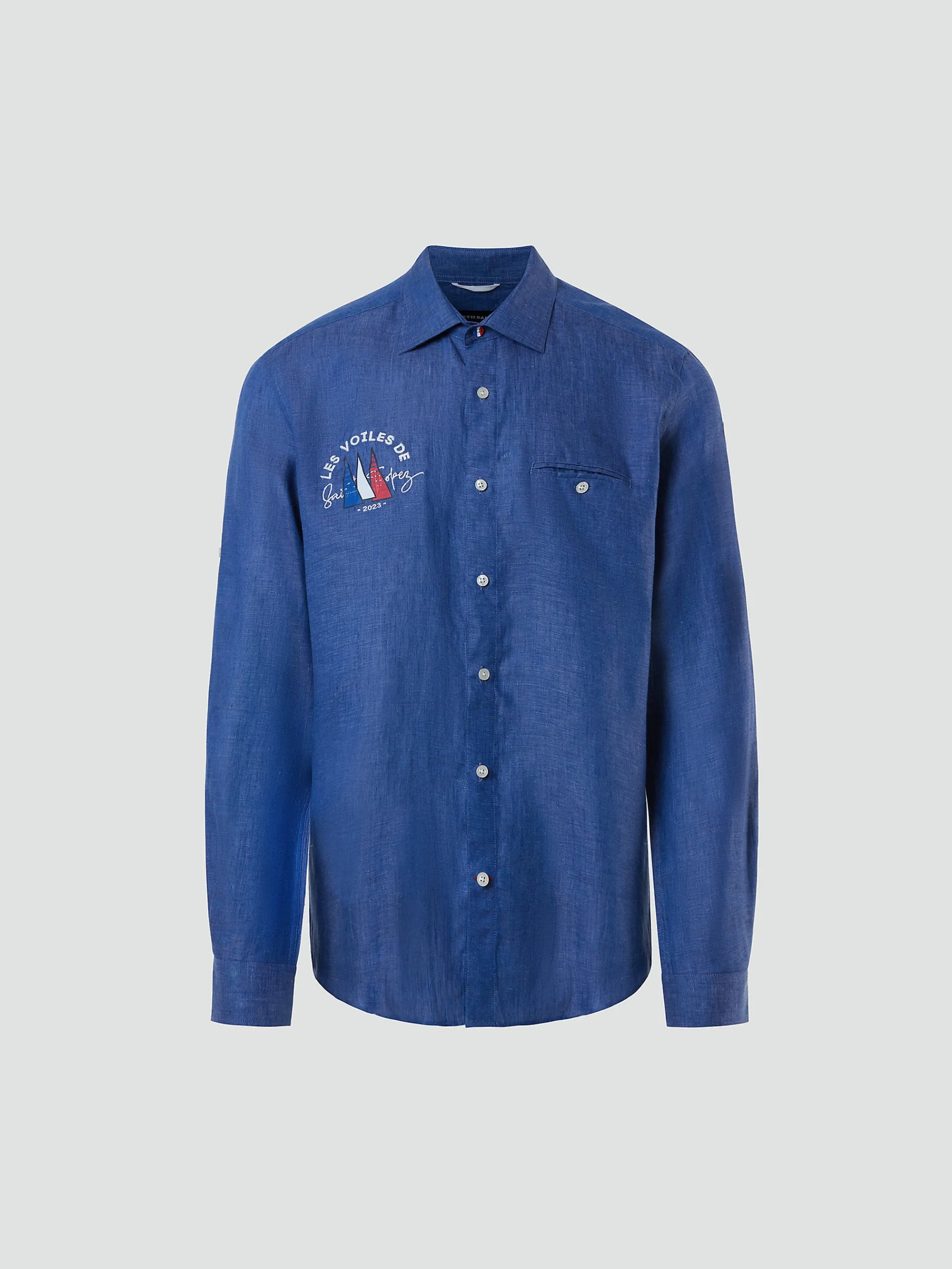 La camicia da uomo dal look senza tempo è enfatizzata dall'attitudine esclusiva della capsule collection Les Voiles de Saint-Tropez. Il modello è realizzato in lino ultra traspirante e completamente biodegradabile per un design ricercato, confortevole e attento al Pianeta. Si caratterizza per le maniche da risvoltare e i dettagli grafici LVDST sul petto.