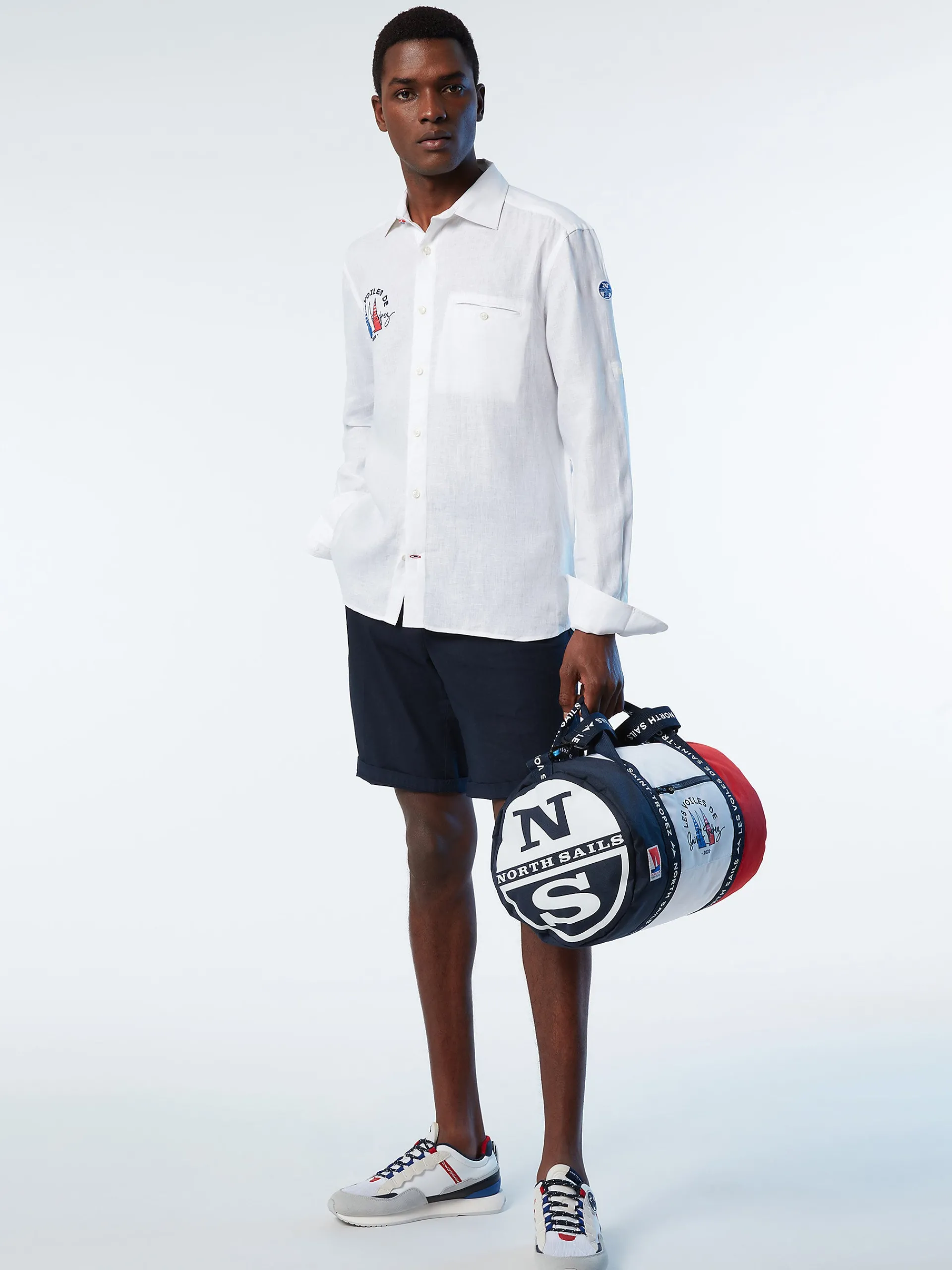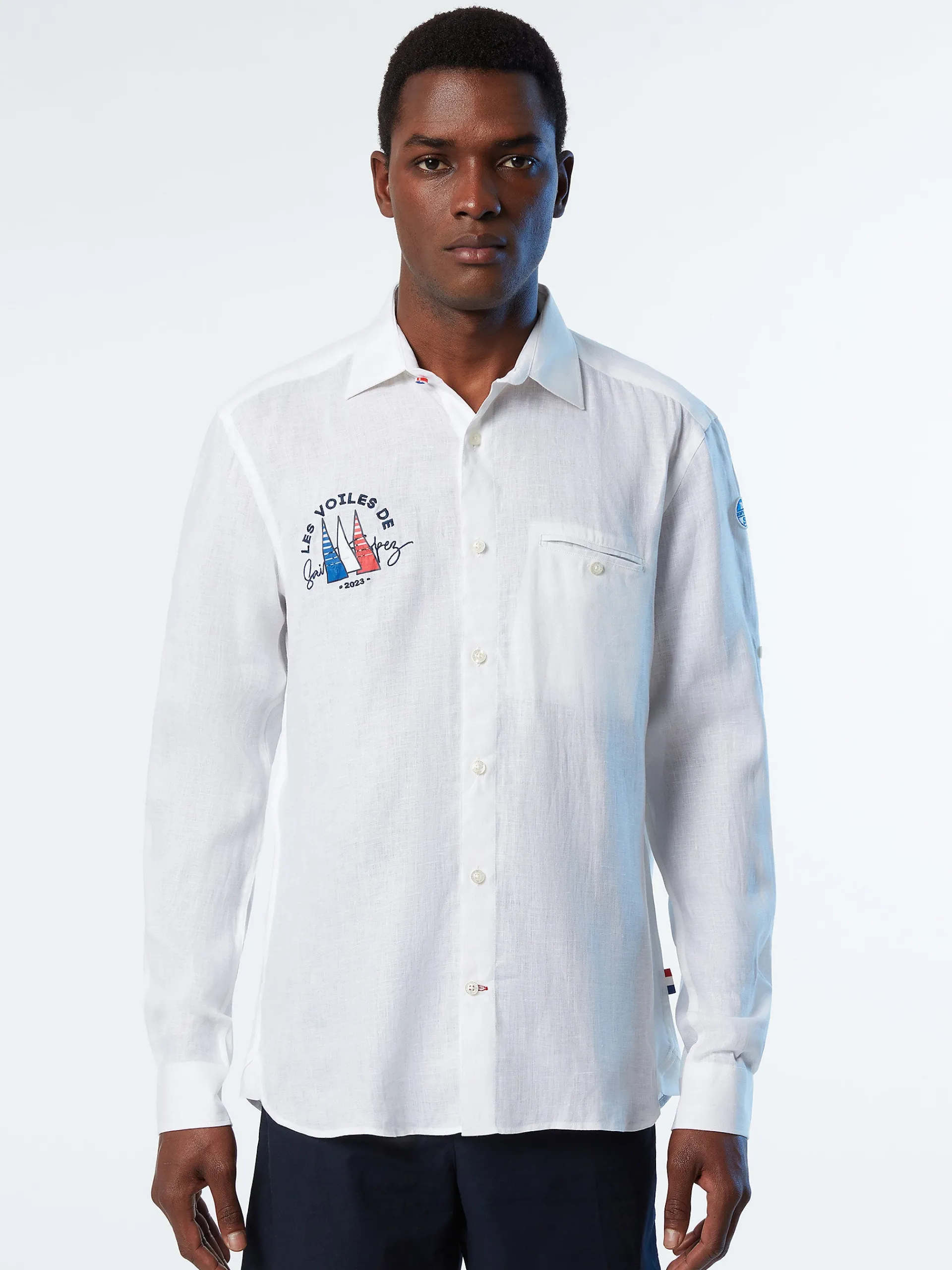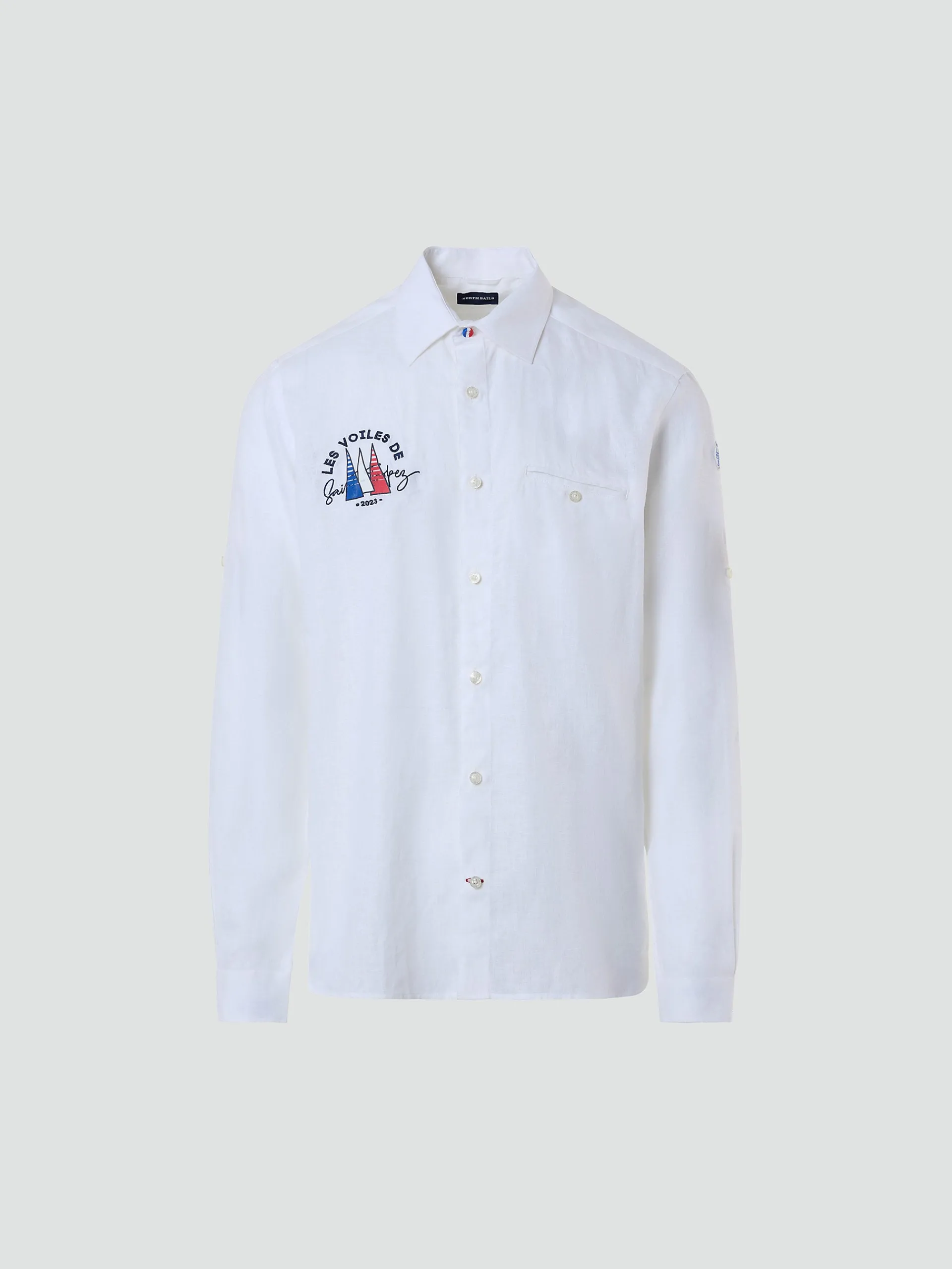 La camicia da uomo dal look senza tempo è enfatizzata dall'attitudine esclusiva della capsule collection Les Voiles de Saint-Tropez. Il modello è realizzato in lino ultra traspirante e completamente biodegradabile per un design ricercato, confortevole e attento al Pianeta. Si caratterizza per le maniche da risvoltare e i dettagli grafici LVDST sul petto.