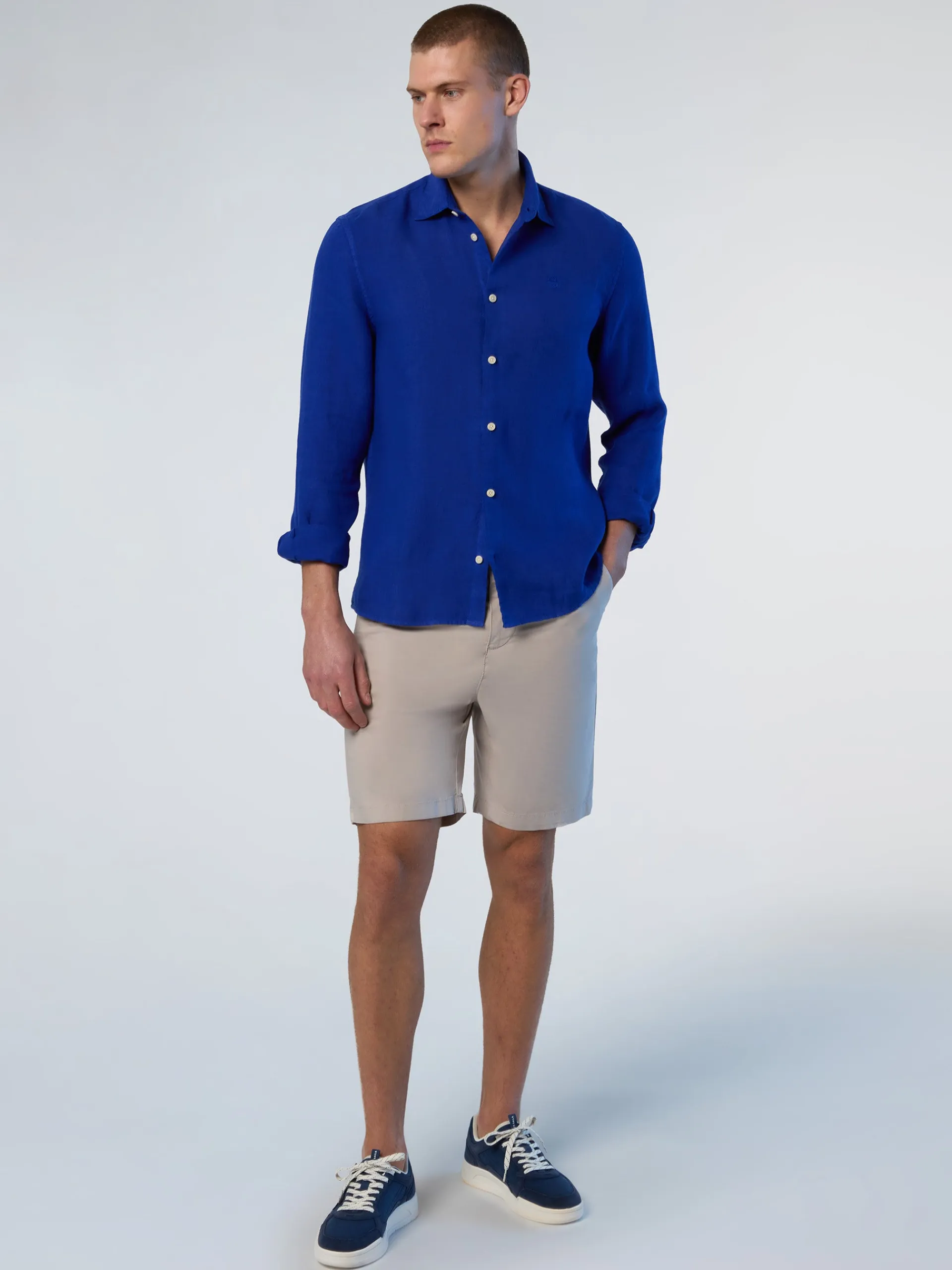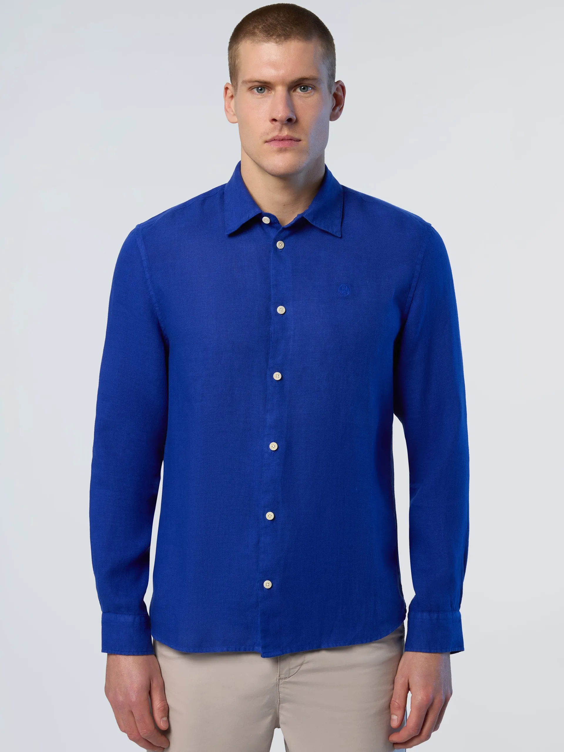 Questa camicia da uomo è un must have del guardaroba estivo perchè è contemporanea e attenta al pianeta. Il modello è realizzato in puro lino, una fibra fresca, traspirante, completamente naturale e biodegradabile. Un design senza tempo con vestibilità regolare, colletto alla francese e orlo arrotondato. Il logo ricamato sul petto aggiunge un tocco distintivo.