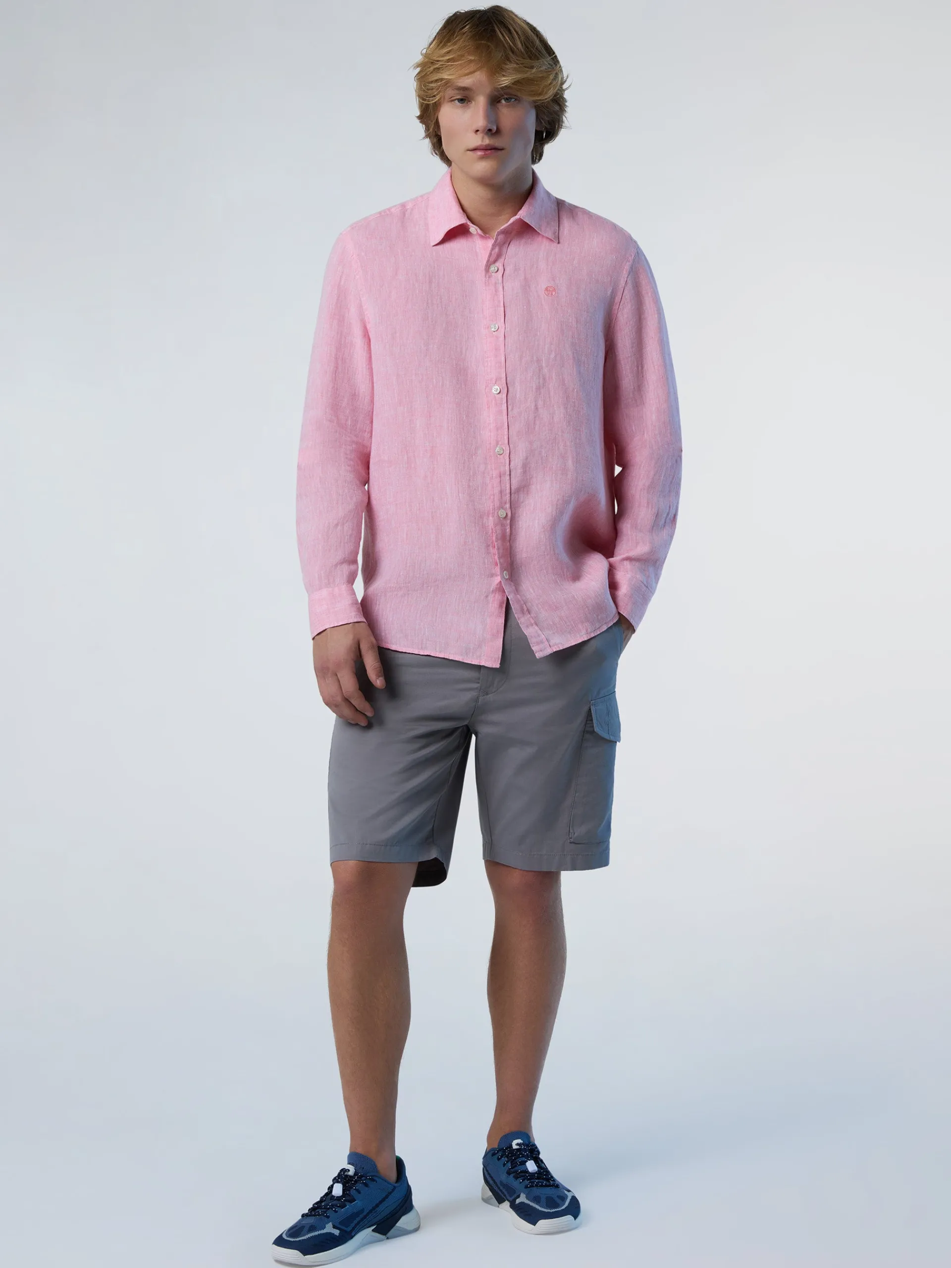 La camicia da uomo perfetta da indossare con il chino in città e fresca in spiaggia sopra il costume da bagno. Il modello ha un design senza tempo con collo alla francese ed è realizzato in lino traspirante e completamente biodegradabile, in linea con il nostro impegno per la protezione del pianeta. Impreziosita con il ricamo del logo in un elegante tono su tono.