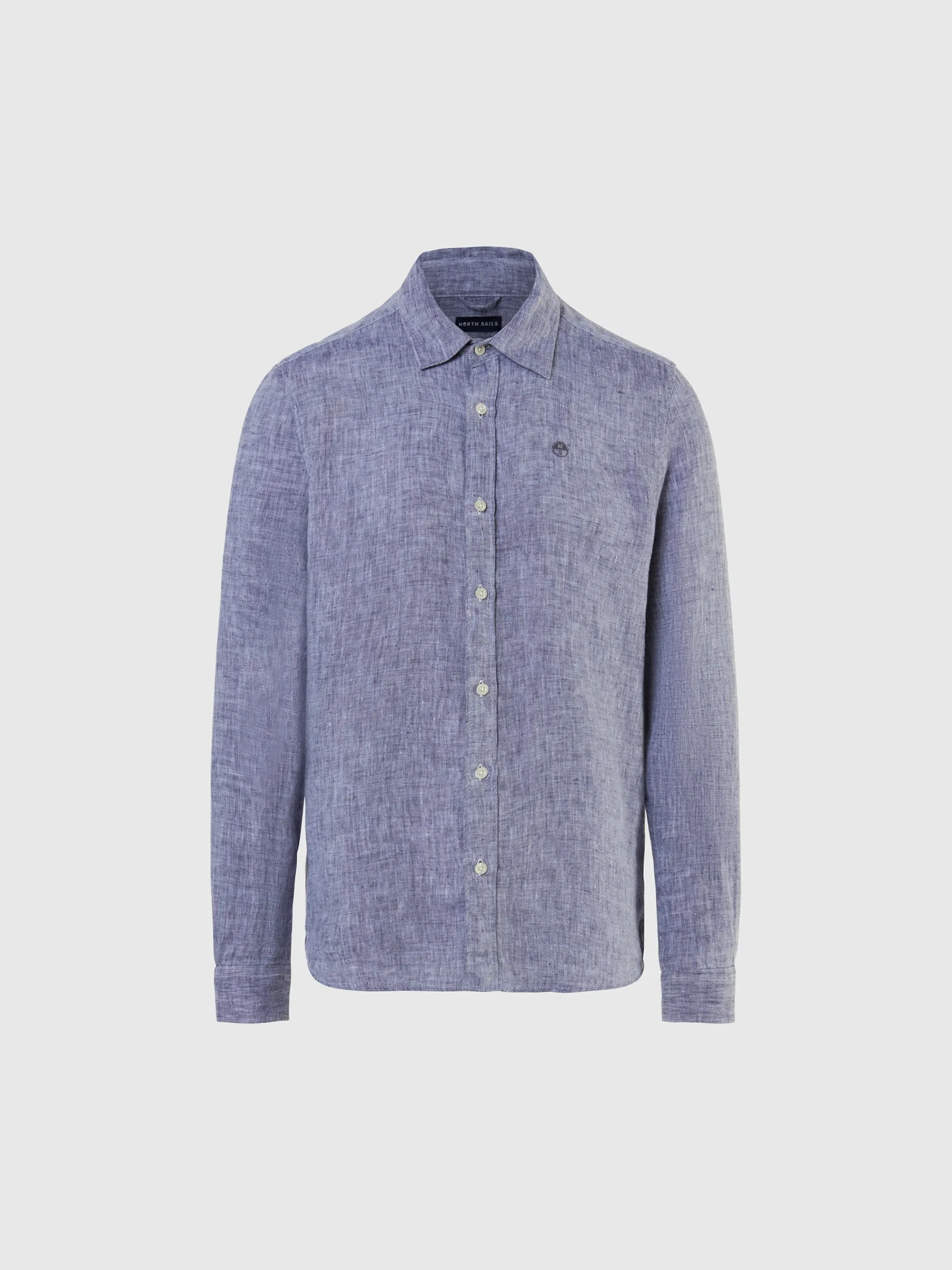 La camicia da uomo perfetta da indossare con il chino in città e fresca in spiaggia sopra il costume da bagno. Il modello ha un design senza tempo con collo alla francese ed è realizzato in lino traspirante e completamente biodegradabile, in linea con il nostro impegno per la protezione del pianeta. Impreziosita con il ricamo del logo in un elegante tono su tono.