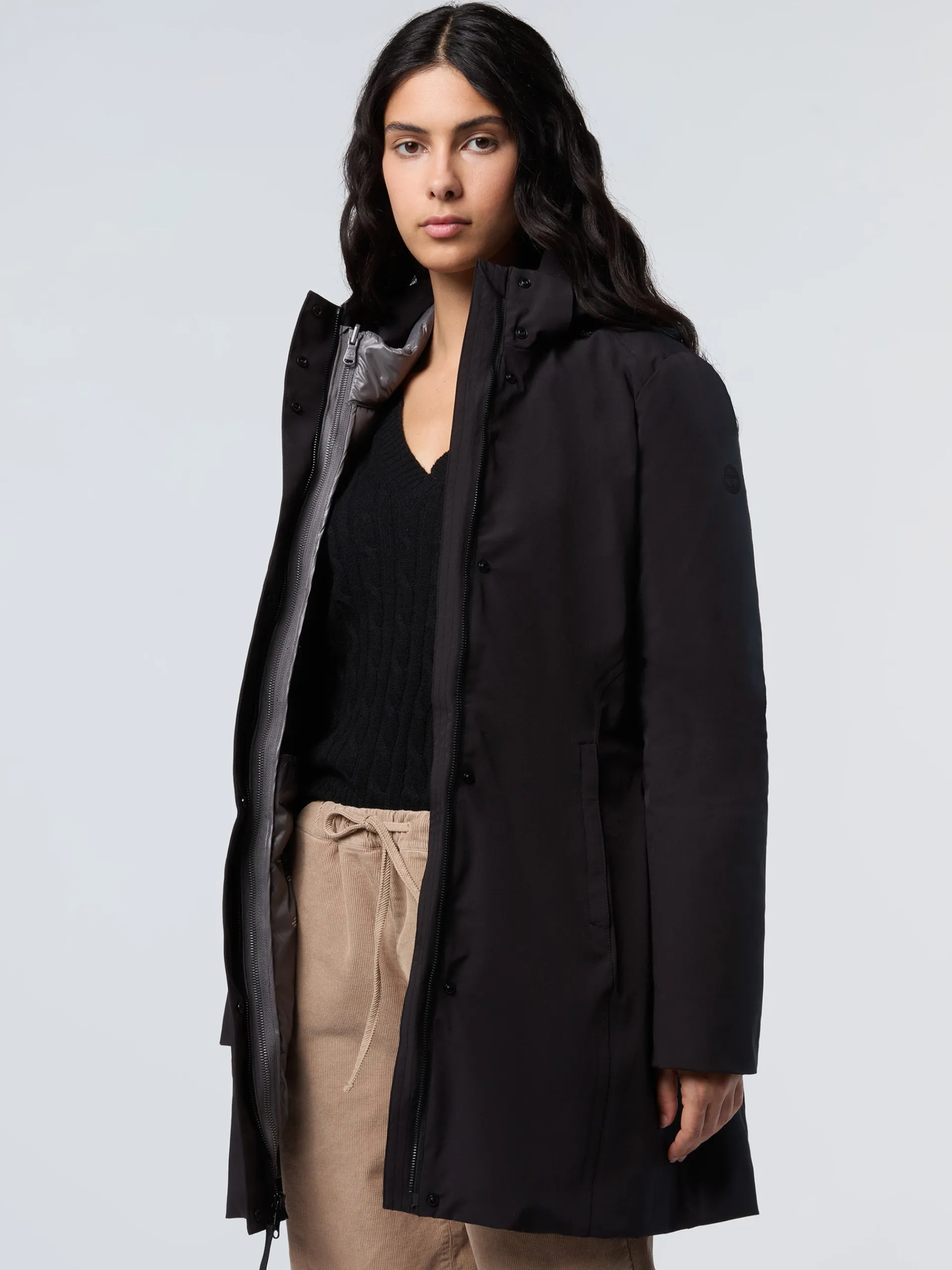 Dartmouth è il cappotto da donna multifunzionale, elegante e accogliente. Il modello si caratterizza per il design 3 in 1 con guscio esterno in nylon riciclato 2 layer impermeabile, antivento e ultra traspirante che protegge dalle intemperie ed è gentile con il pianeta. Si caratterizza per il cappuccio rimovibile e l'imbottitura rimovibile, utilizzabile separatamente come piumino leggero. La sua silhouette femminile è rifinita dalle tasche con zip e dal logo North Sails sulla manica.