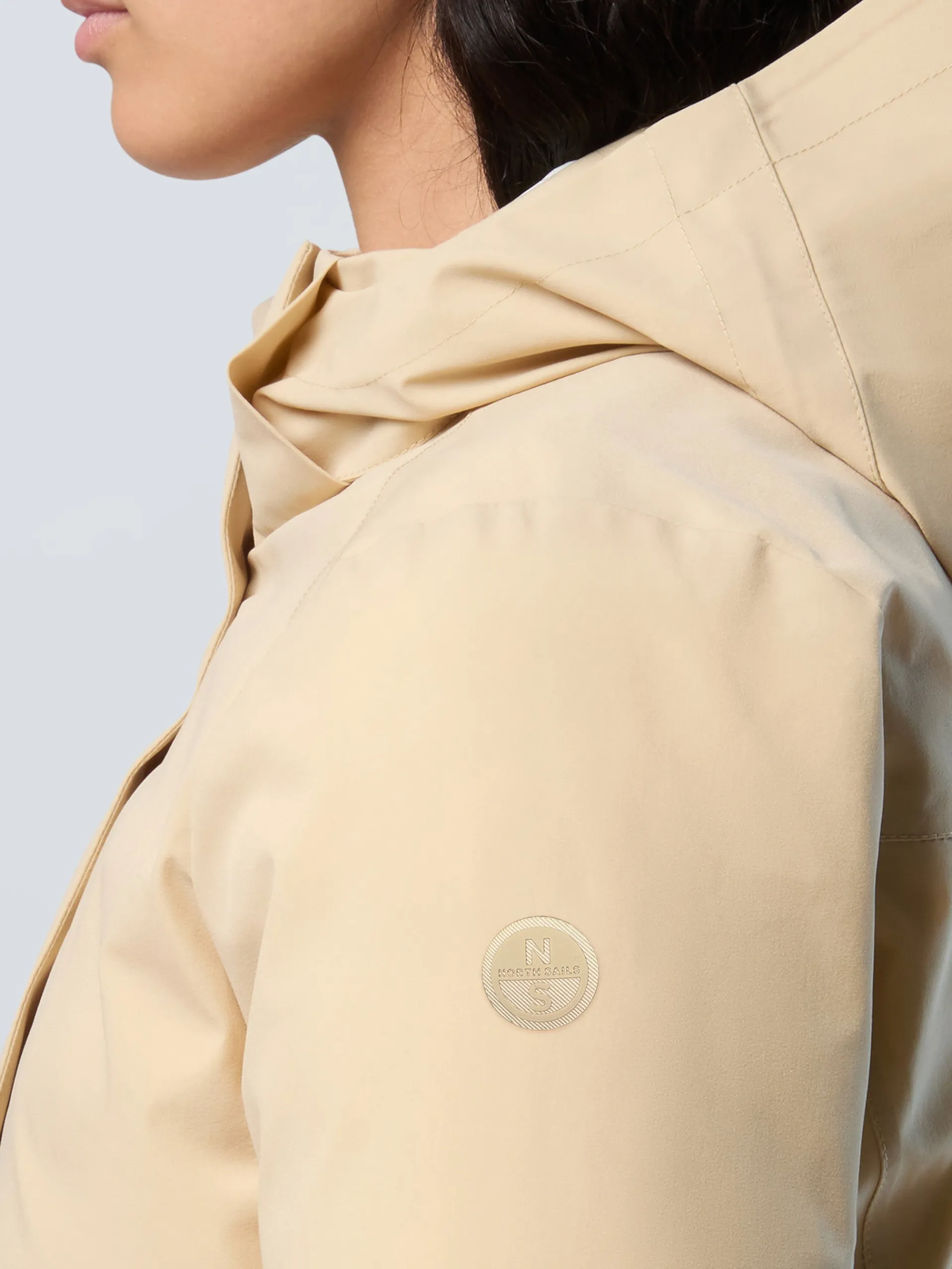 Dartmouth è il cappotto da donna multifunzionale, elegante e accogliente. Il modello si caratterizza per il design 3 in 1 con guscio esterno in nylon riciclato 2 layer impermeabile, antivento e ultra traspirante che protegge dalle intemperie ed è gentile con il pianeta. Si caratterizza per il cappuccio rimovibile e l'imbottitura rimovibile, utilizzabile separatamente come piumino leggero. La sua silhouette femminile è rifinita dalle tasche con zip e dal logo North Sails sulla manica.