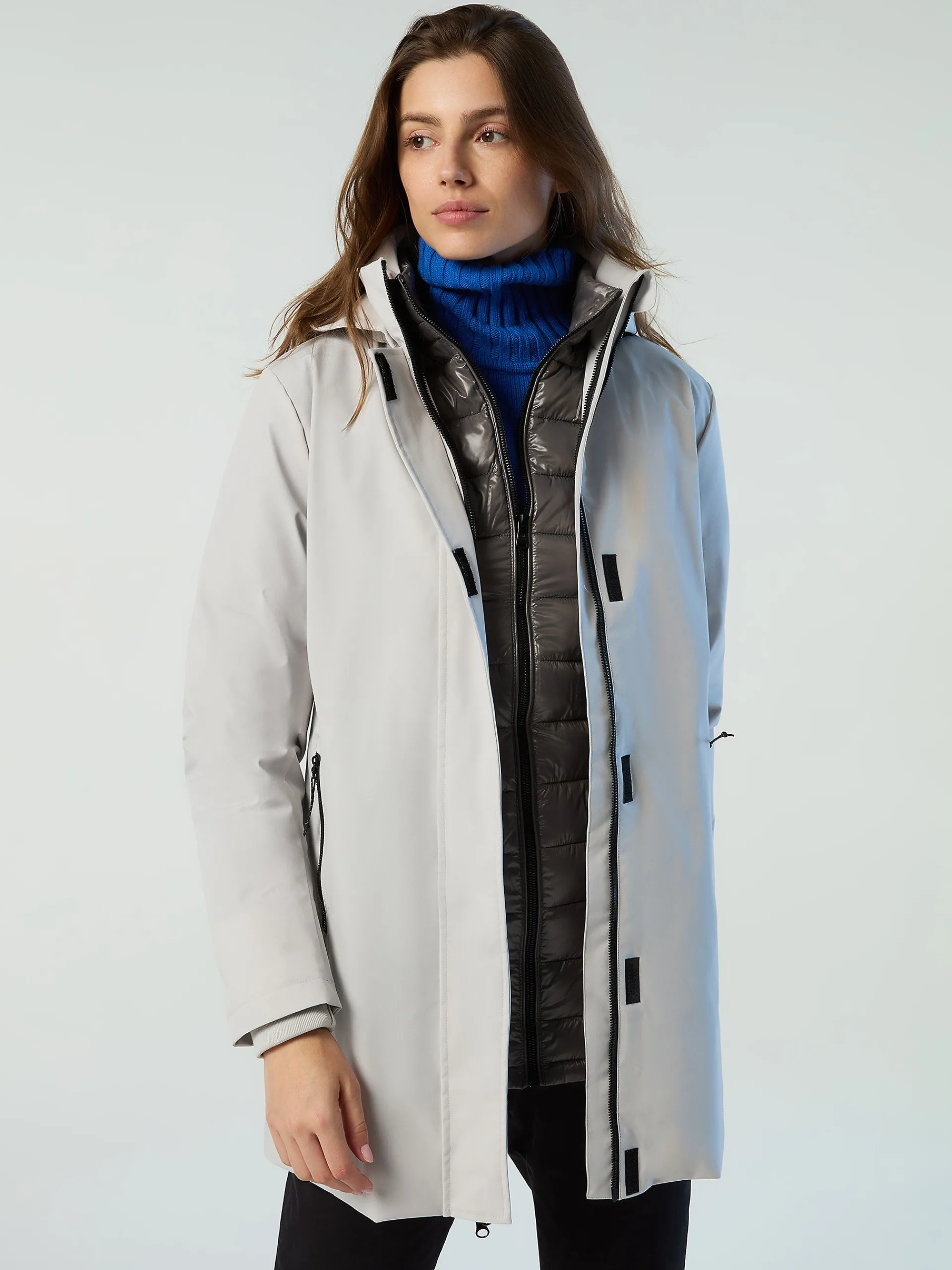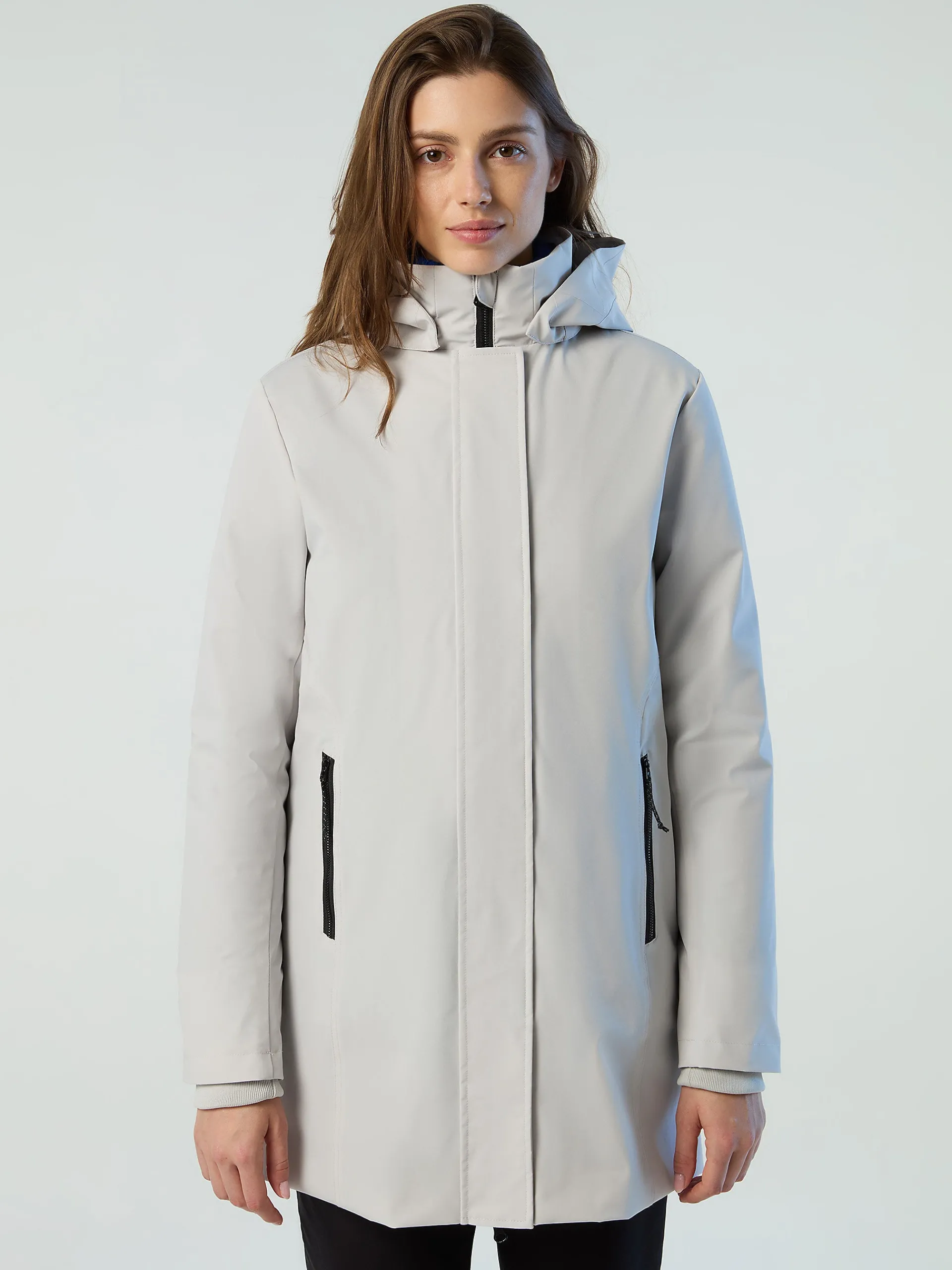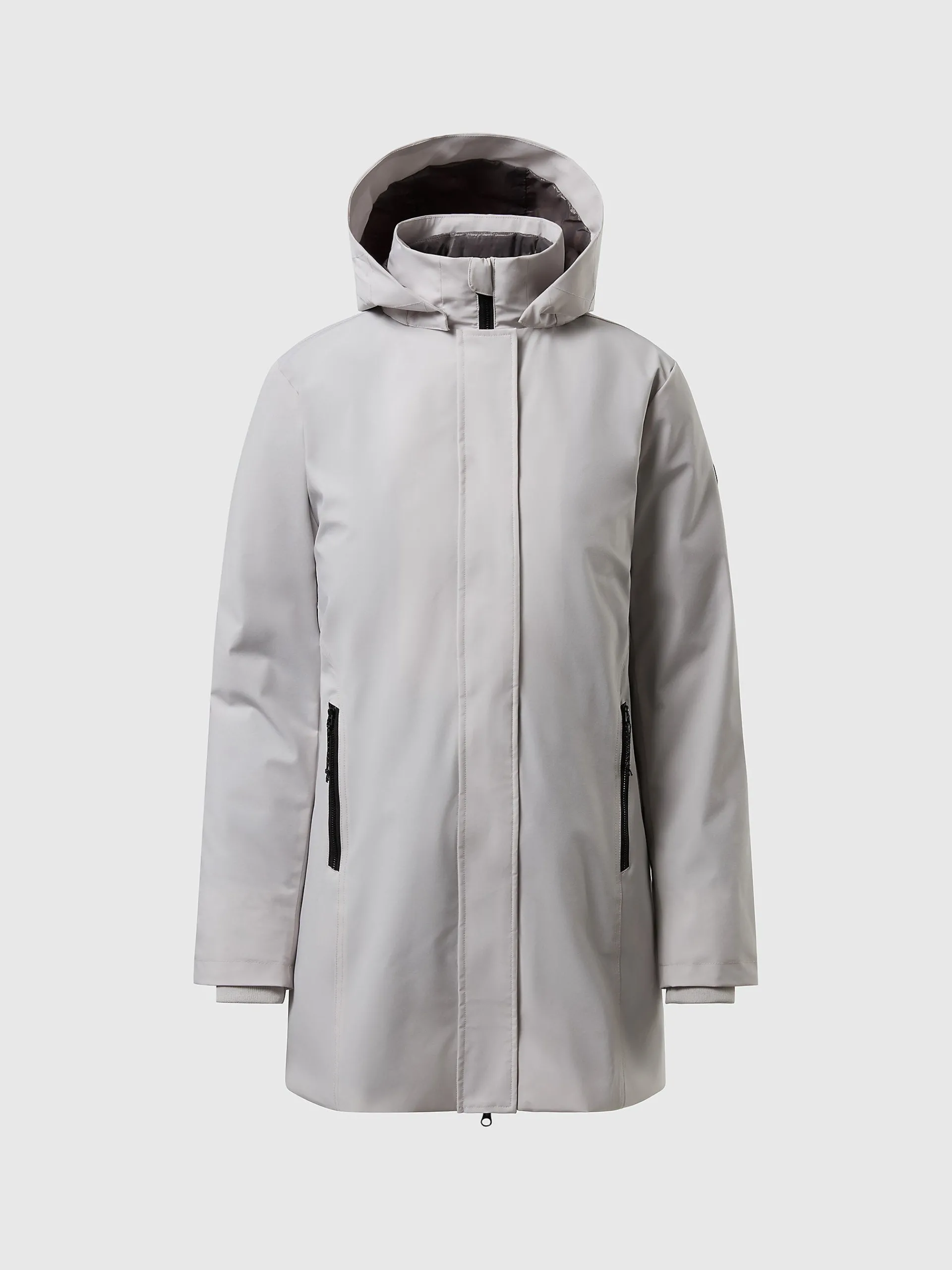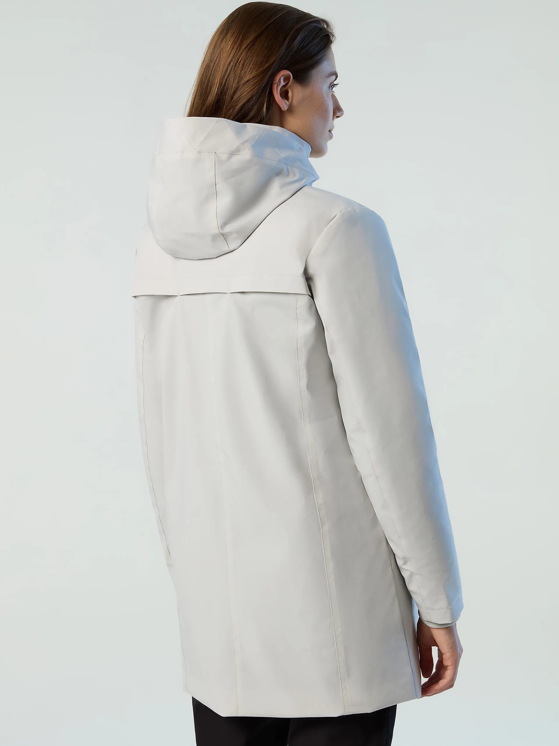 Dartmouth è il cappotto da donna multifunzionale, elegante e accogliente. Il modello si caratterizza per il design 3 in 1 con guscio esterno in nylon riciclato 2 layer impermeabile, antivento e ultra traspirante che protegge dalle intemperie ed è gentile con il pianeta. Si caratterizza per l'imbottitura interna rimovibile e il cappuccio staccabile. La sua silhouette femminile è rifinita dalle tasche con zip e dal logo North Tech sulla manica.