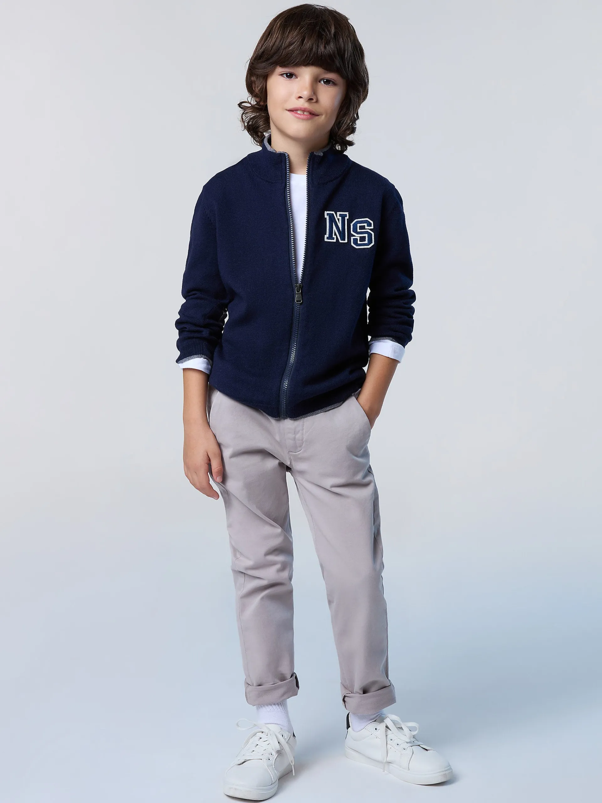 Comodo e versatile, questo cardigan full zip è un vero must have del guardaroba dei bambini. Il modello è realizzato in cotone organico e lana, si caratterizza per la linea accogliente e le toppe sui gomiti per una maggiore resistenza. Le patch NS in stile varsity sul petto danno un tocco sportivo al look.