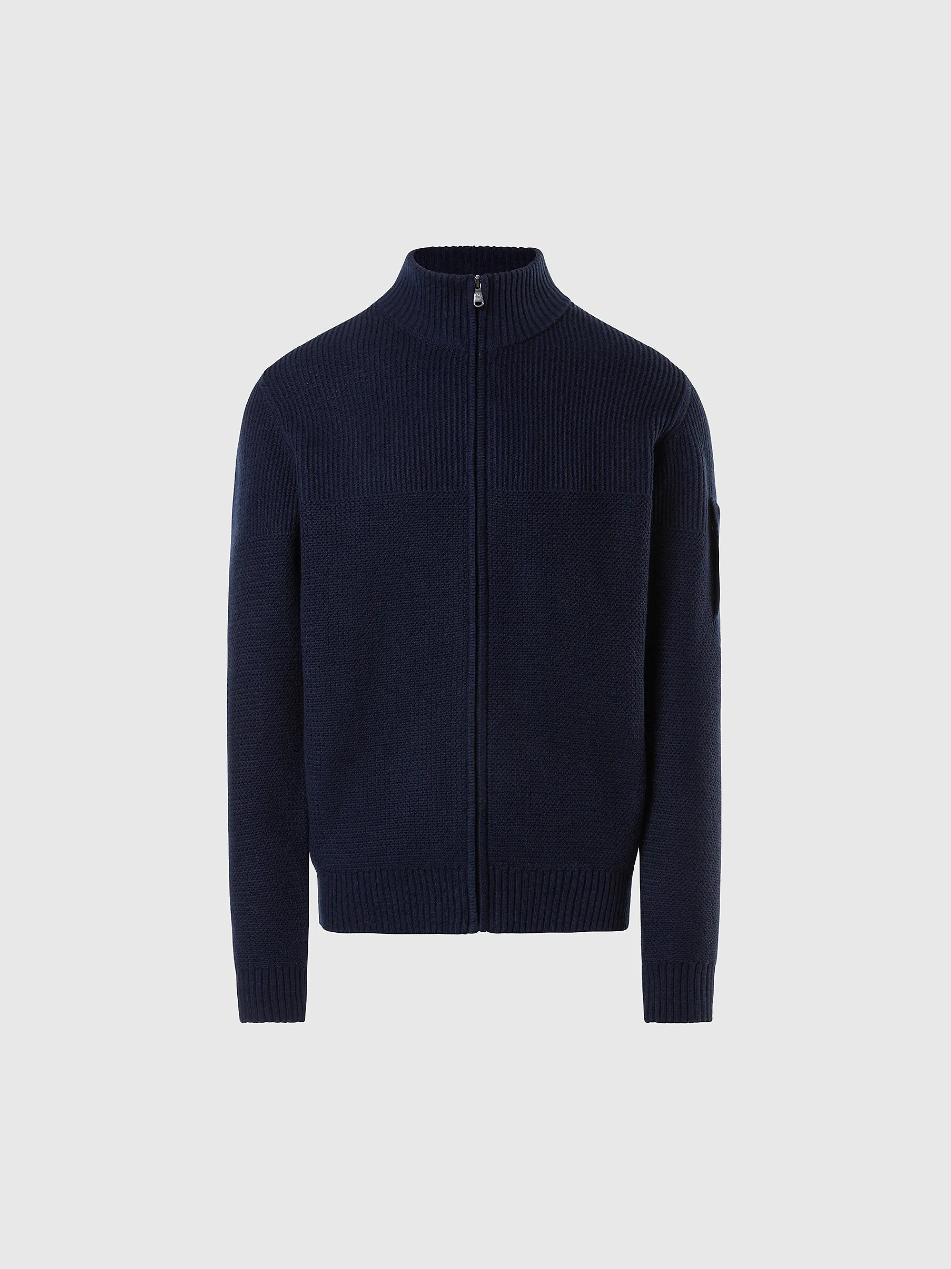 Il cardigan con zip e collo alto che completa il guardaroba outdoor dell'inverno. Realizzato in misto lana e cotone organico, si caratterizza per la lavorazione con coste orizzontali e verticali che danno un tocco grafico al look. La tasca sulla manica è pensata per custodire piccoli oggetti ed è personalizzata con l'esclusiva patch North Tech.