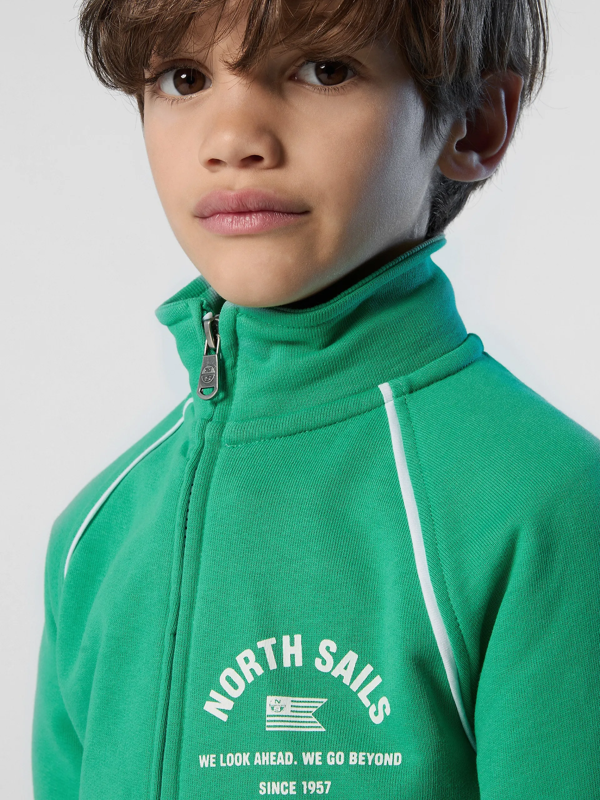 Versatile e facile da indossare, questa felpa è un essenziale del guardaroba casual dei bambini. Progettato pensando allo stile e al Pianeta, il modello con cappuccio e zip è realizzato in 100% cotone organico. Le maniche raglan con profilo a contrasto e il collo alto a costine danno un tocco sportivo, mentre la stampa sul petto celebra il nostro motto "Go Beyond".