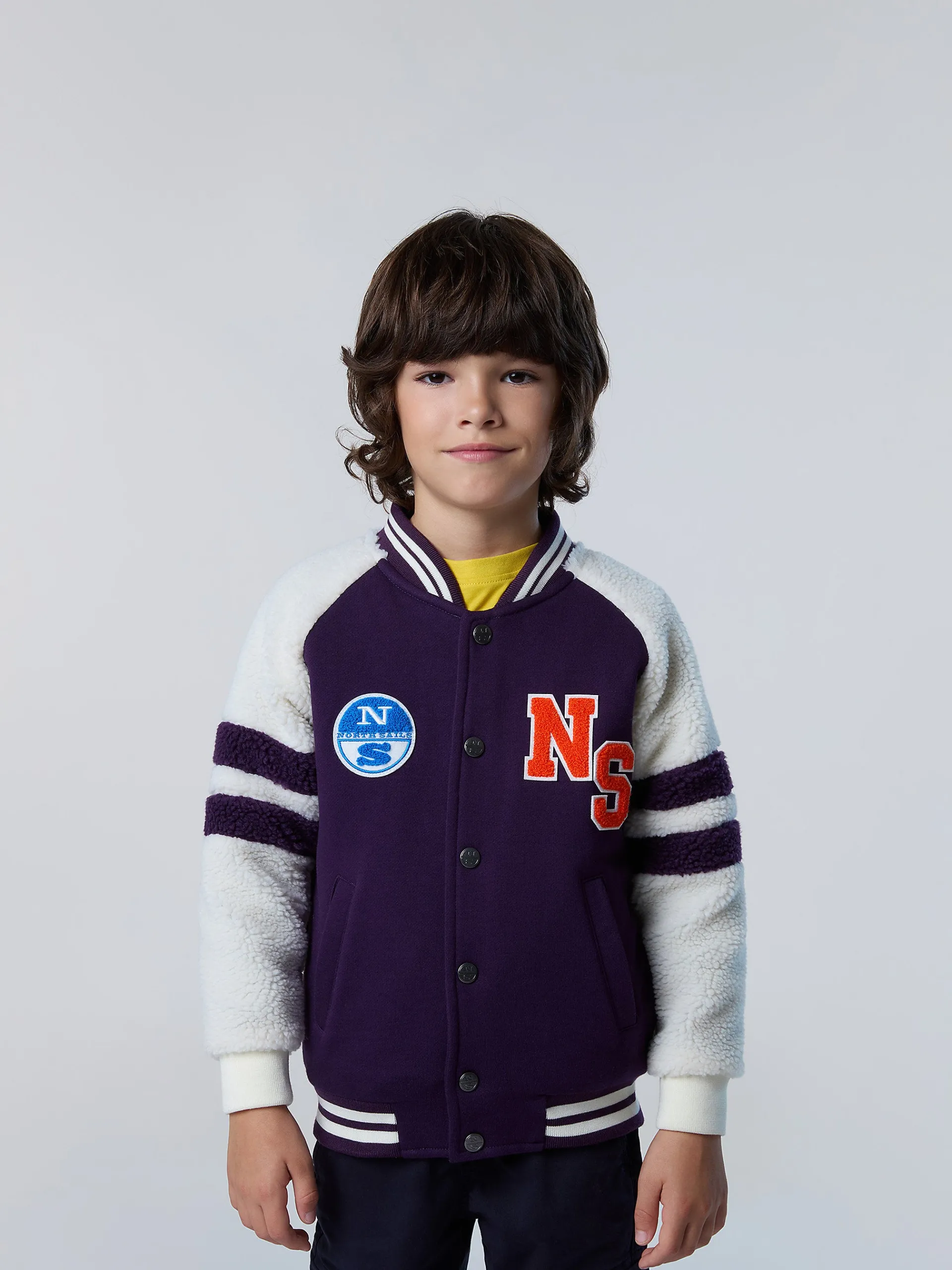 La felpa bomber in stile college che aggiorna il guardaroba dei bambini. Il modello è realizzato in felpa di cotone organico con maniche raglan in sherpa riciclato per un design all'avanguardia e gentile con il pianeta. Il logo e le iniziali NS in spugna enfatizzano l'ispirazione varsity del capo e danno un'impronta North Sails al look.