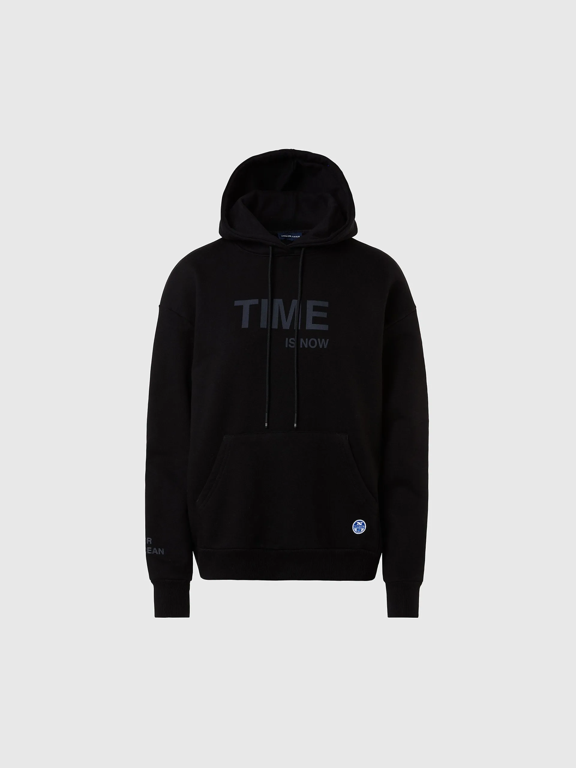 Il momento è adesso, unisci a noi nella difesa dell'oceano. Questa felpa hoodie con maxi stampa lettering esprime il nostro impegno per salvaguardare l'ecosistema marino ed è realizzata in cotone organico. Si caratterizza per la linea disinvolta con bordi a costine e comodo cappuccio con coulisse. Impreziosita con il logo North Sails sulla tasca.