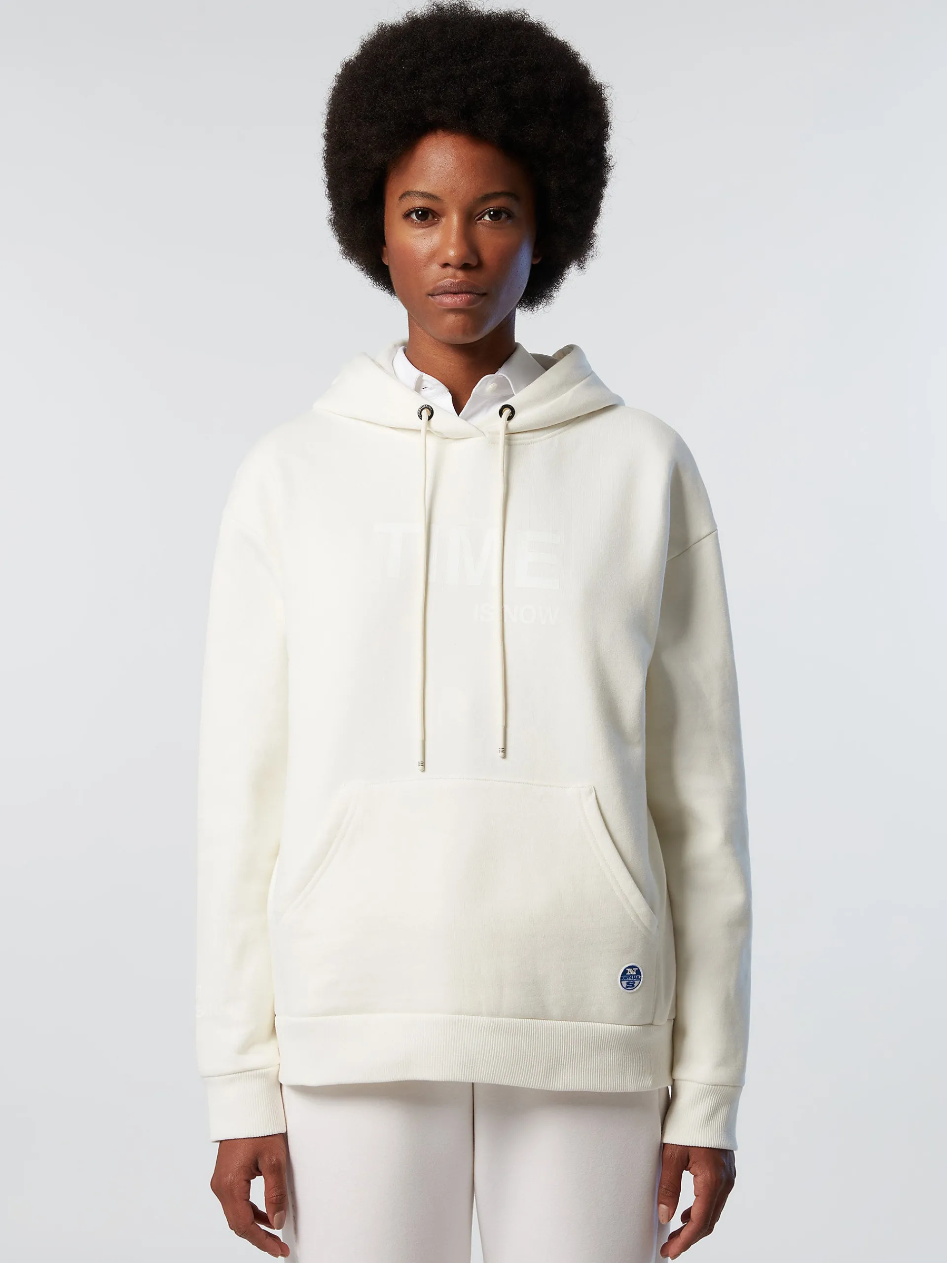 Il momento è adesso, unisci a noi nella difesa dell'oceano. Questa felpa hoodie con maxi stampa lettering esprime il nostro impegno per salvaguardare l'ecosistema marino ed è realizzata in cotone organico. Si caratterizza per la linea disinvolta con bordi a costine e comodo cappuccio con coulisse. Impreziosita con il logo North Sails sulla tasca.