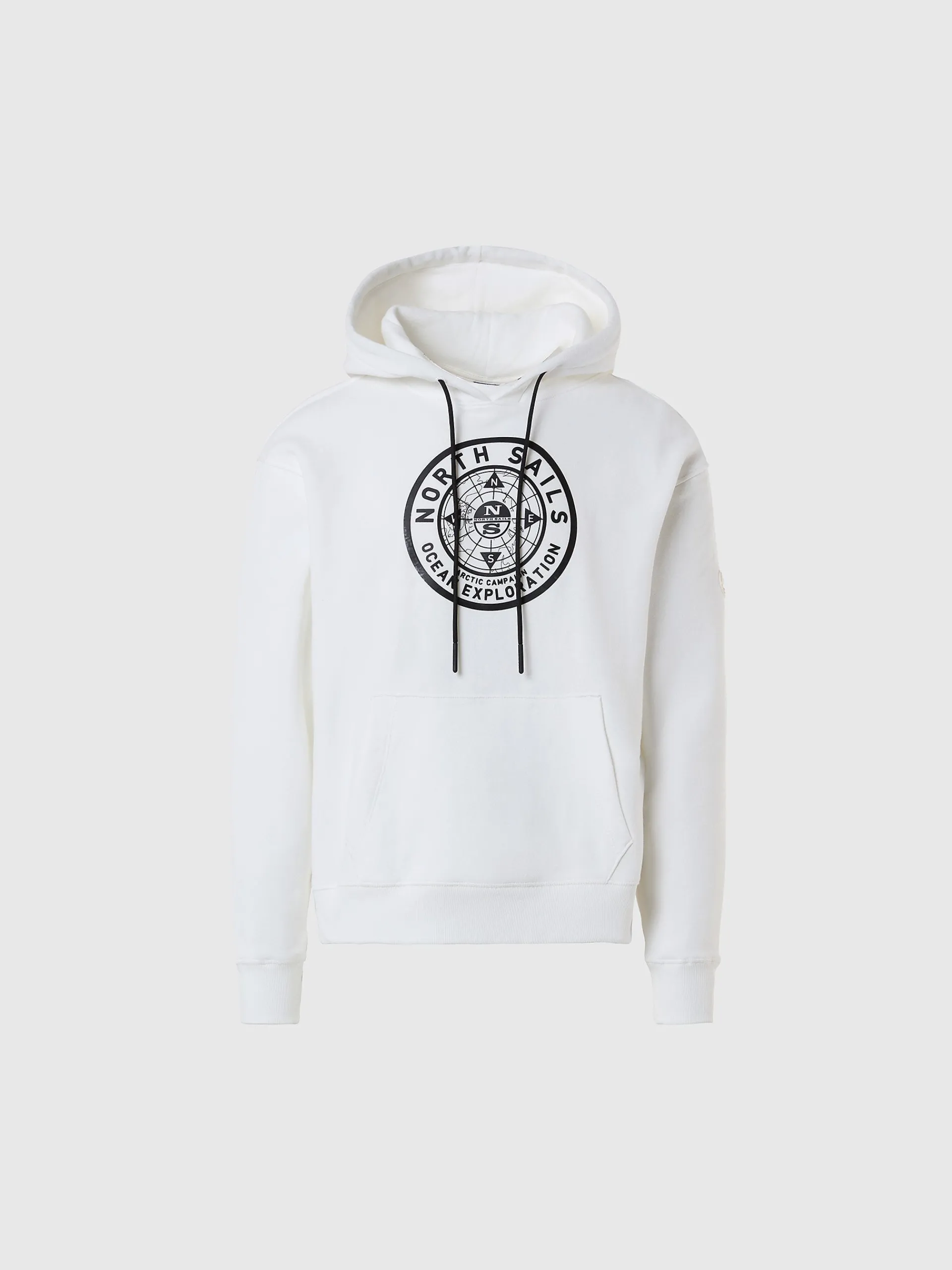 Mostra la tua passione per l'oceano mentre indossi un capo athleisure dalla linea rilassata. Questa felpa hoodie è realizzata in cotone organico mano pesca, super morbido sulla pelle e attento al pianeta perchè riduce le emissioni e il consumo d'acqua rispetto alle fibre tradizionali. La maxi stampa dà un imprinting deciso al look.