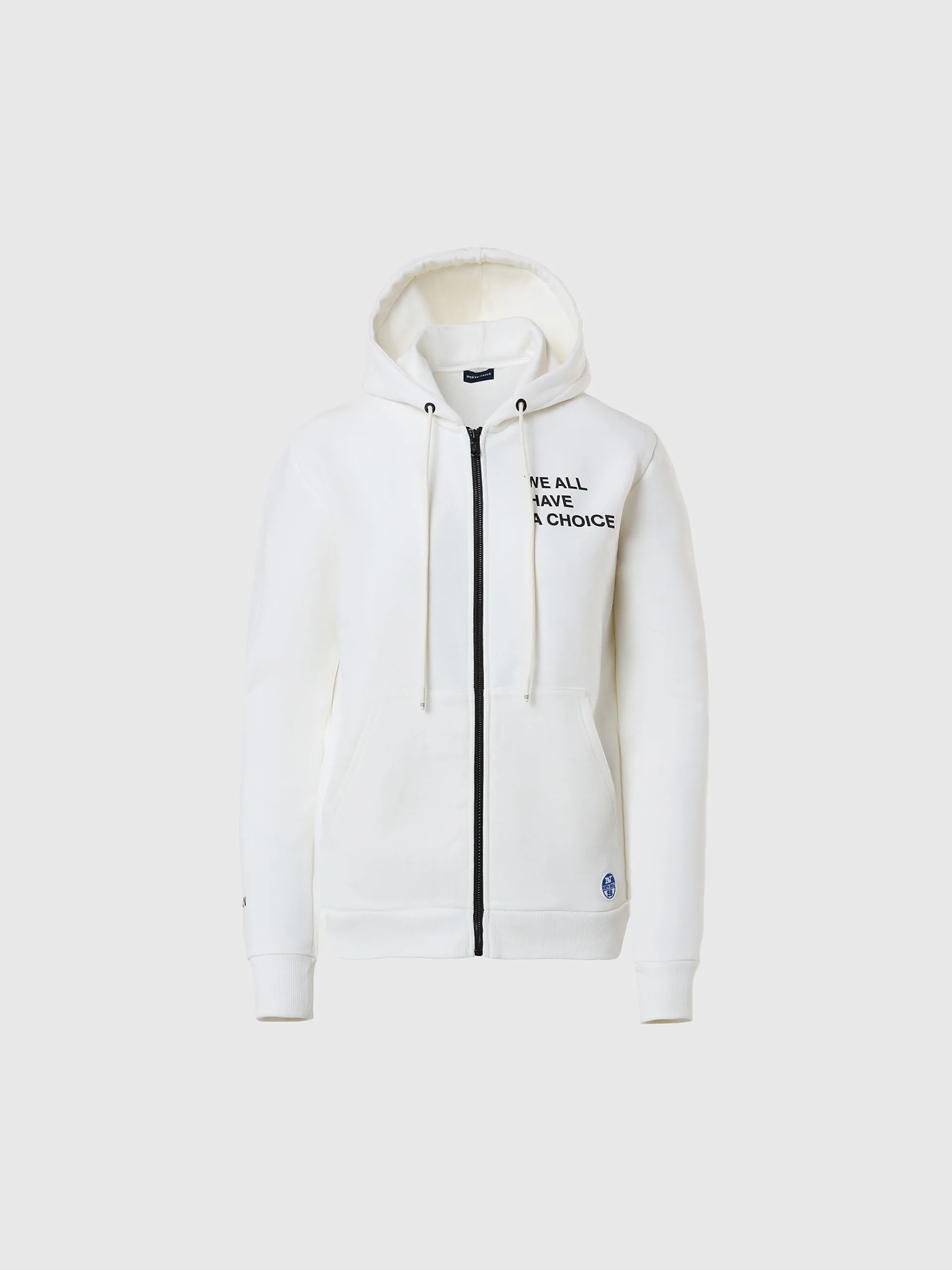 Questa felpa da donna con maxi stampa lettering esprime il tuo impegno per gli oceani. Il modello è realizzato in cotone organico che riduce le emissioni e lo spreco di acqua rispetto alle fibre tradizionali. Si caratterizza per la zip a doppio cursore comoda per i look a strati e il logo North Sails sulla tasca.