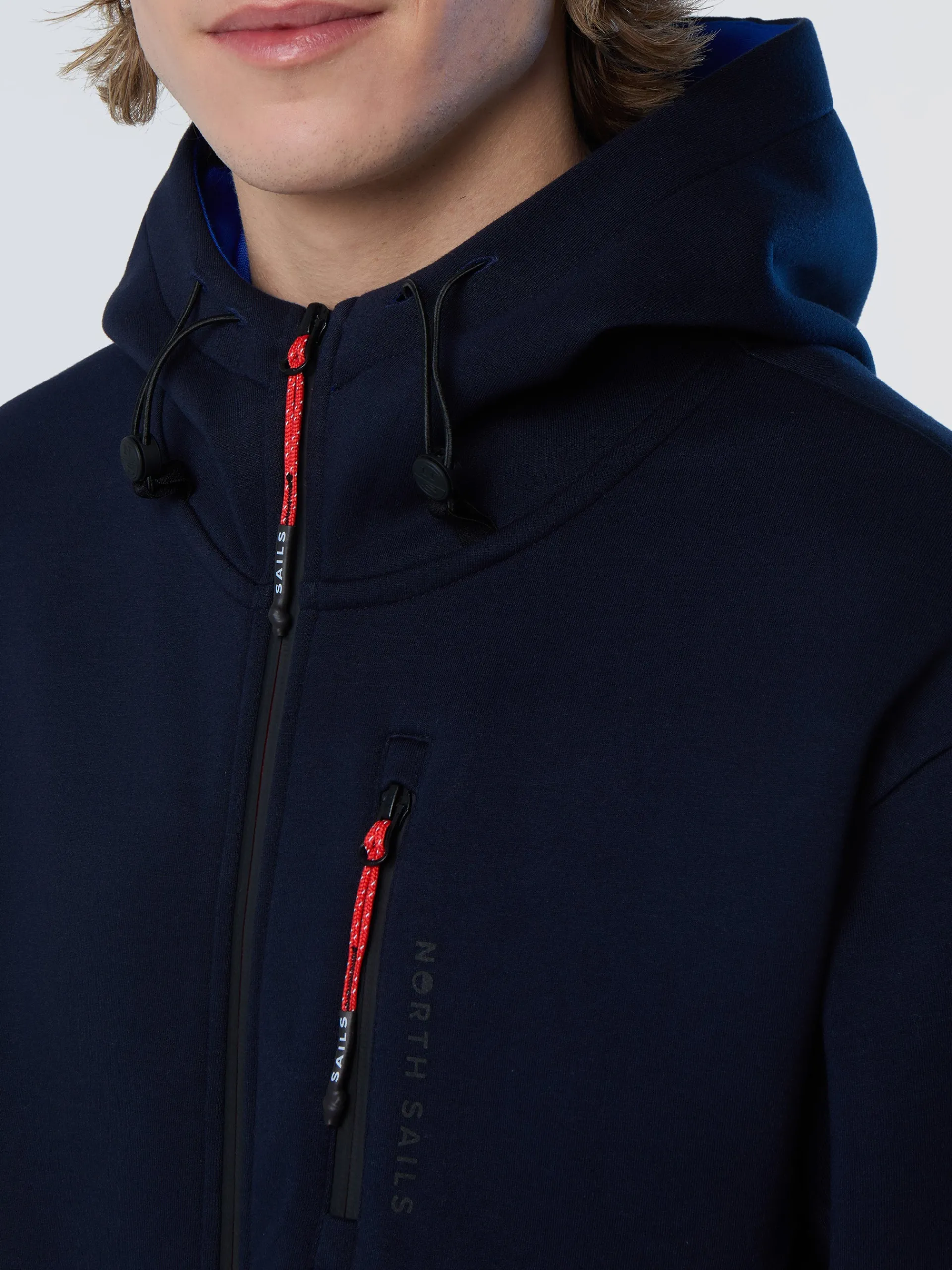La felpa dal design funzionale e accogliente dedicata a chi sceglie lo stile North Sails per le attività outdoor. Il modello è realizzato in scuba e si caratterizza per il cappuccio regolabile e la chiusura con zip per passare facilmente dall'indoor all'esterno. Le tasche con zip sui lati e sul petto sono comode per organizzare i piccoli essenziali personali.