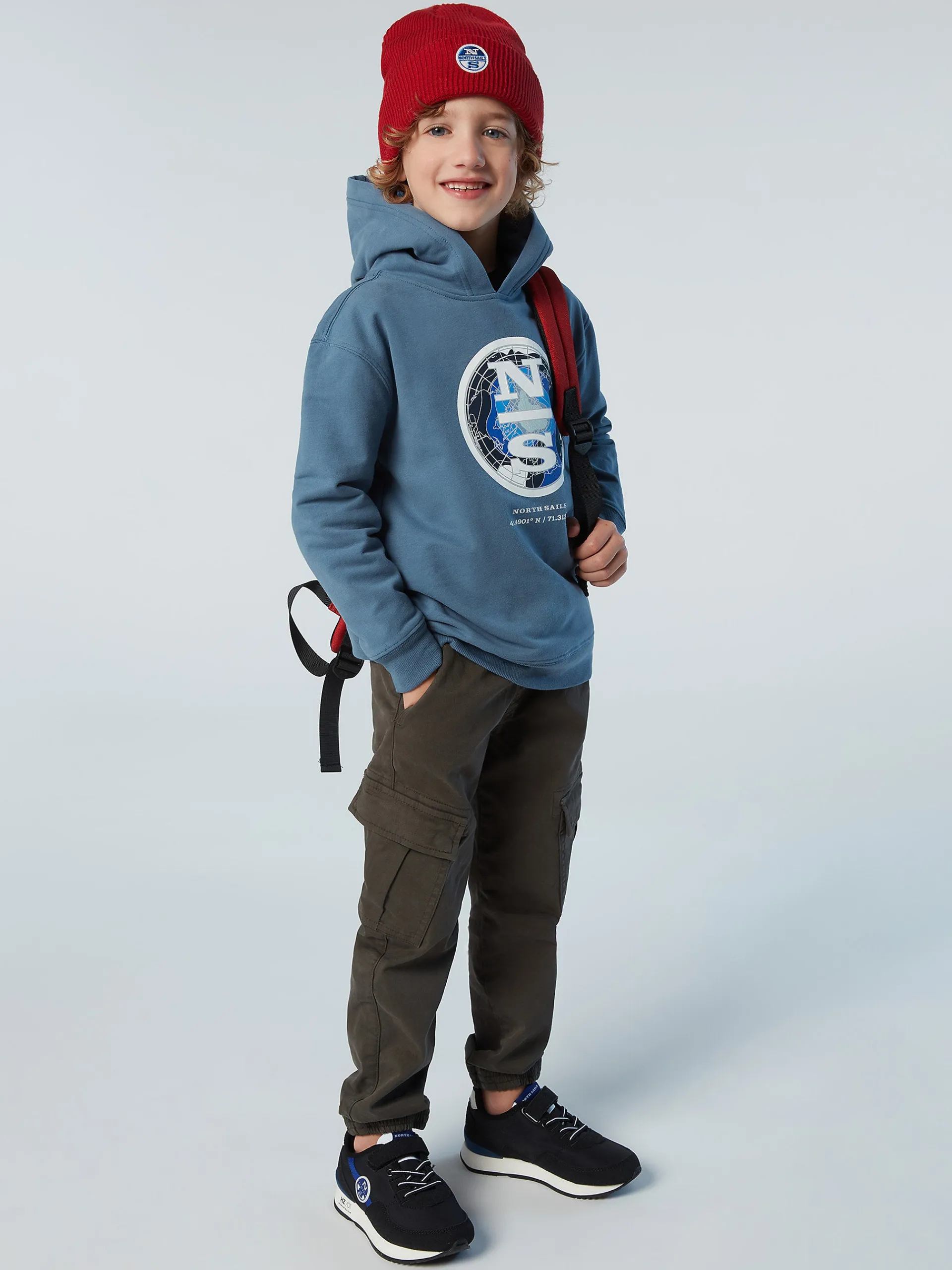 Questa felpa con cappuccio da bambino è realizzata in cotone organico stretch, trattato con un finish super soffice effetto pesca. La stampa grafica sul davanti richiama la nostra passione per l'avventura e la protezione dell'oceano: un'espressione orgogliosa del DNA North Sails.