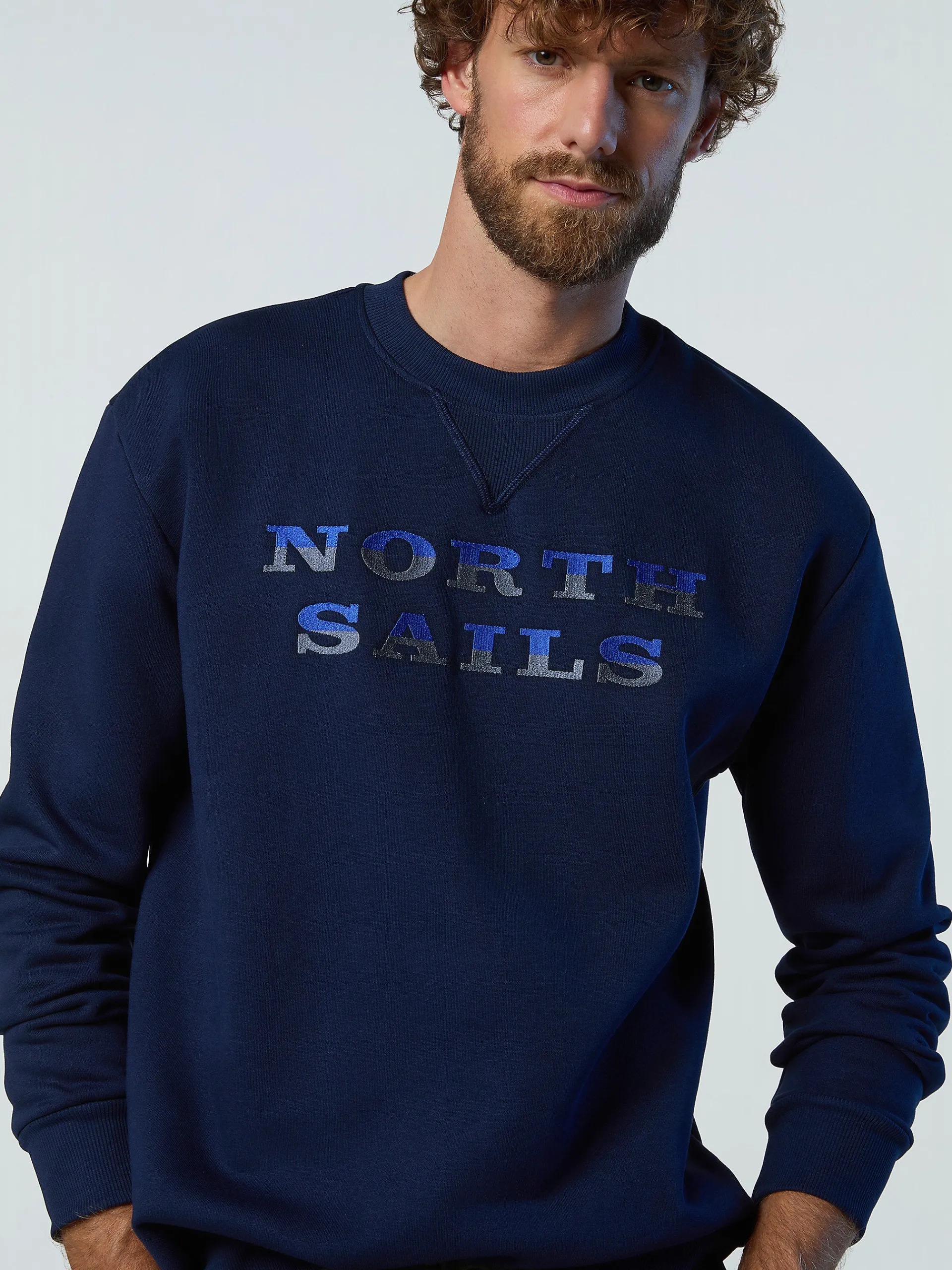 Un essenziale del guardaroba casual aggiornato con l'attitudine North Sails. Questa felpa da uomo è realizzata in cotone organico che riduce le emissioni e lo spreco di acqua rispetto alle fibre tradizionali. Si caratterizza per la linea rilassata con bordi a costine, lo sprone a V dal touch sportivo e il ricamo lettering bicolore sul petto.