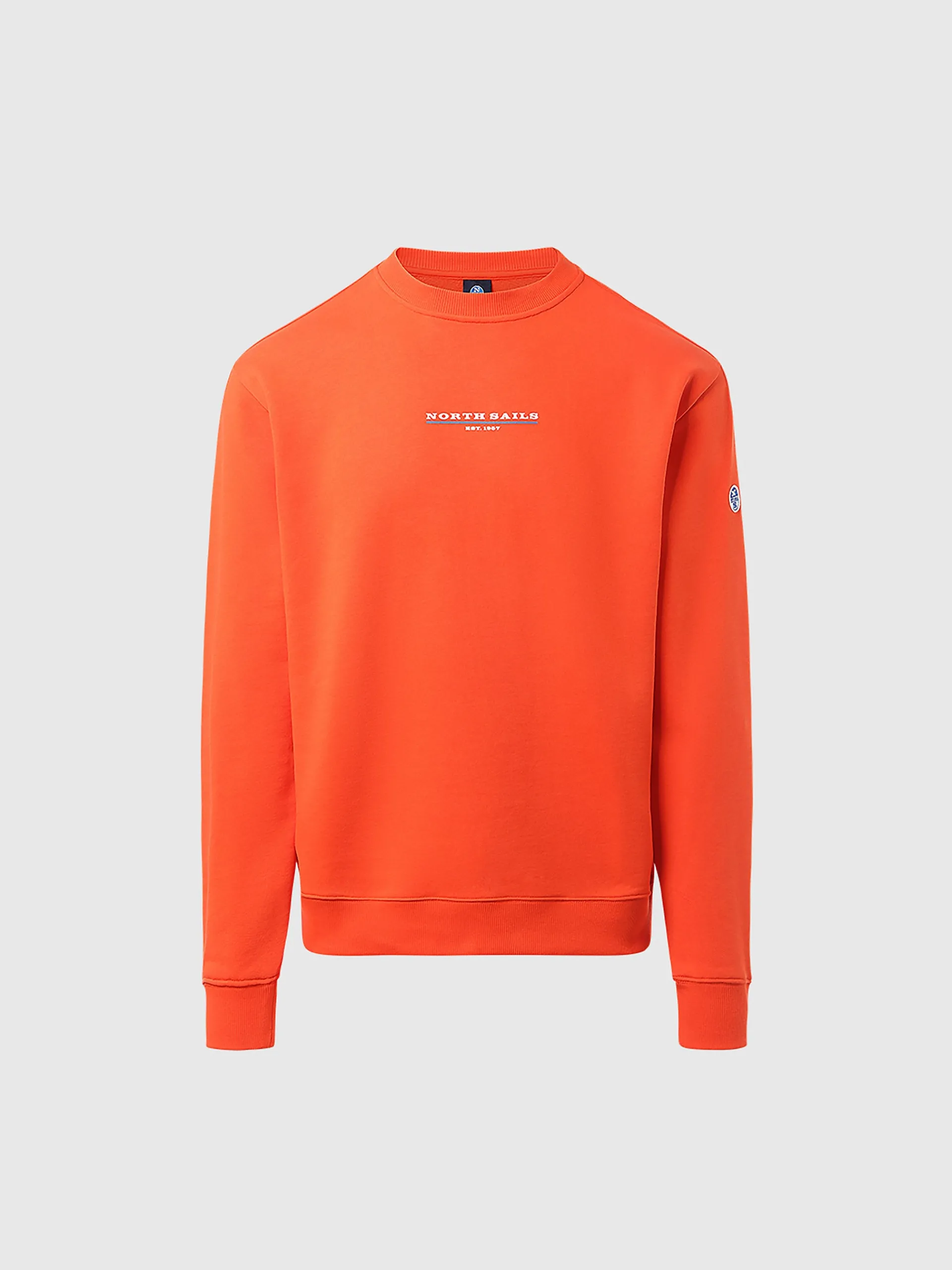 Un capo versatile da indossare in viaggio, durante le sport e i momenti di evasione del weekend. Questa felpa girocollo è realizzata in cotone organico, come parte del nostro impegno per il Pianeta. Si caratterizza per la stampa lettering sul davanti che rende omaggio all'anno di nascita del brand e il logo in feltro sulla manica sinistra.