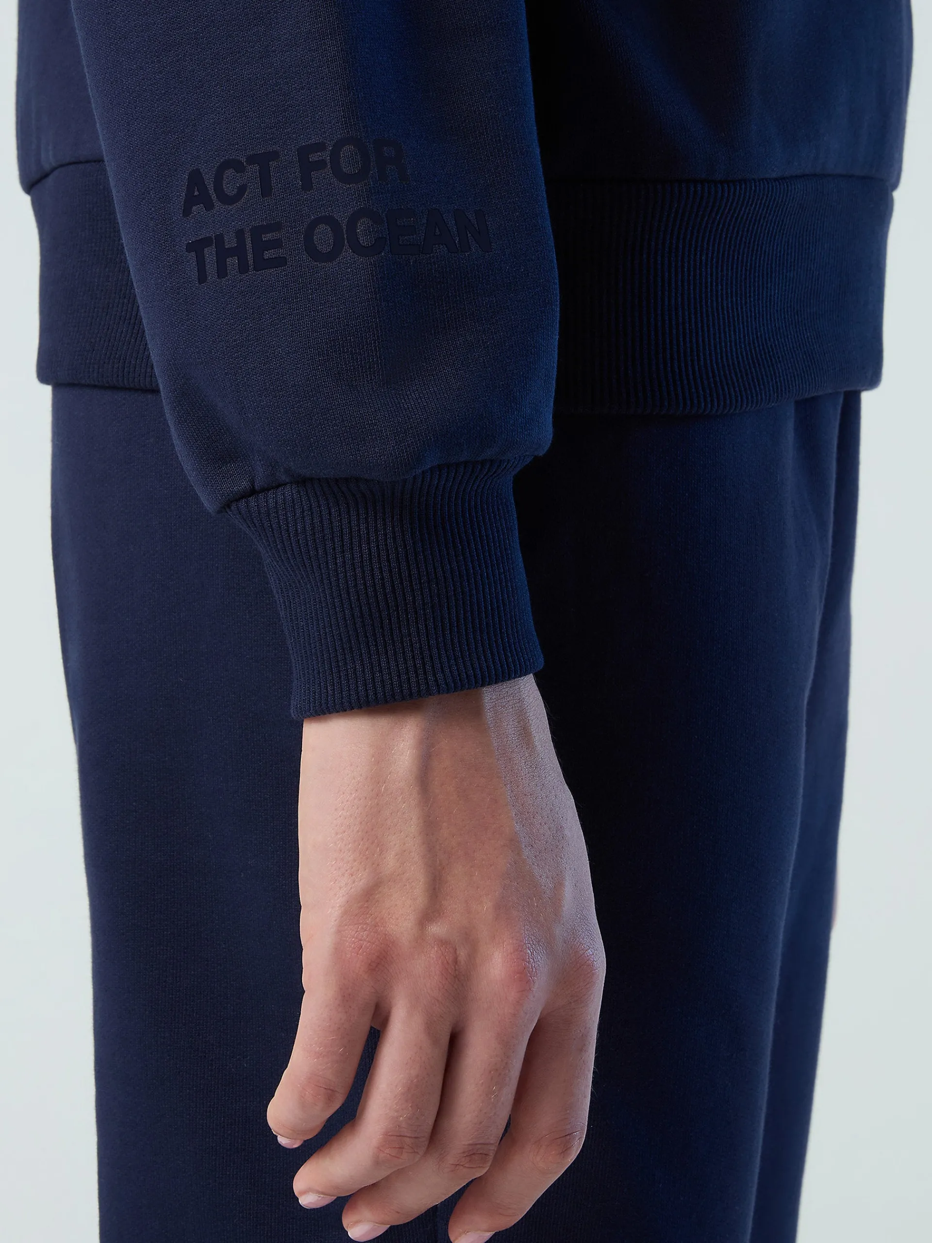 Tutti possiamo dare un contributo per salvare l'oceano. Questa felpa boxy dallo stile disinvolto si caratterizza per la stampa lettering che dichiara il nostro impegno per l'ecosistema marino. Il modello è realizzato in cotone organico che riduce le emissioni e lo spreco di acqua rispetto alle fibre tradizionali. Si caratterizza il logo North Sails al fondo.