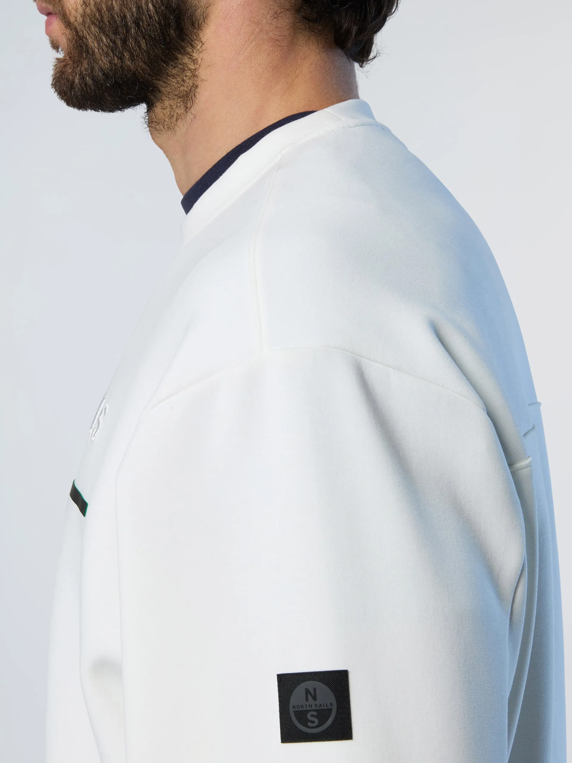 Un essenziale del guardaroba casual diventa interprete dei codici North Sails. Questa felpa da uomo è realizzata in scuba stretch, ottenuto da fibre riciclate che dimostrano il nostro impegno positivo per l'oceano. La tasca con zip invisibile sulla manica aggiunge un tocco funzionale, mentre il logo tono su tono enfatizza l'attitudine sofisticata del capo.
