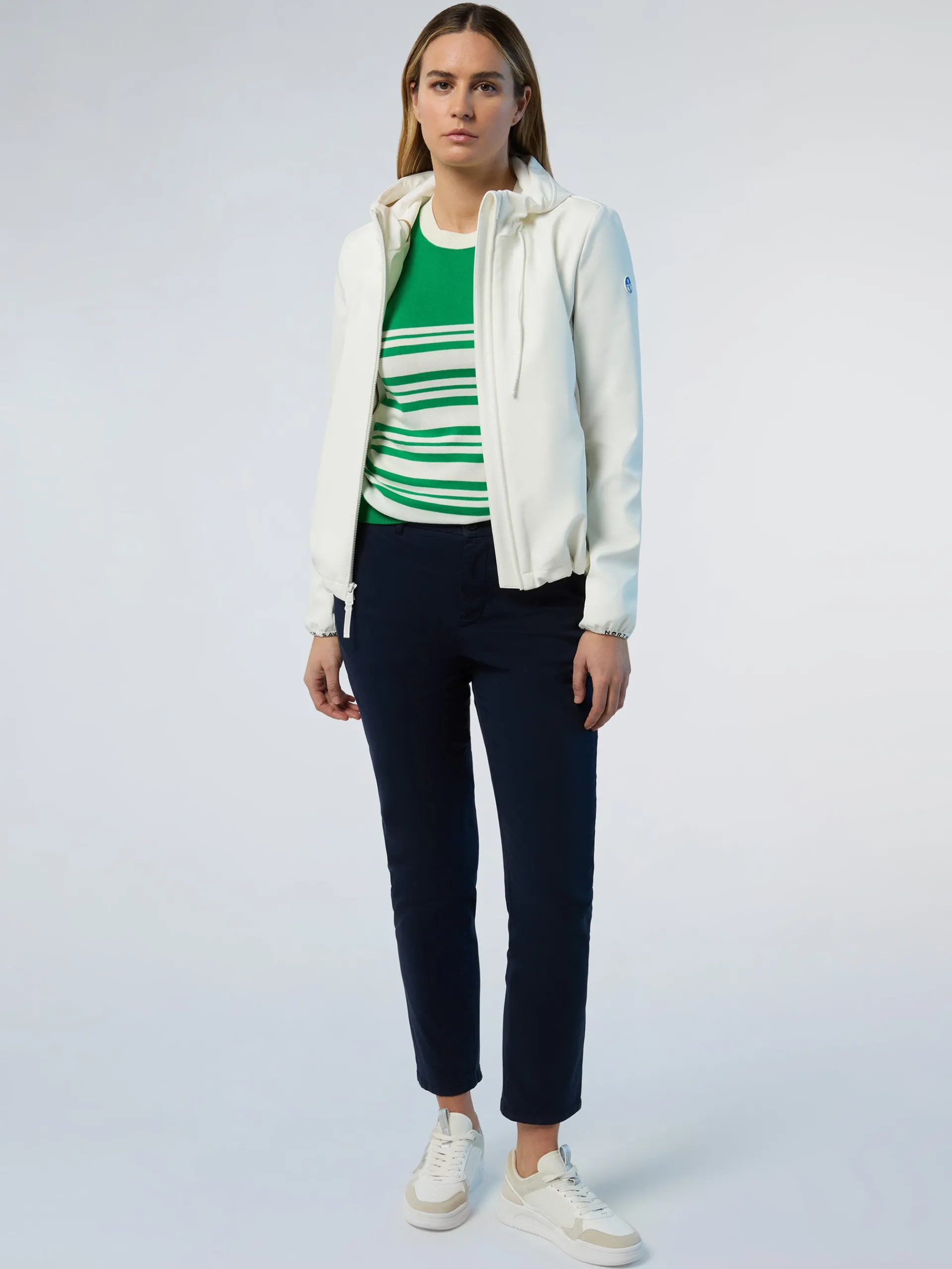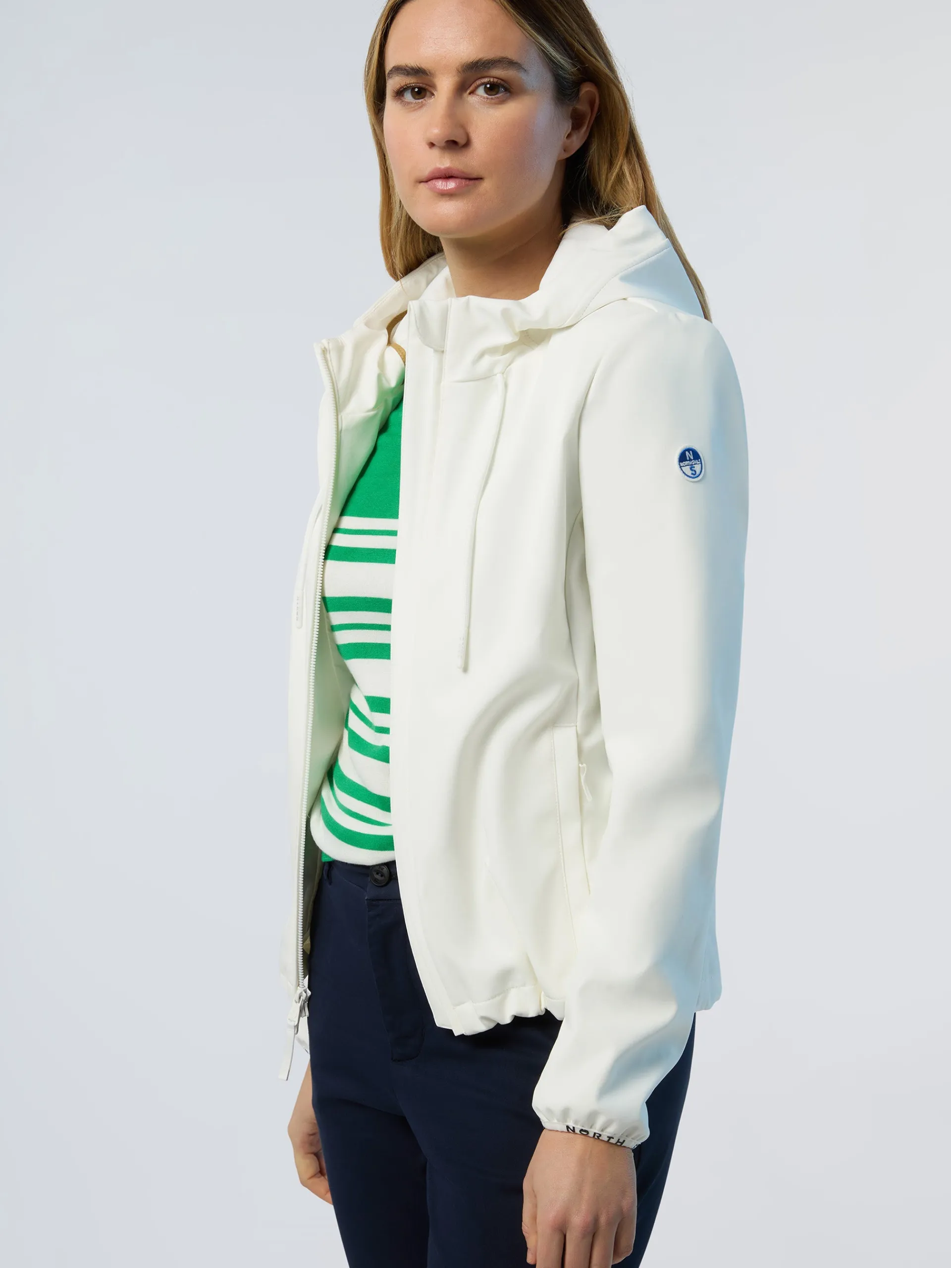 Elegante, leggera e accogliente, la giacca Ellen è un vero must have per le avventure outdoor. Il modello è realizzato in softshell riciclato resistente all'acqua che dimostra il nostro impegno per la difesa dell'oceano. Si caratterizza per la silhouette femminile con bordi strech e coulisse che creano aderenza e bloccano il passaggio del vento. La patch North Sails sulla manica completa il look con un tocco esclusivo.