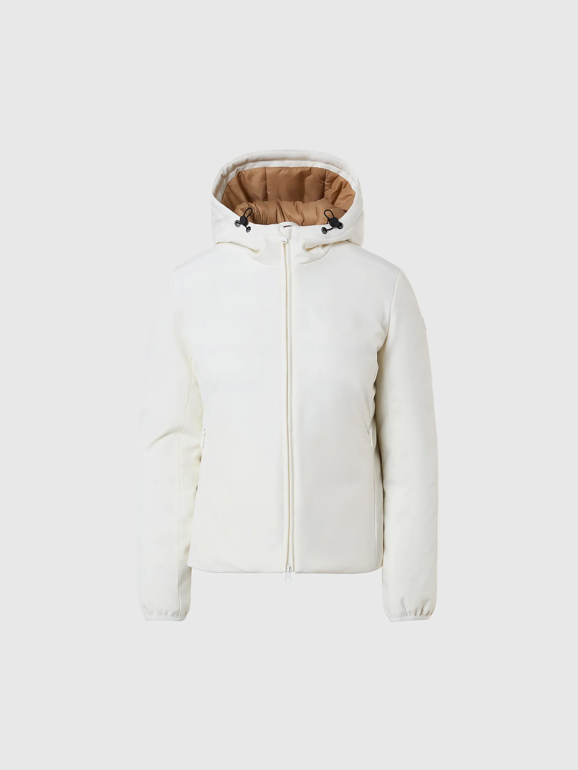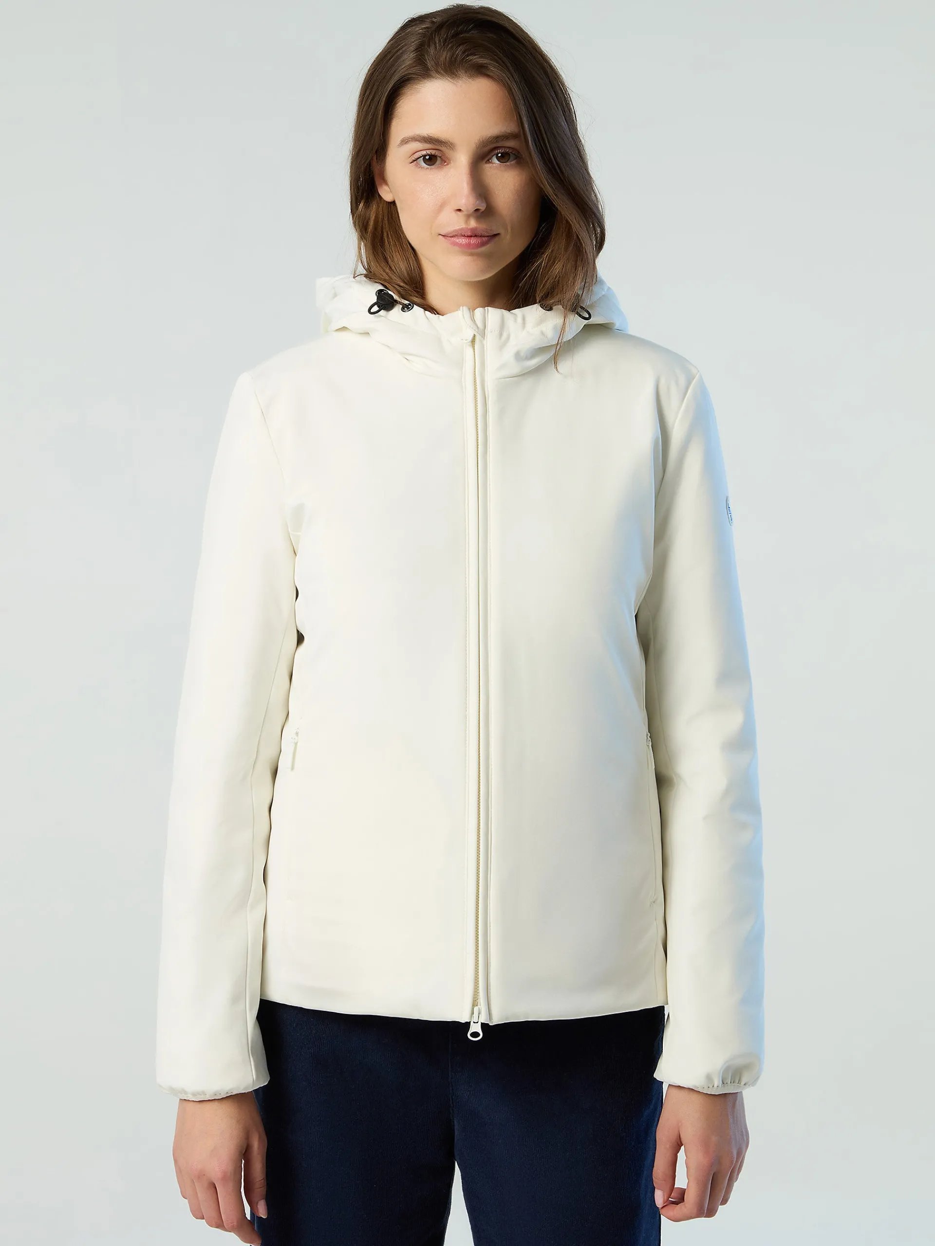 La giacca Ellen da donna combina ricerca estetica e spirito outdoor. Il modello ha una silhouette slim ed è realizzato in softshell riciclato a triplo strato, leggero sulla pelle e gentile con il pianeta. Impermeabile, antivento e ultra traspirante, si caratterizza per l'imbottitura in piuma sintetica e le tasche funzionali con zip invisibile. La patch logata aggiunge un tocco North Sails.