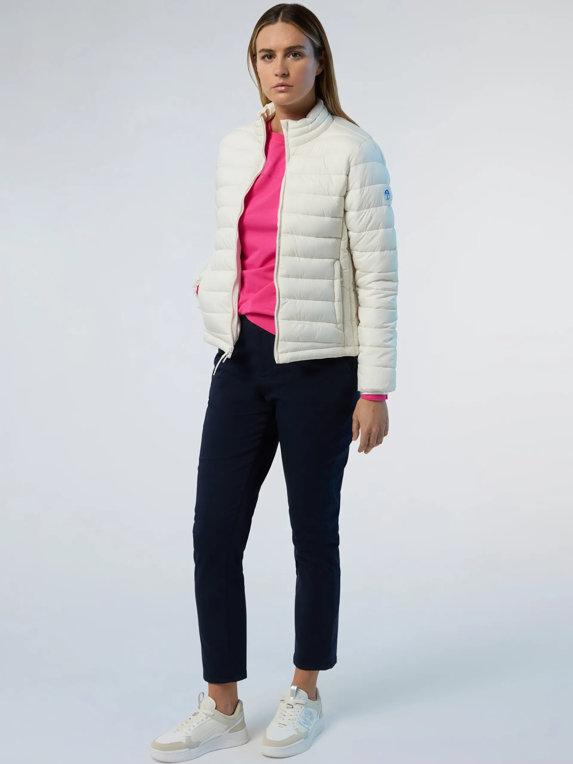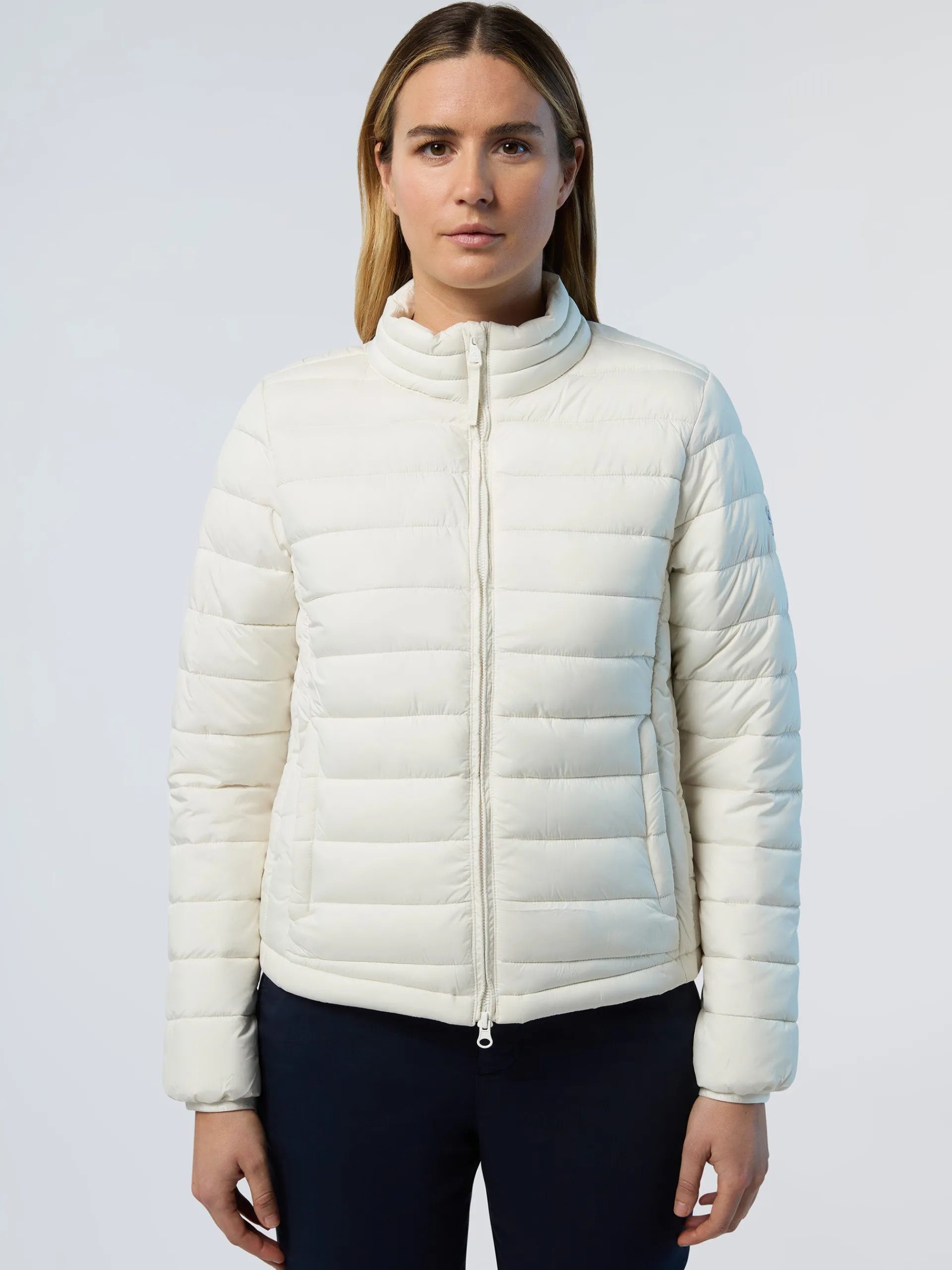 Funzionale e femminile, la giacca Naomi è dedicata a chi vuole coniugare stile e protezione durante le esperienze outdoor. Il modello è realizzato in poliestere riciclato con trattamento idrorepellente, trapuntatura orizzontale e imbottitura in piuma sintetica che rispetta il pianeta. La trapuntatura verticale sui fianchi slancia la silhouette, mentre la patch North Sails sulla manica aggiunge un tocco distintivo.