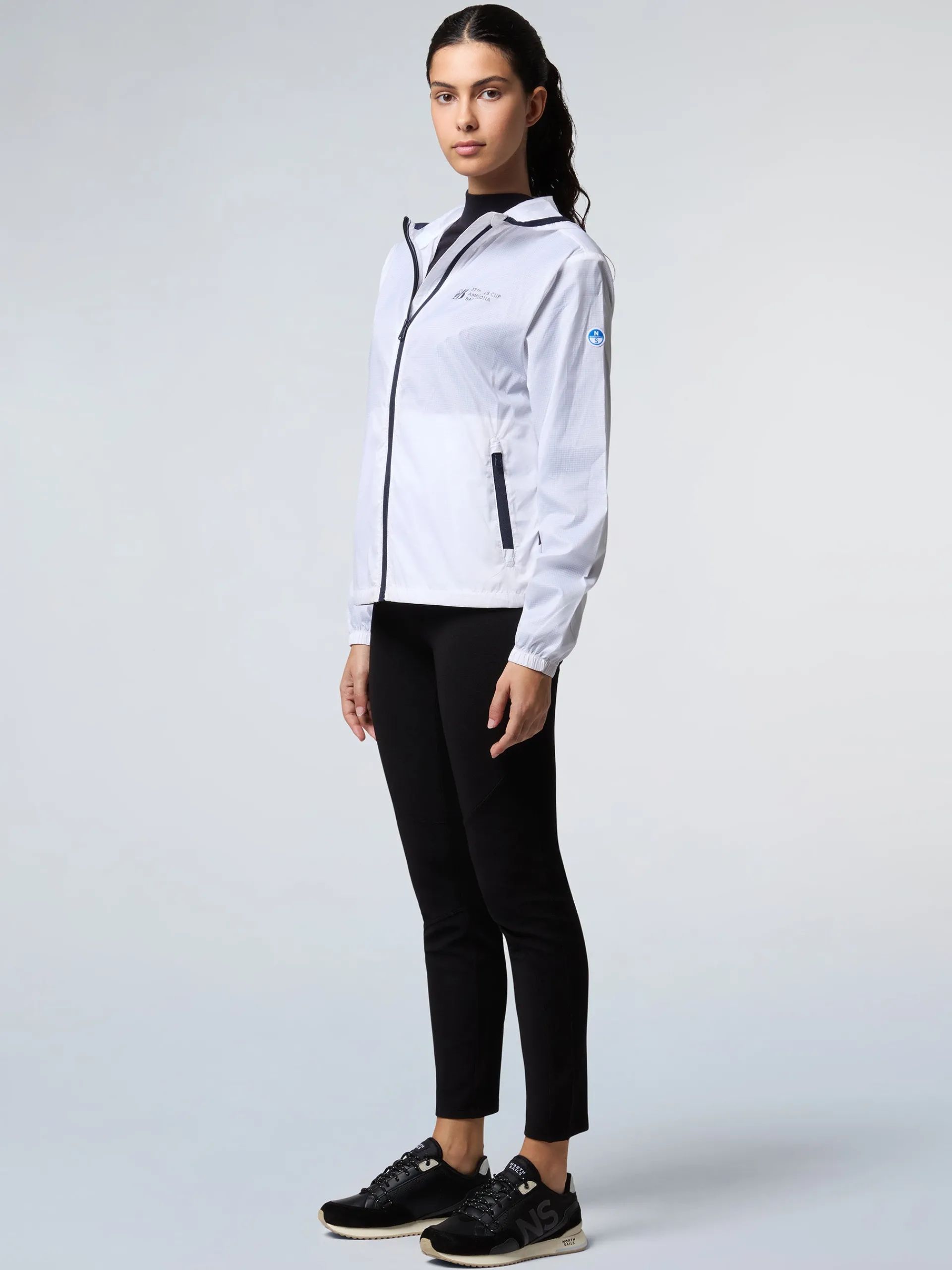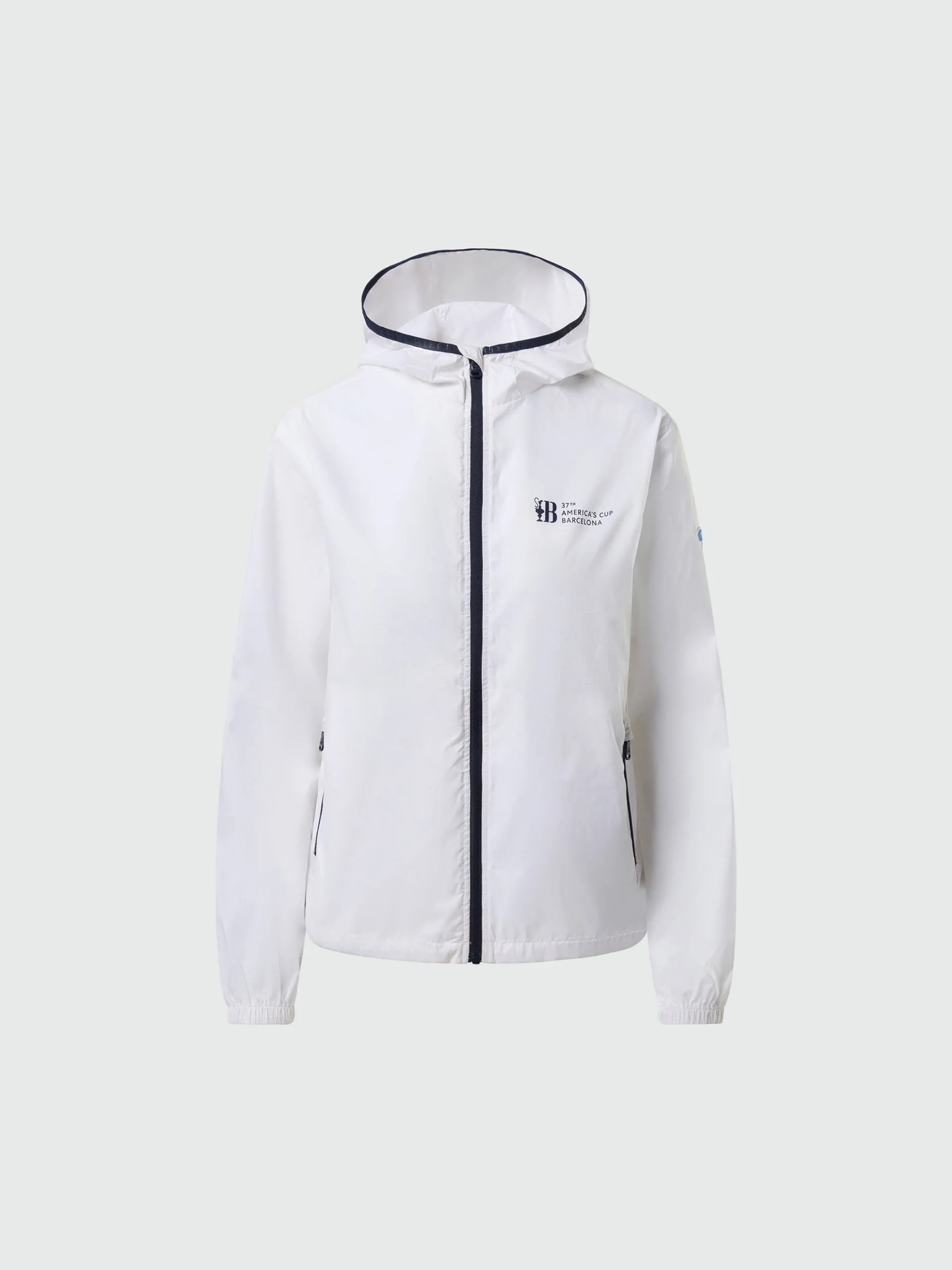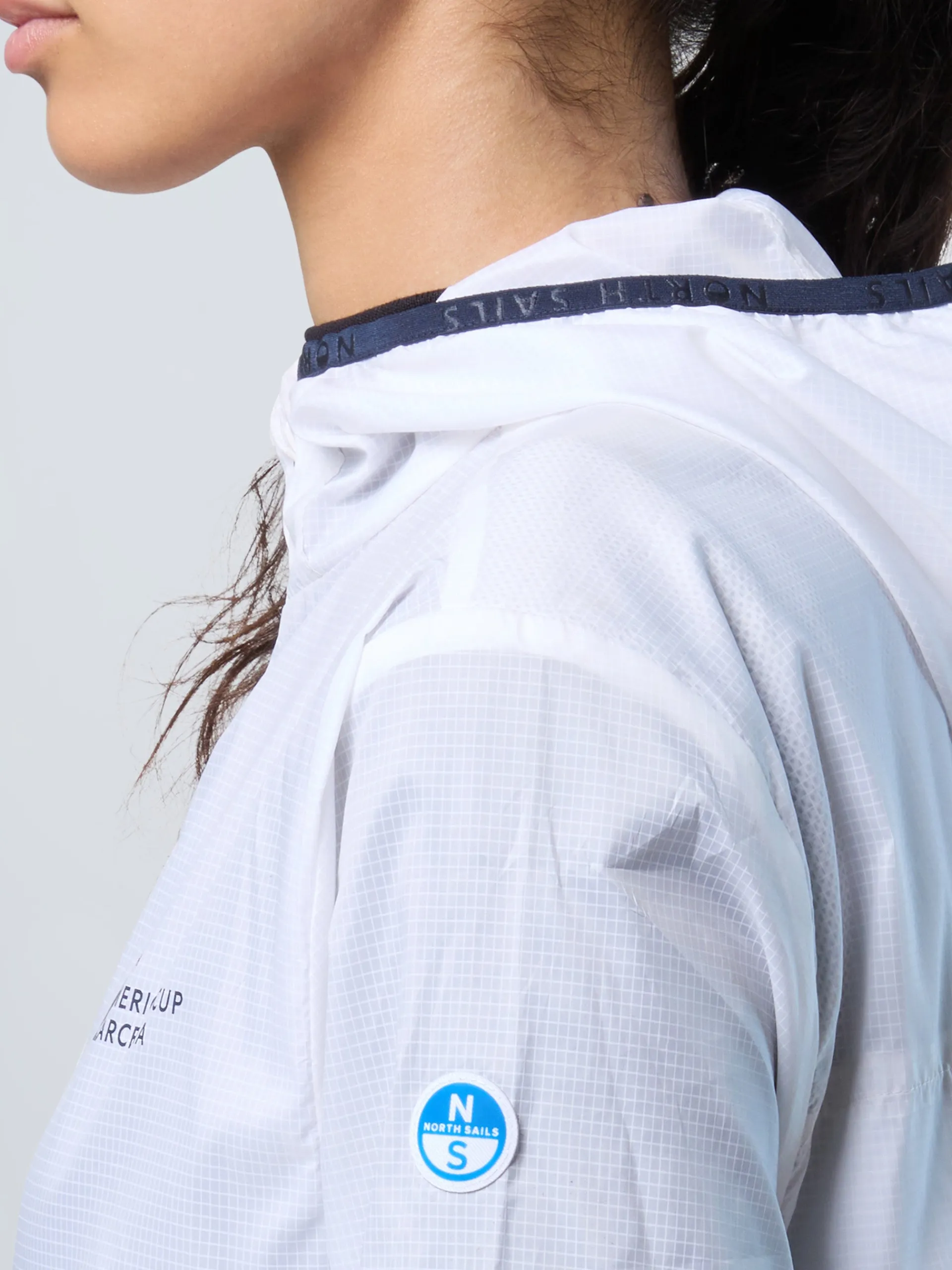 Superior functionality meets the exclusive allure of the America's Cup. This lightweight women's jacket is part of the special collection celebrating the 37th edition of the legendary sailing race, crafted from water-repellent recycled micro-ripstop in honor of our commitment to using materials that are better from the planet. Folding right up into the inside zipper pocket when you don't need it, this packable style is embellished with a classic North Sails patch on the sleeve and official regatta branding on the chest.