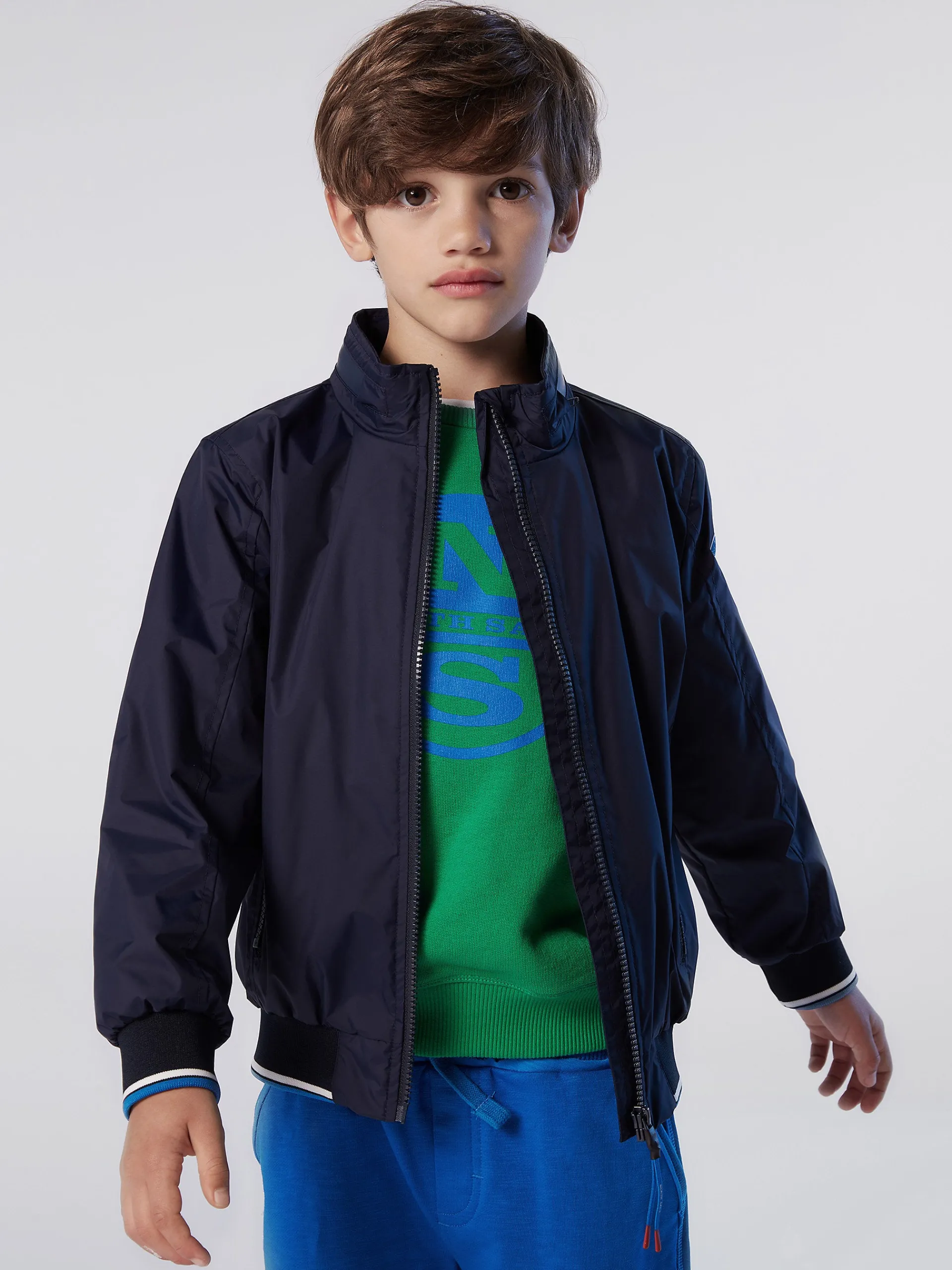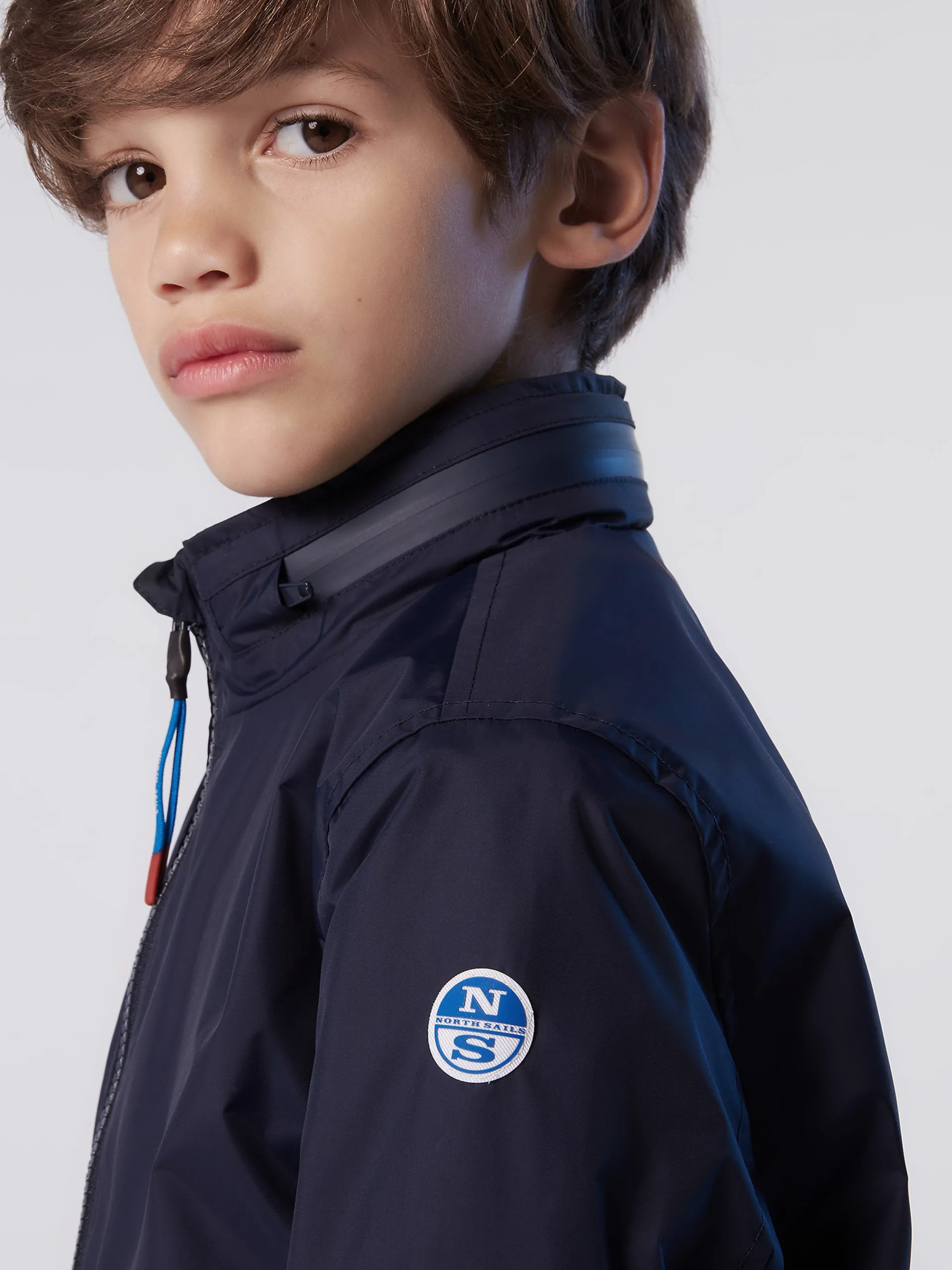 Questo modello rielabora l'iconica Sailor Jacket in chiave mini me. Realizzata in nylon riciclato offre una protezione di peso medio e rappresenta un passo positivo per il Pianeta. I bordi in maglia a costine con motivo a righe aggiungono un tocco grafico, mentre le tasche con zip e il cappuccio ripiegabile ne enfatizzano il contenuto funzionale. Stampa lettering all'interno "Reuse, Reduce, Rethink".