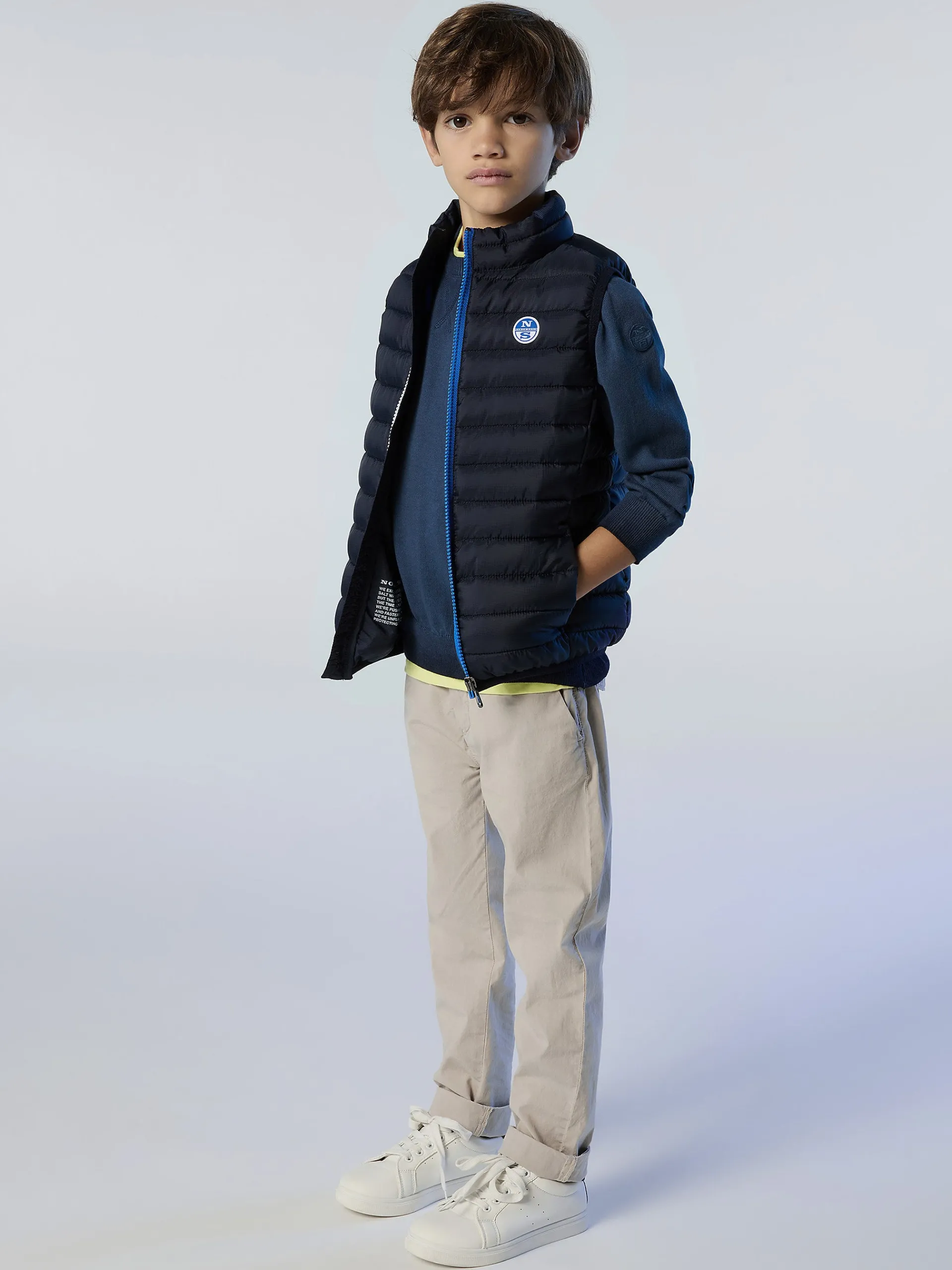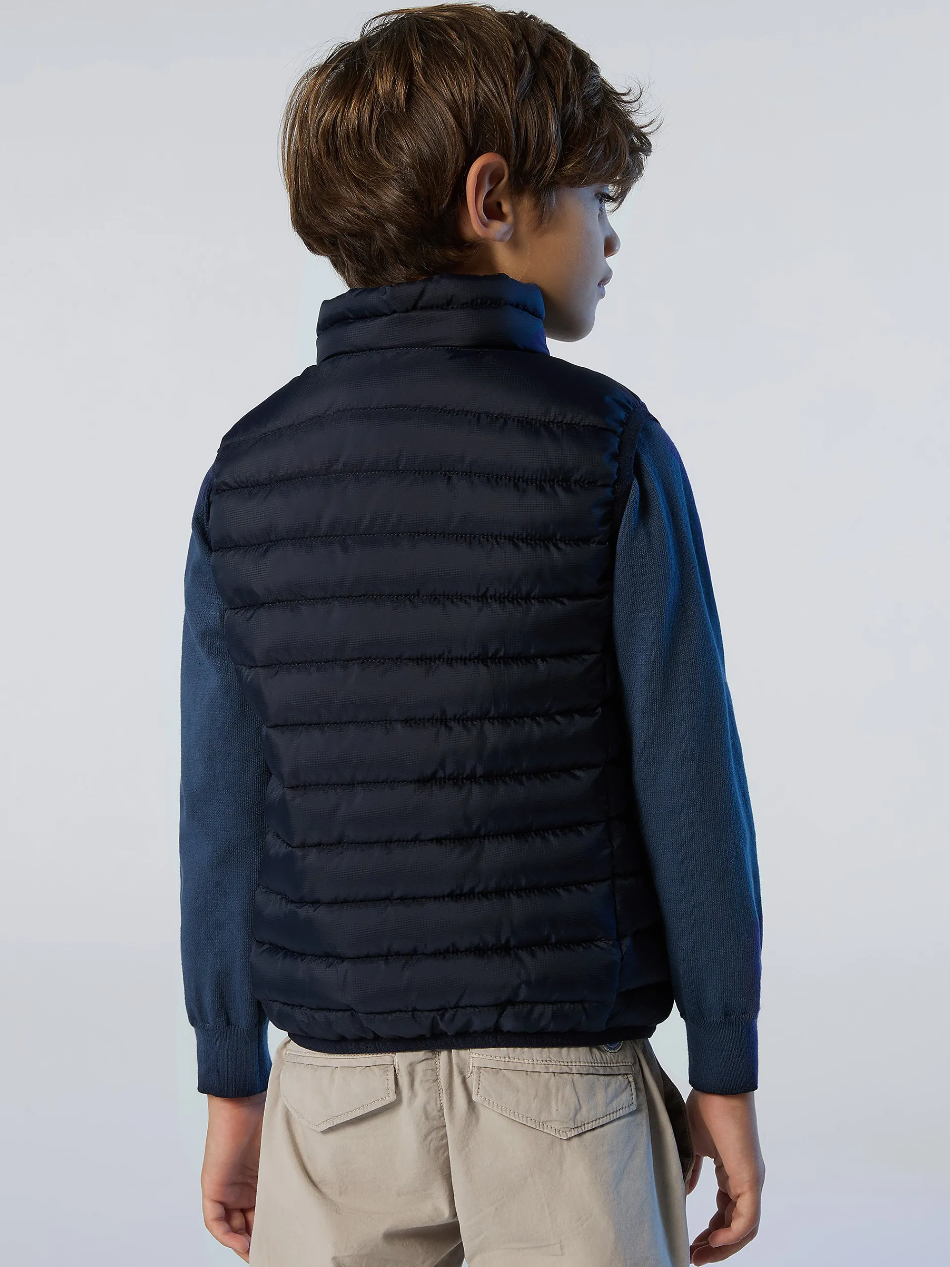 Un essenziale del guardaroba mini me dedicato alla mezza stagione. Questa versione del nostro iconico gilet Crozet è realizzata in tessuto micro ripstop riciclato e idrorepellente con trapuntatura a righe per trattenere il calore. Si caratterizza per l'imbottitura in Repreve, una fibra ottenuta dal riciclo delle bottiglie di plastica, ed è rifinito con bordi elasticizzati e comode tasche.