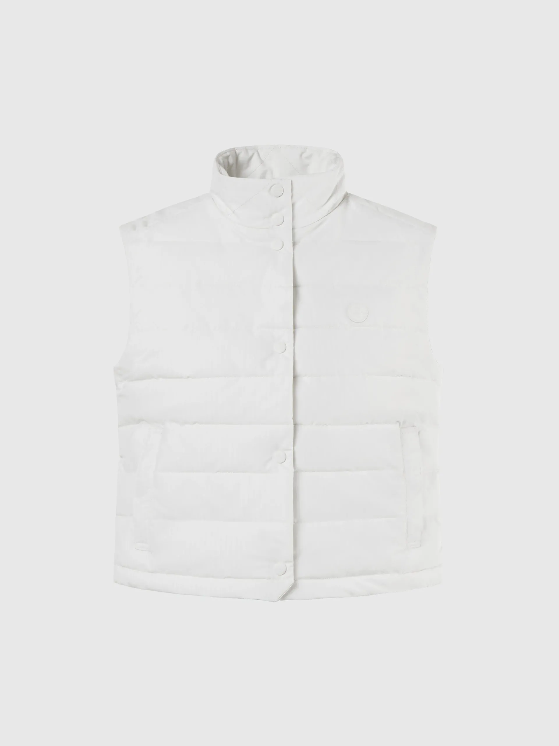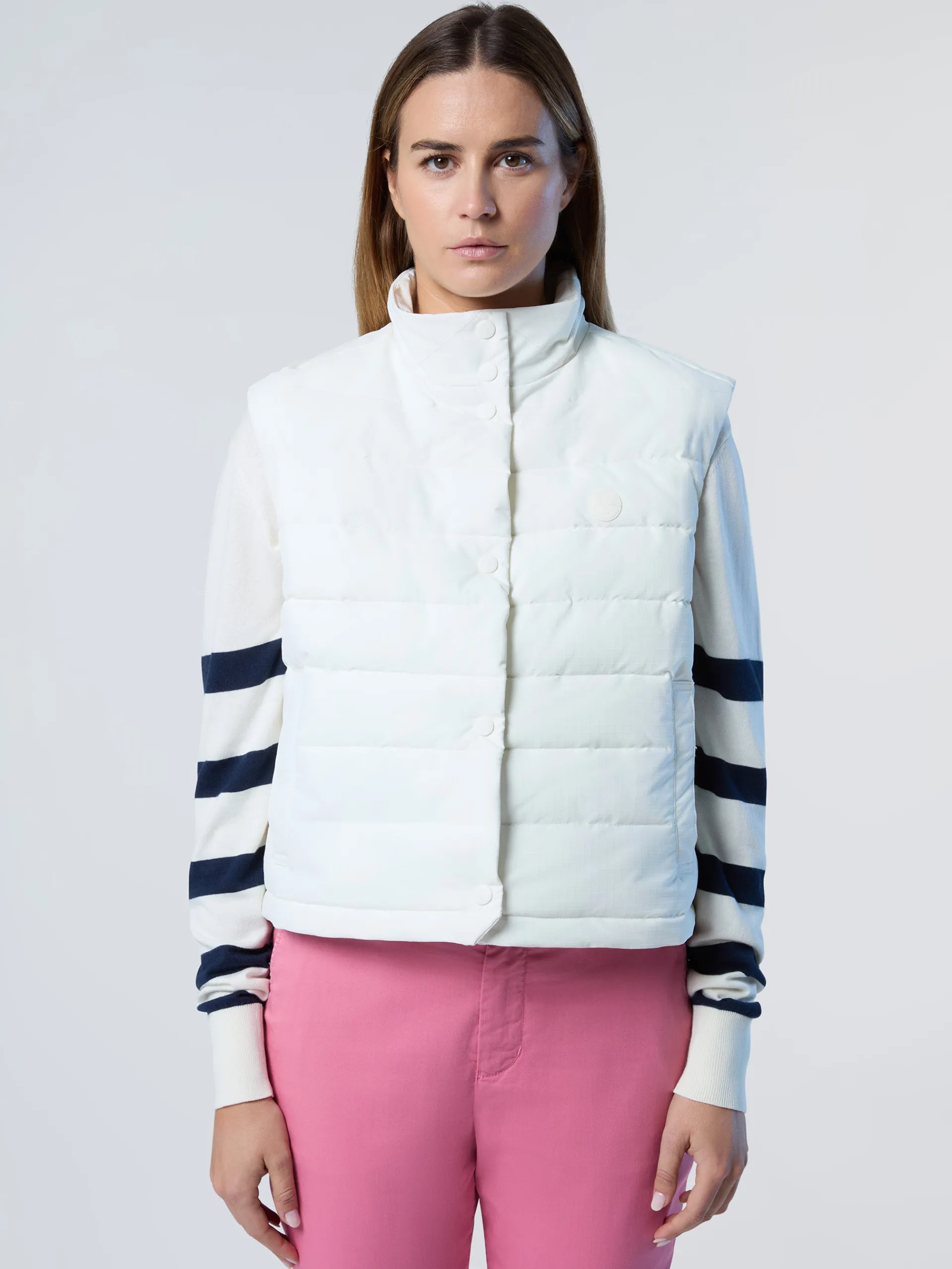 The classic quilted vest gets a fresh update with this sophisticated women's style, filled with light padding that's just enough to combat a cool summer breeze. Crafted from water-resistant recycled ripstop to help keep waste out of landfill and our precious oceans, the Fuego Vest flaunts a short boxy fit for a more trendy look. Finished with snap buttons and a logo on the chest for a signature North Sails touch.