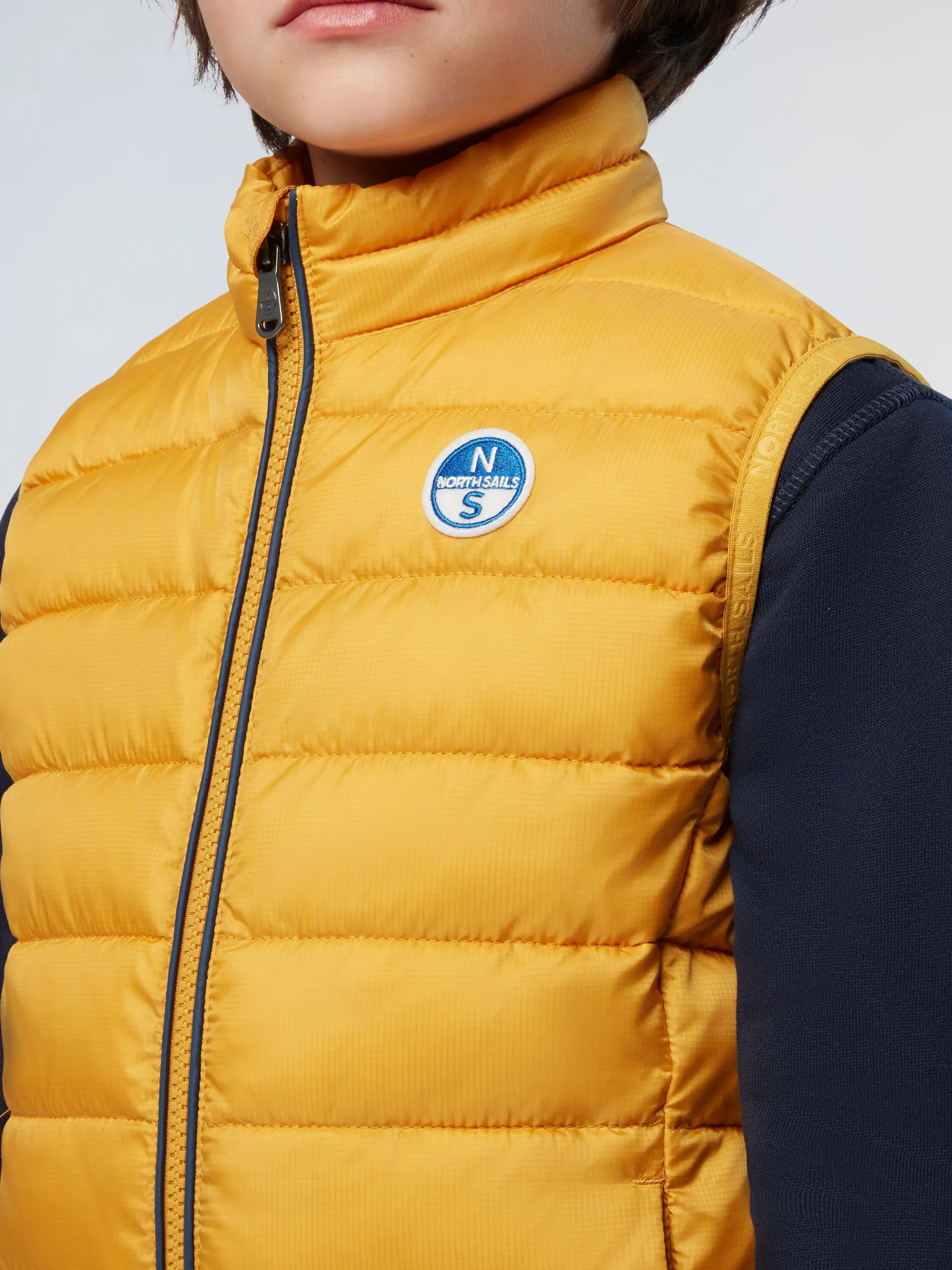Perfetto da indossare sopra t-shirt e felpe, il gilet Skye è pensato per arricchire il guardaroba della mezza stagione. Il modello da bambino è realizzato in tessuto micro-ripstop riciclato con rivestimento idrorepellente e imbottitura in REPREVE®, una fibra innovativa prodotta da bottiglie di plastica riciclata. I bordi elasticizzati e le tasche enfatizzano la funzionalità del modello, mentre il logo sul petto aggiunge un tocco distintivo.