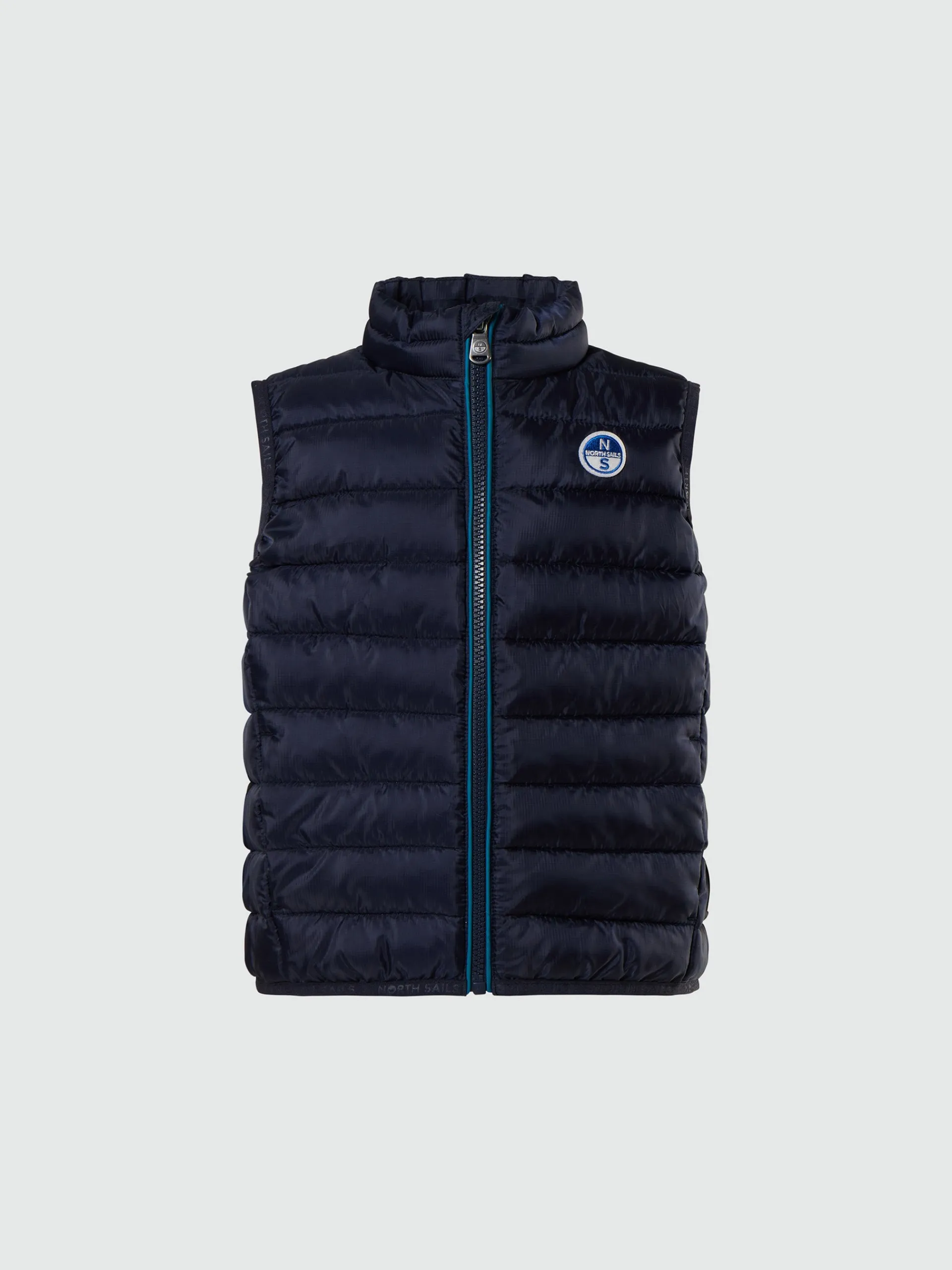 Perfetto da indossare sopra t-shirt e felpe, il gilet Skye è pensato per arricchire il guardaroba della mezza stagione. Il modello da bambino è realizzato in tessuto micro-ripstop riciclato con rivestimento idrorepellente e imbottitura in REPREVE®, una fibra innovativa prodotta da bottiglie di plastica riciclata. I bordi elasticizzati e le tasche enfatizzano la funzionalità del modello, mentre il logo sul petto aggiunge un tocco distintivo.