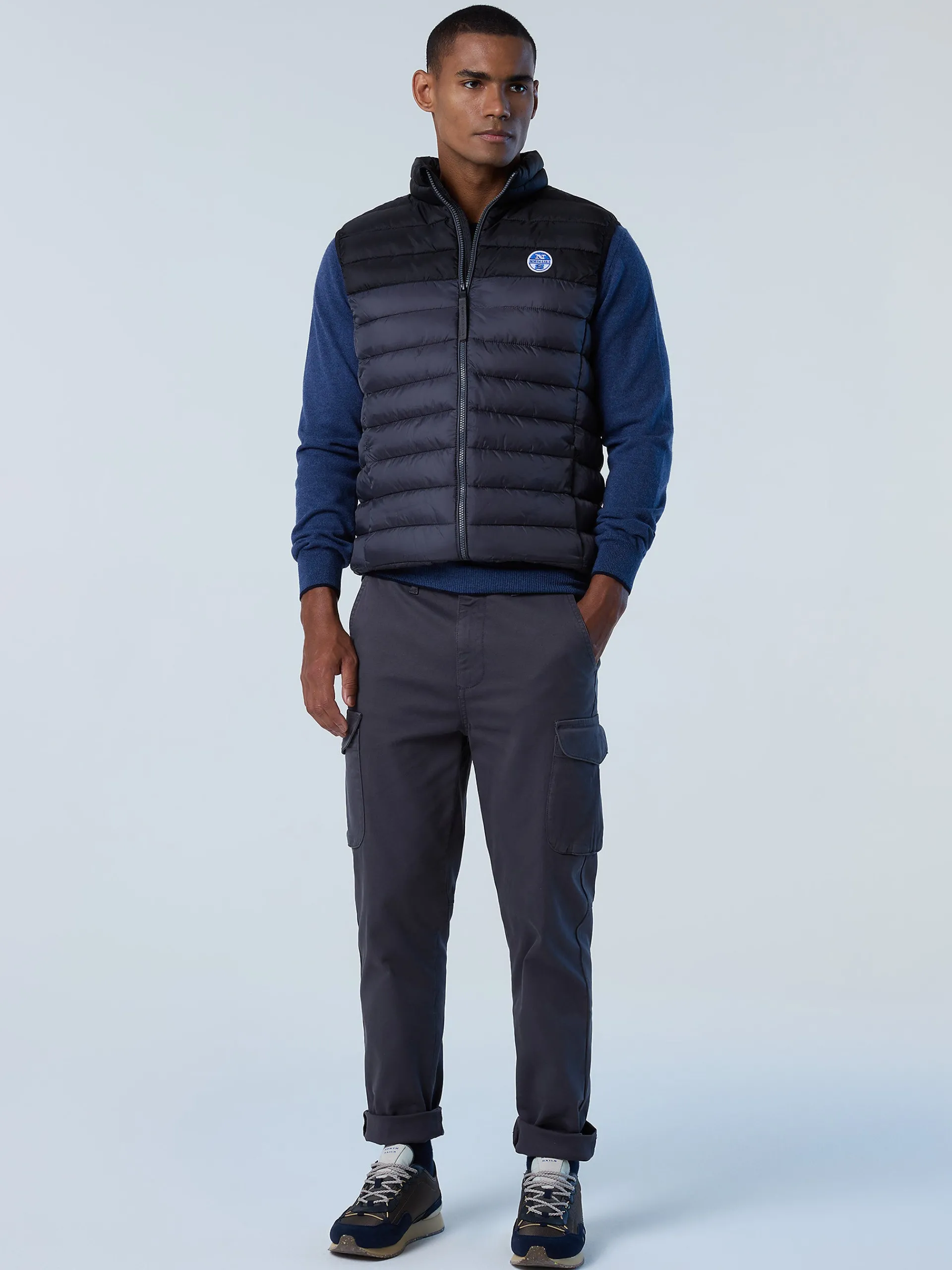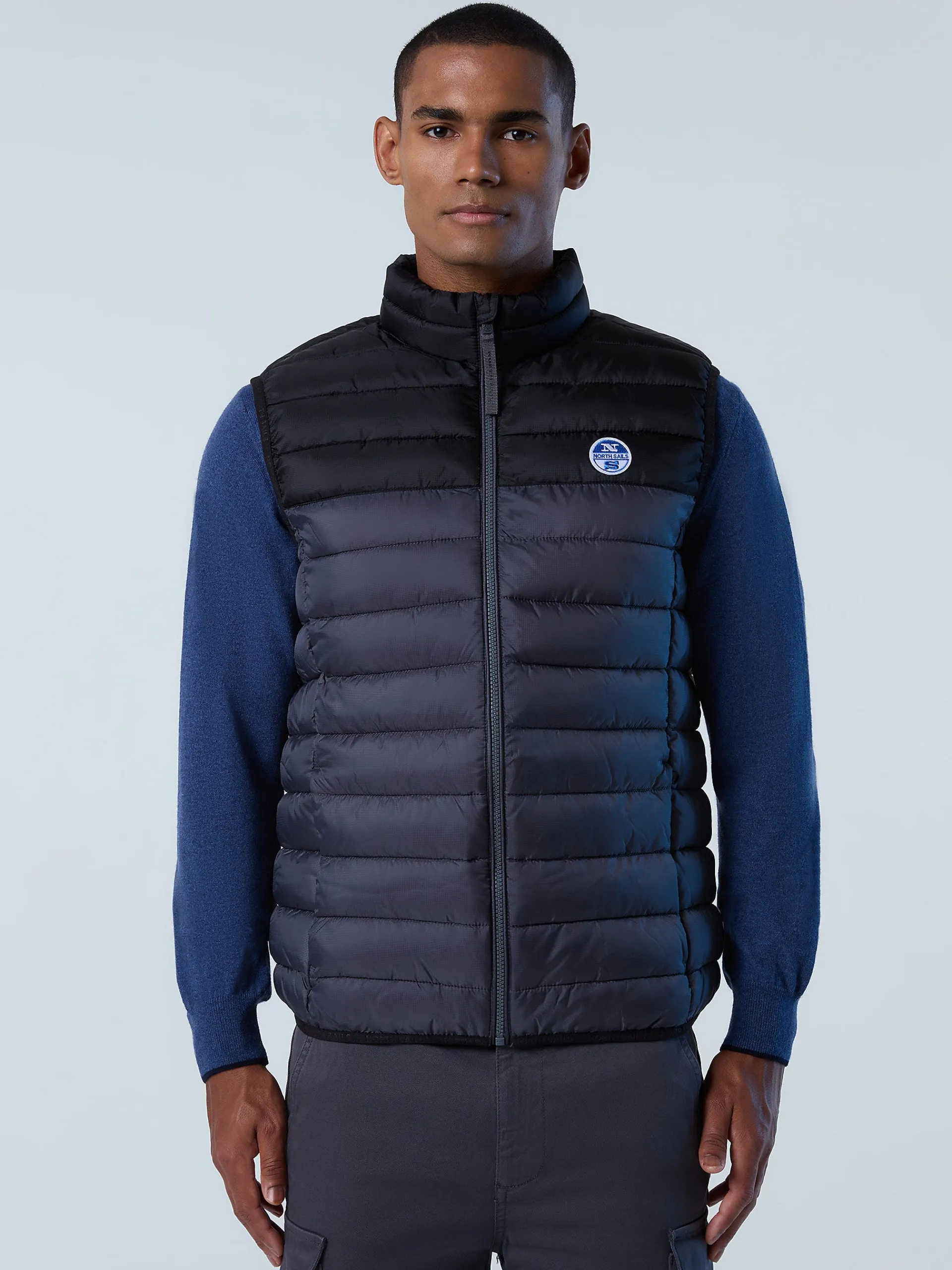 Il gilet Sky è un must per chi vuole affermare il proprio stile anche durante le avventure outdoor. Il modello da uomo è realizzato in tessuto micro-ripstop riciclato con rivestimento idrorepellente e imbottitura in Repreve, una fibra innovativa prodotta da bottiglie di plastica riciclata. I bordi elasticizzati e le tasche enfatizzano la funzionalità del modello, mentre il logo sul petto aggiunge un tocco distintivo.
