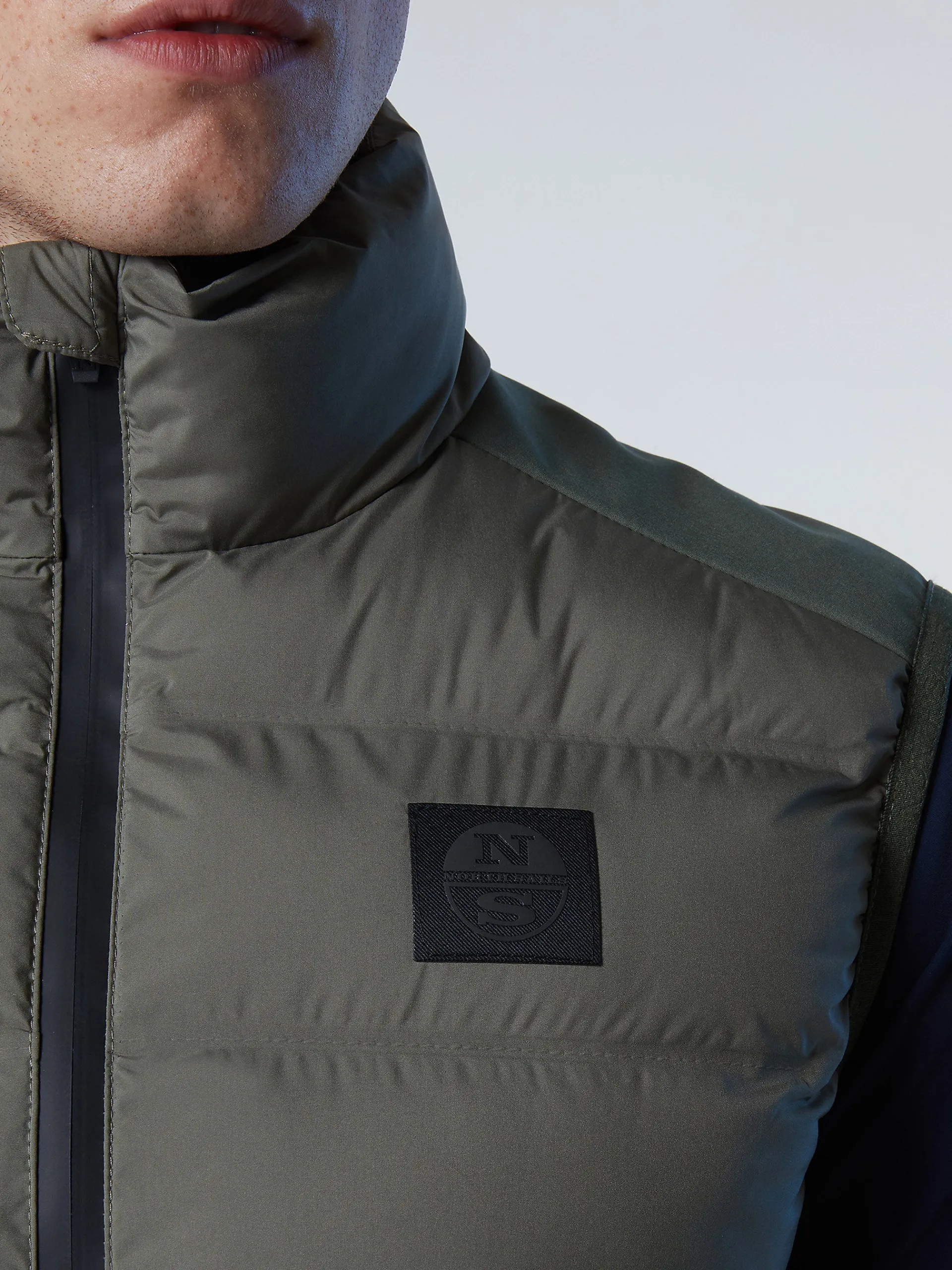 Ultrafunzionale, leggero e idrorepellente: Utility Vest è l'alleato indispensabile per le avventure all'aria aperta e i cambi di clima. Il modello si caratterizza per il corpo in nylon riciclato trapuntato, i lati in softshell riciclato e l'imbottitura ottenuta dal riciclo delle bottiglie di plastica per il rispetto del Pianeta. Si caratterizza per i micro fori tagliati al laser per un'ottima traspirabilità e il logo North Tech sul petto.