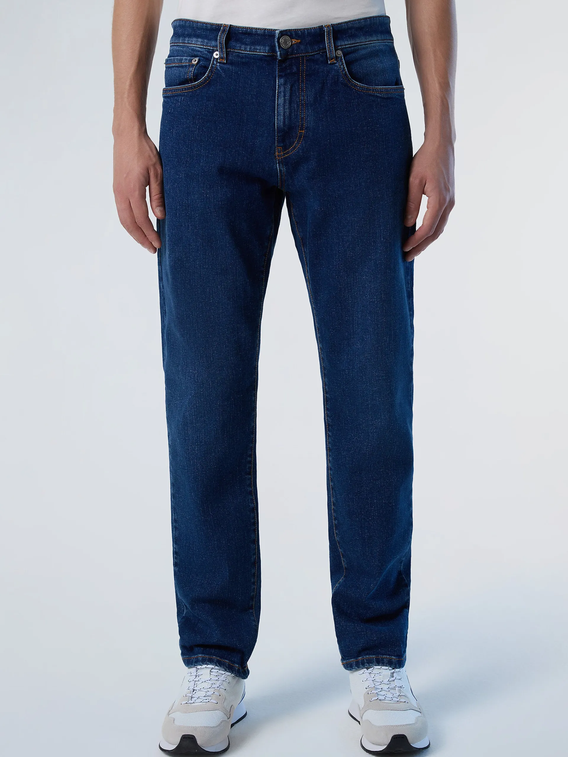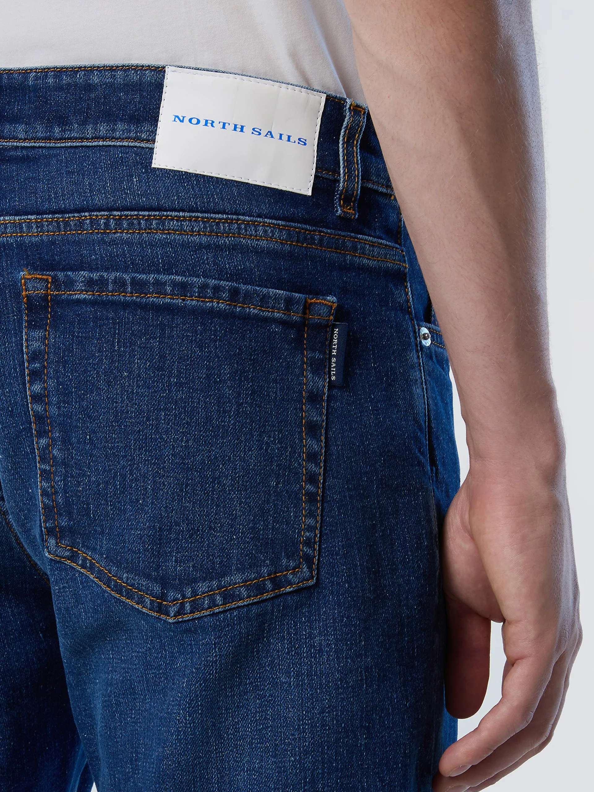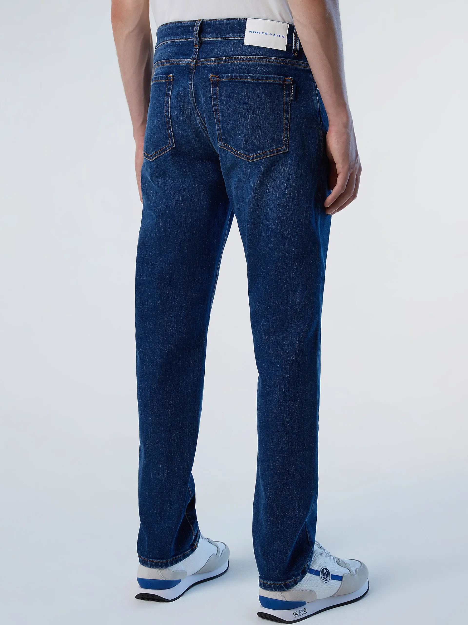 Un essenziale del guardaroba casual che combina stile, comfort e rispetto per il pianeta. Questi jeans da uomo in denim stretch sono realizzati in cotone riciclato e certificato BCI per un minore impatto sull'ambiente. Il modello cinque tasche ha gamba dritta, vita media ed è rifinito con la salpa personalizzata North Sails.