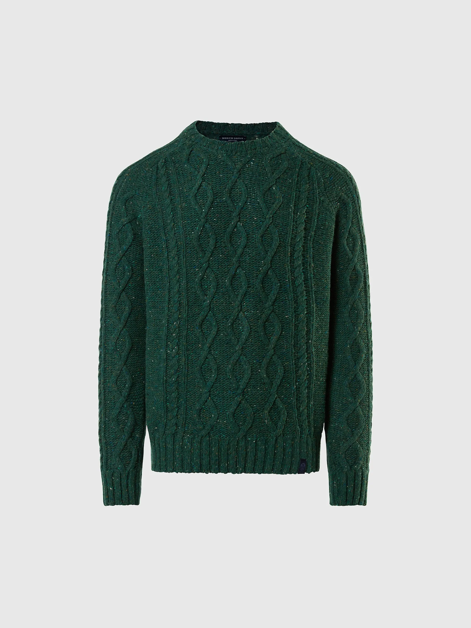 Il classico maglione a trecce reinterpretato secondo i codici iconici North Sails. Il modello è realizzato in misto lana riciclata per combinare stile e rispetto per il pianeta. Il collo a giro e le maniche raglan creano un look rilassato, mentre la label logata al fondo aggiunge una nota distintiva.