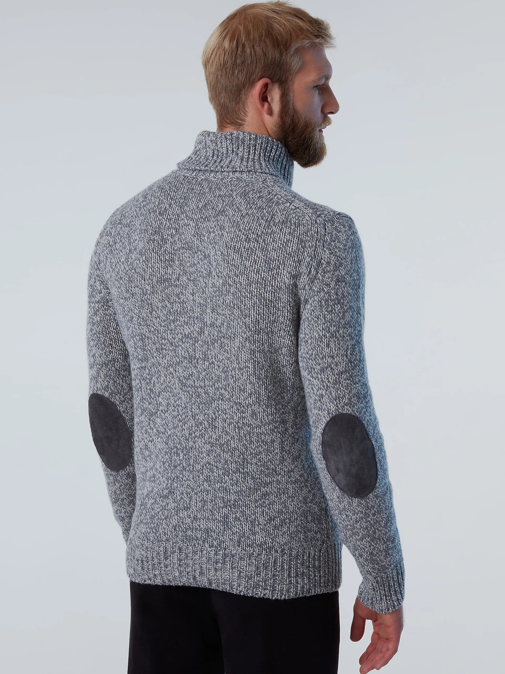 Caldo e accogliente, questo maglione a collo alto è perfetto da indossare in ogni occasione. Il modello esprime la nostra attenzione per il pianeta perchè è realizzato in misto lana merino riciclata ed è rifinito con le patch sui gomiti in poliestere riciclato per contenere la quantità di rifiuti dispersi nell'ambiente. Si caratterizza per la trama vanisé bicolore e la label North Sails applicata al fondo.