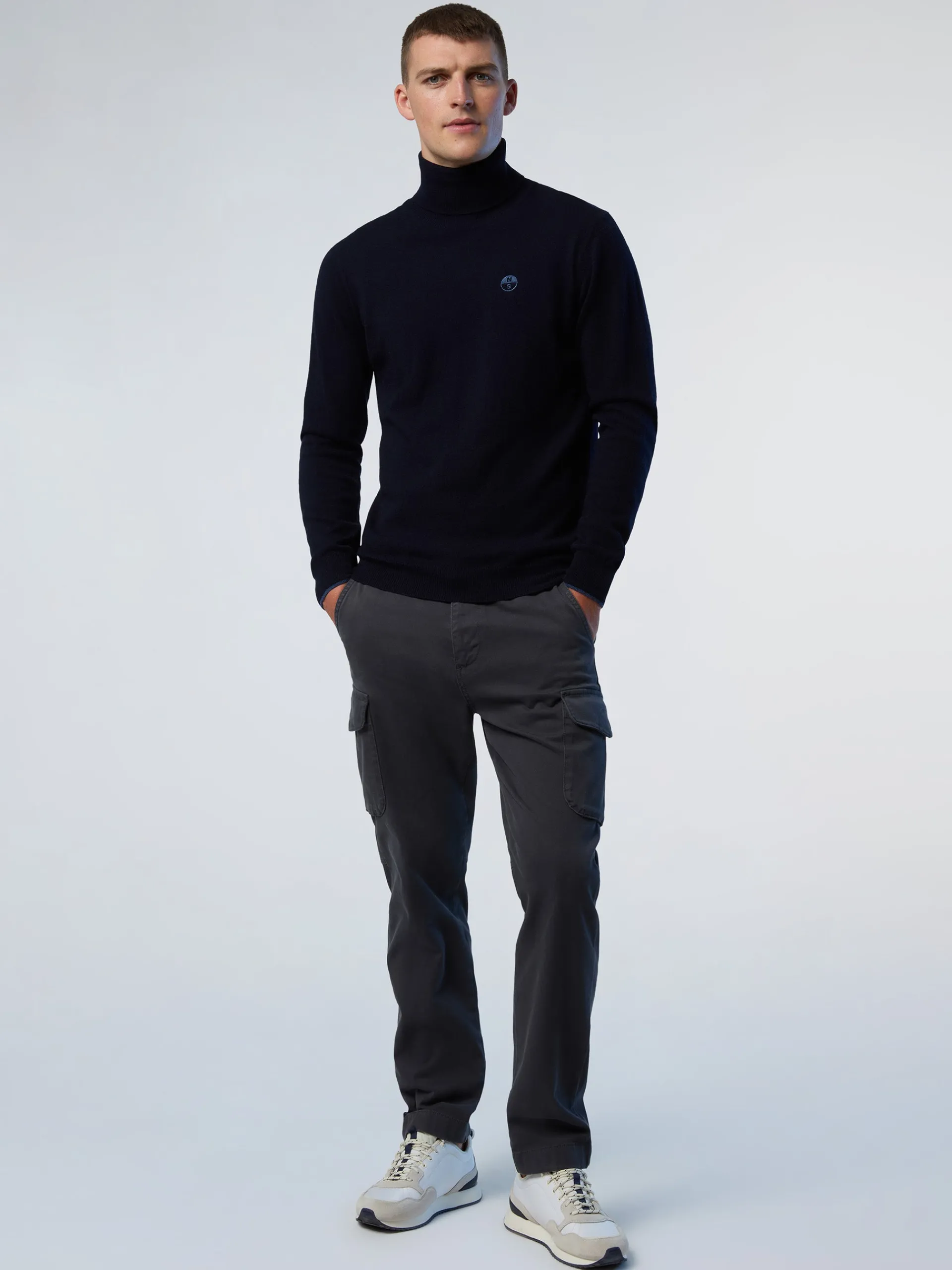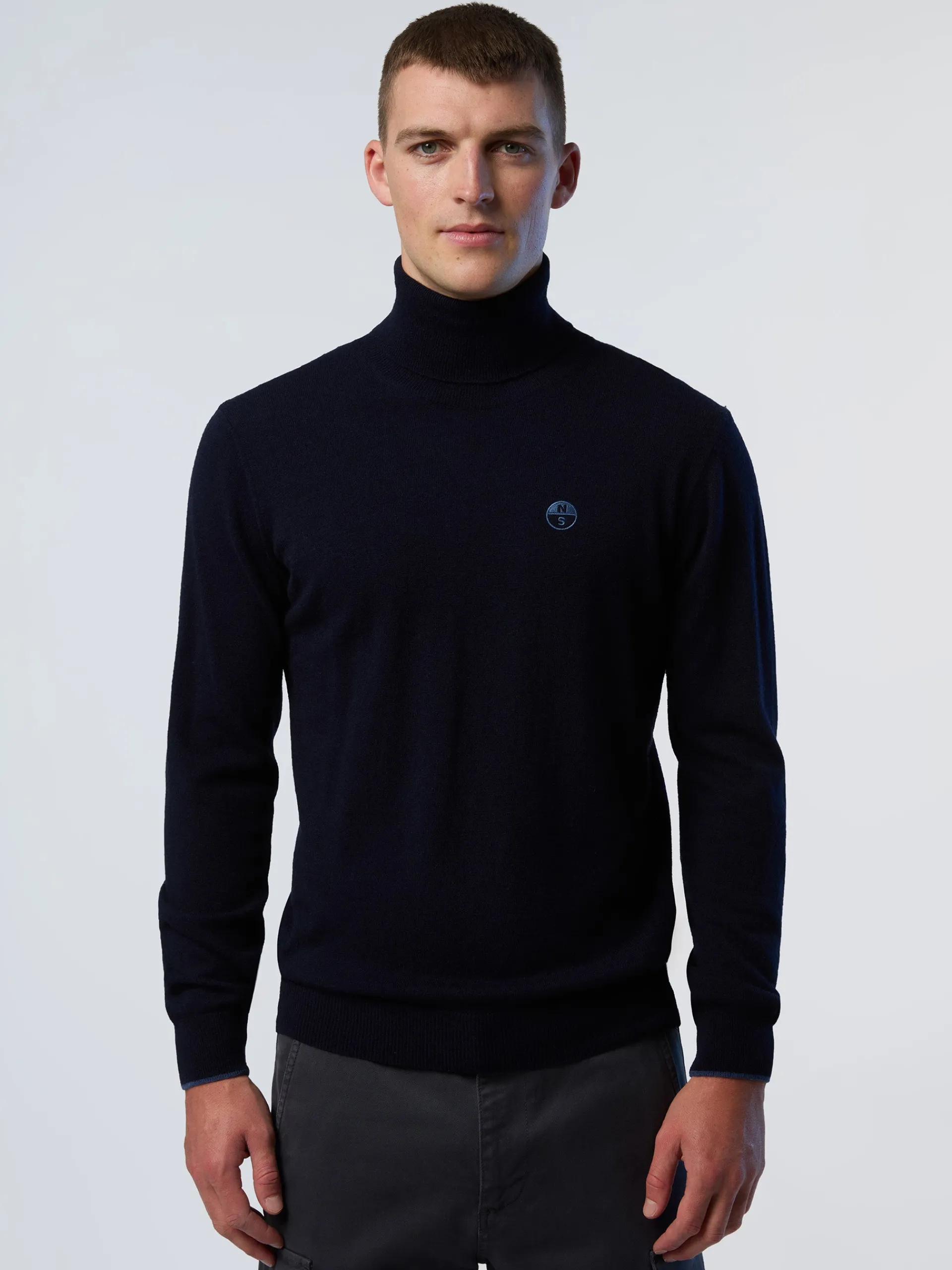 Questo maglione dolcevita è accogliente e sofisticato in ogni occasione. Realizzato in misto cashmere e fibre riciclate, il modello dimostra il nostro impegno positivo per il futuro del pianeta. I bordi a costine creano aderenza, mentre il logo North Sails ricamato sul petto è il tocco iconico che impreziosisce il look.
