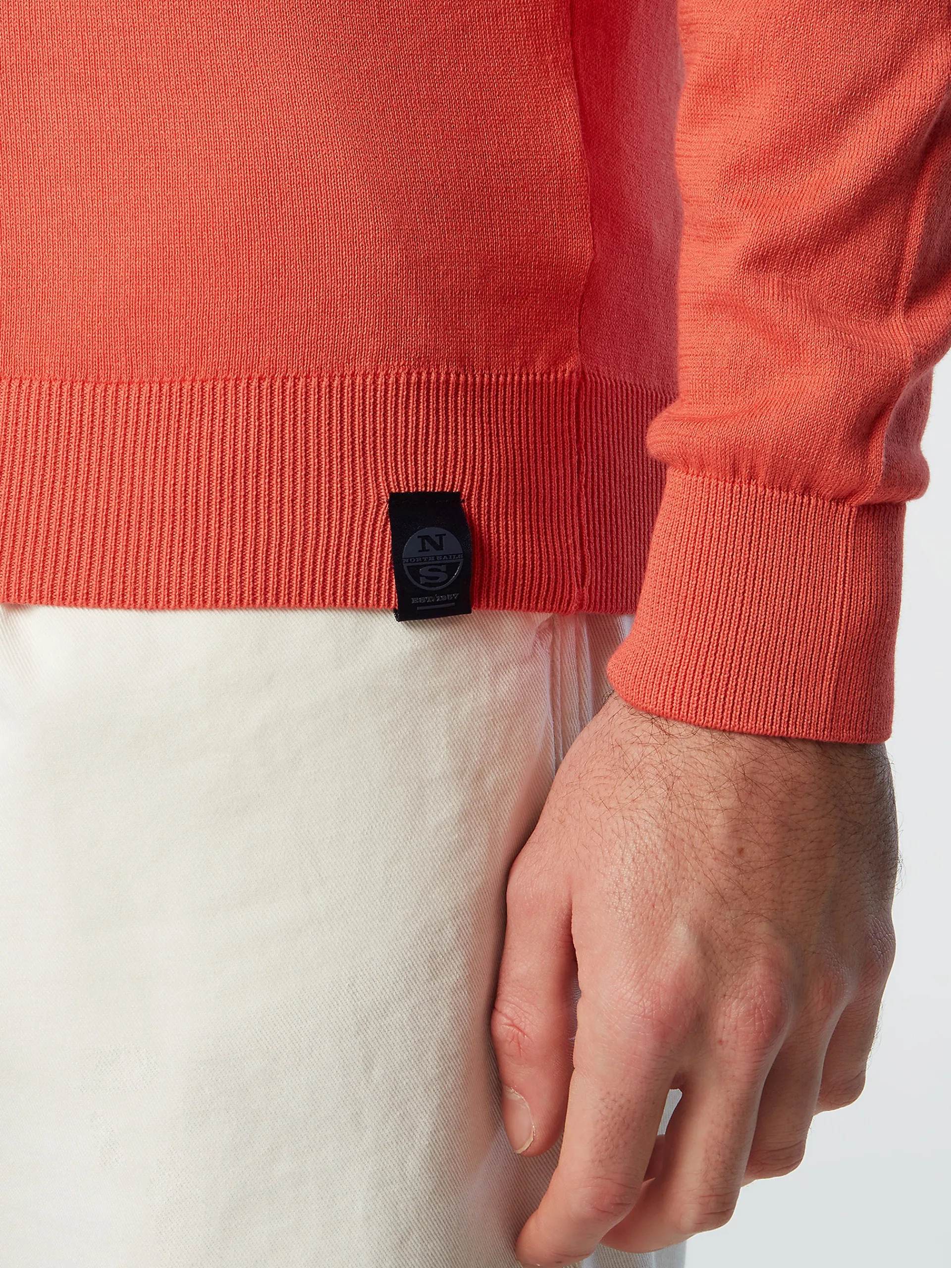 Versatile e pratico in vero stile North Sails, questo maglione è un essenziale del guardaroba quotidiano. Il modello è realizzato in cotone organico dalla trama leggera che riduce le emissioni e il consumo d'acqua. Impreziosito con la label logata al fondo.