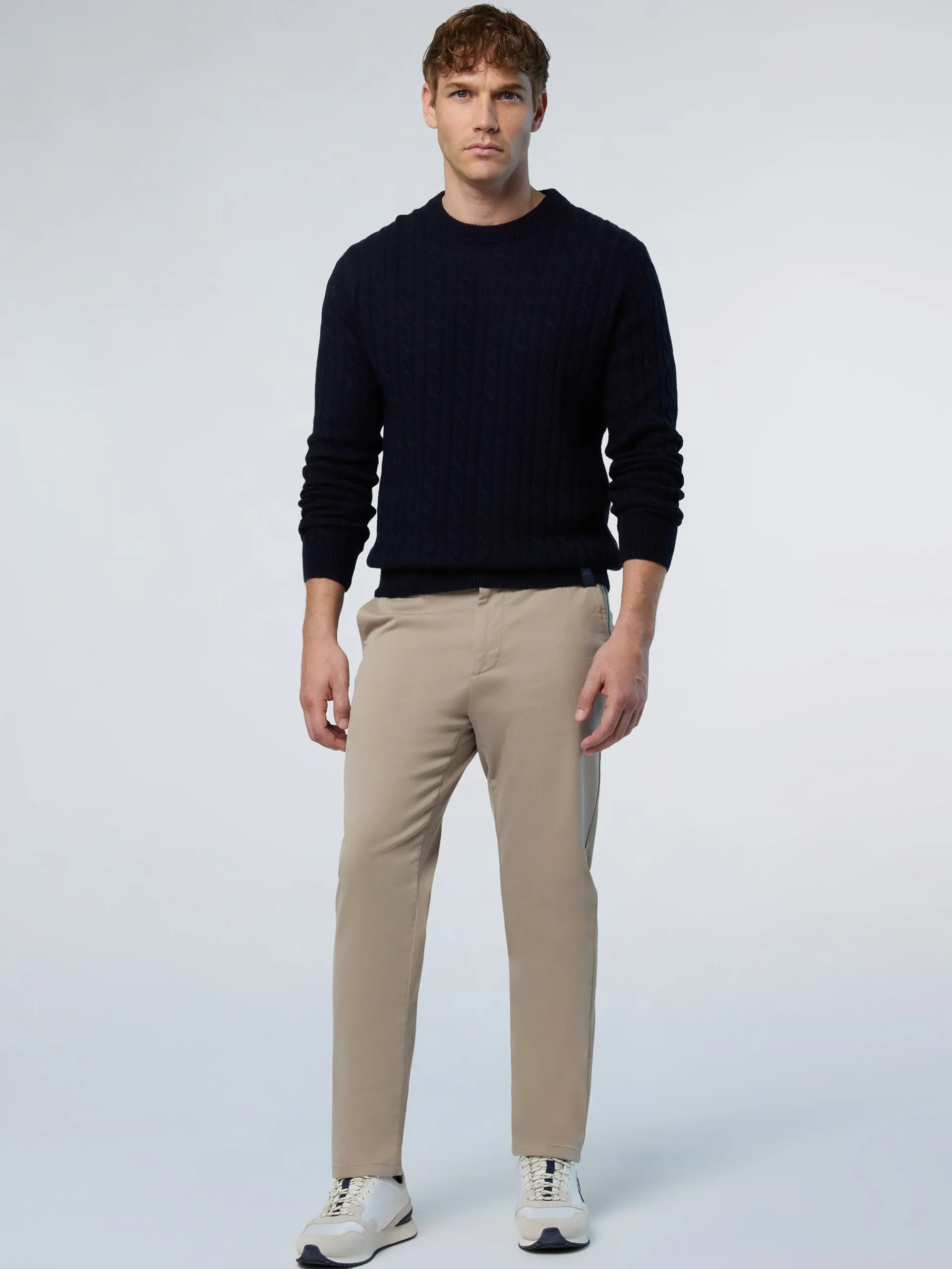 Un capo senza tempo pensato per l'uomo contemporaneo. Questo maglione a trecce è un omaggio al nostro heritage legato al mondo della vela. Il modello è realizzato in morbido misto cashmere con fibre riciclate che dimostra il nostro impegno positivo per gli oceani. I bordi rifiniti a costine creano aderenza, mentre la label North Sails aggiunge un tocco di classe.