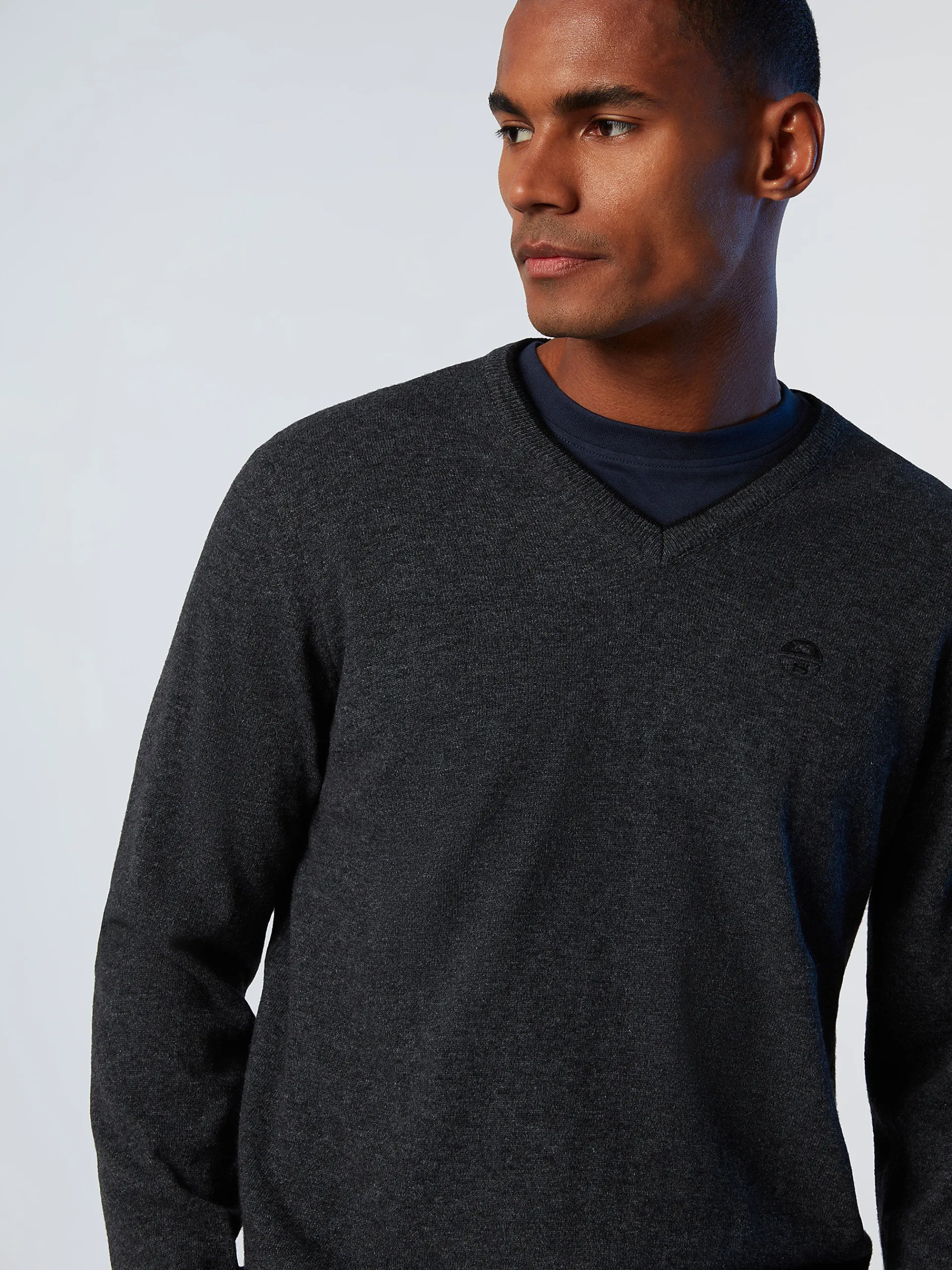 Comodo da indossare sopra una t-shirt o una camicia, questo maglione con scollo a V è una perfetta sintesi di stile contemporaneo e attenzione al pianeta. Il modello è realizzato in misto cashmere riciclato, morbido al tatto e gentile con l'ambiente. Rifinito con bordi a costine e logo ricamato sul petto.