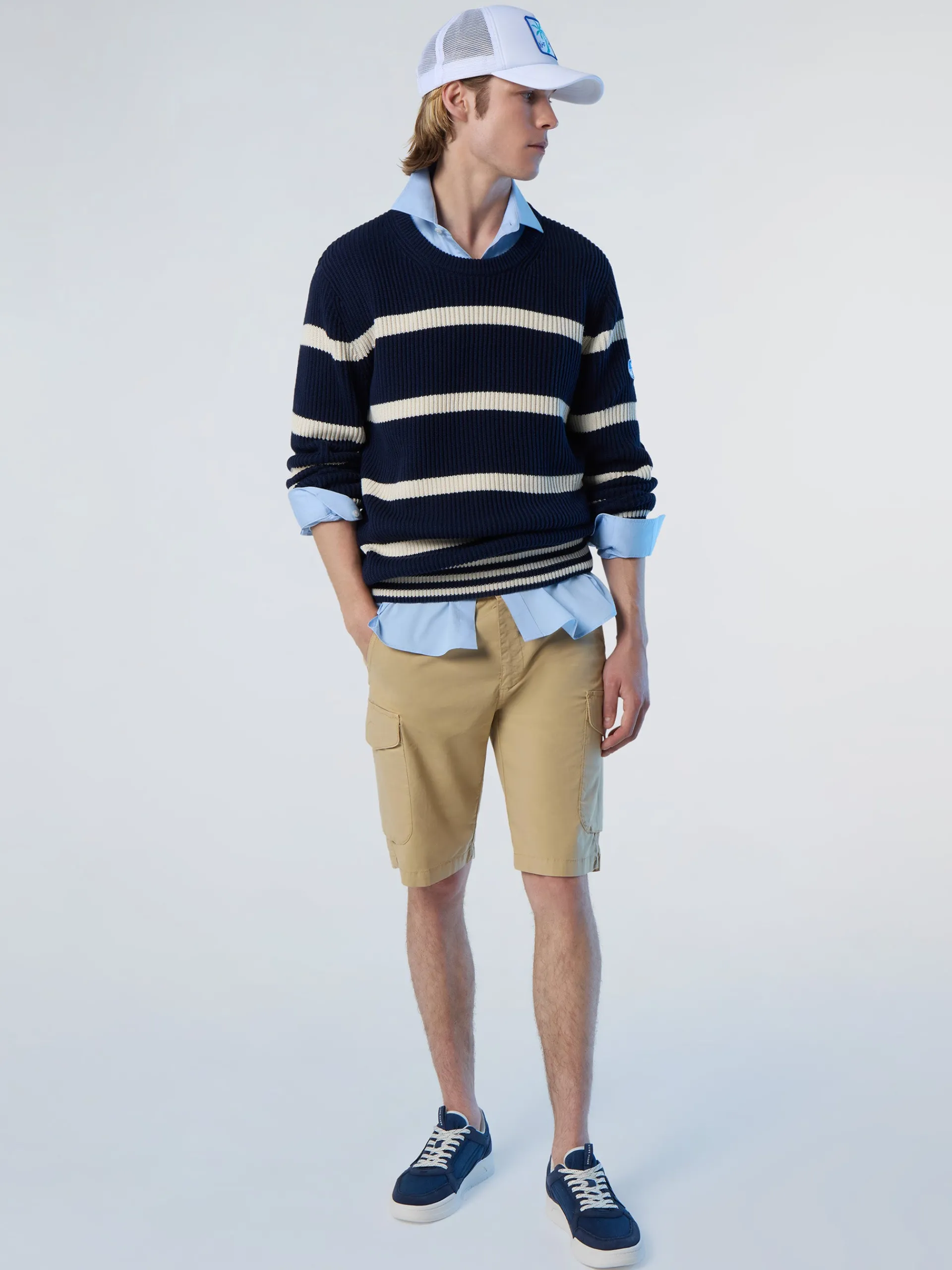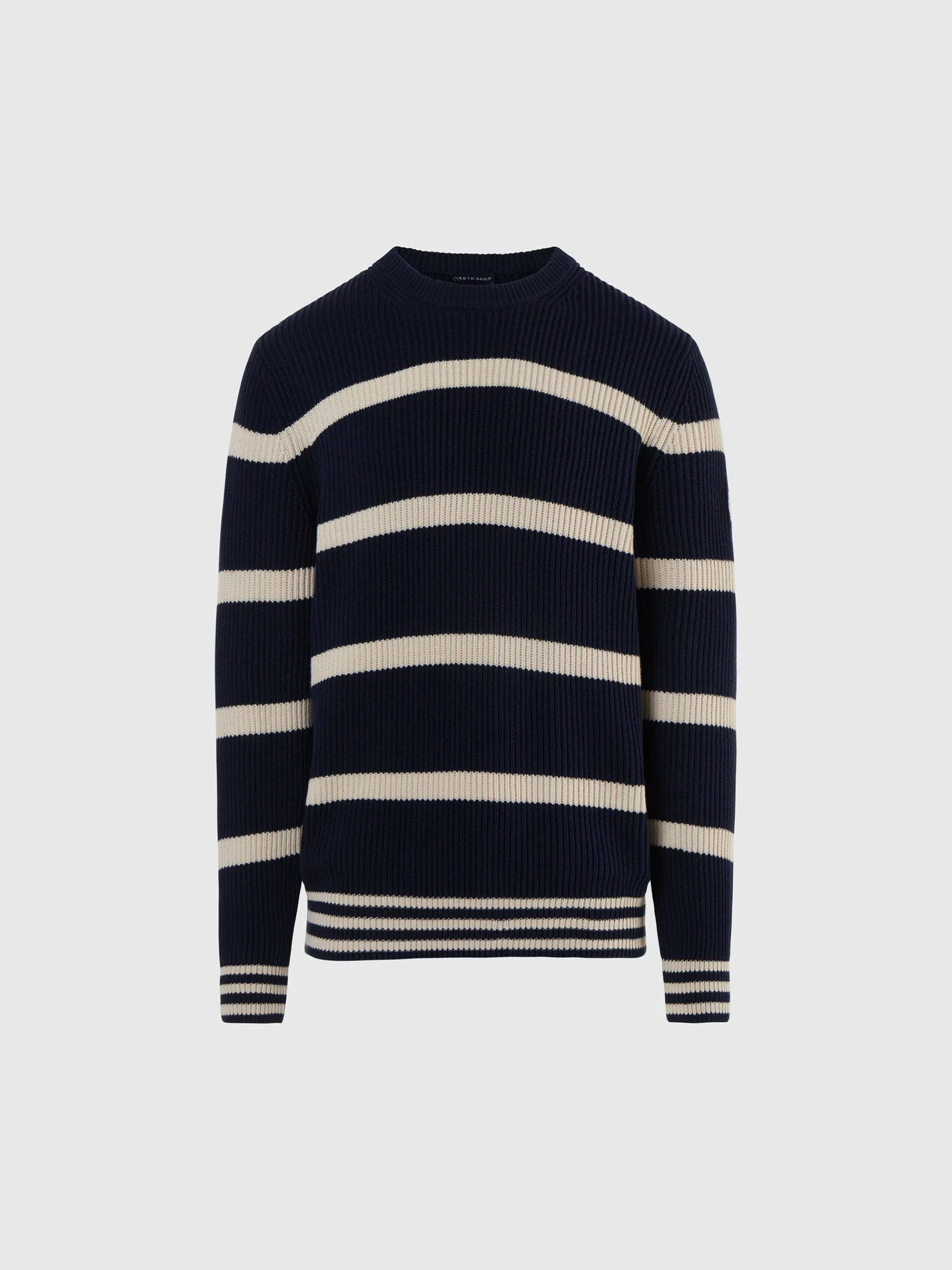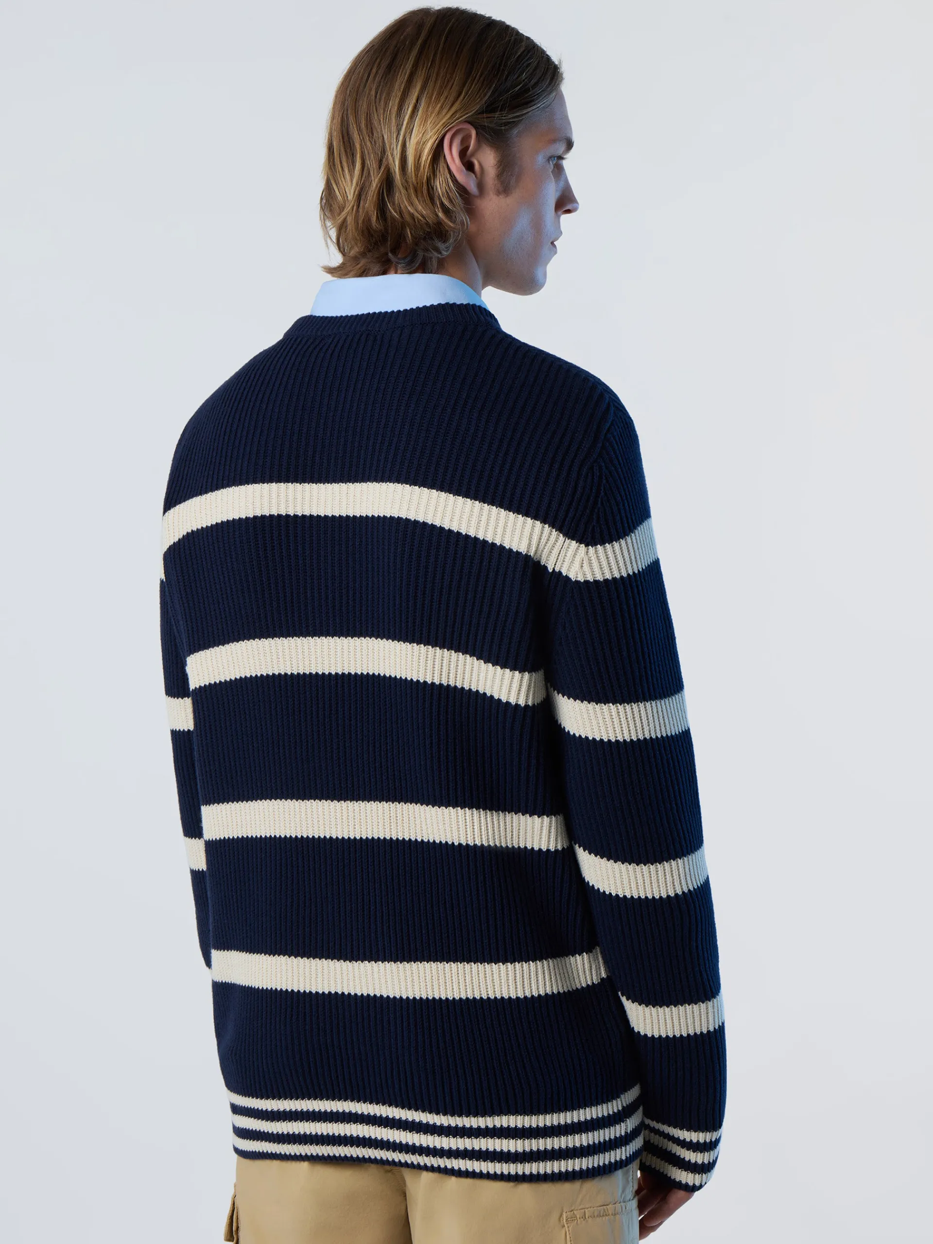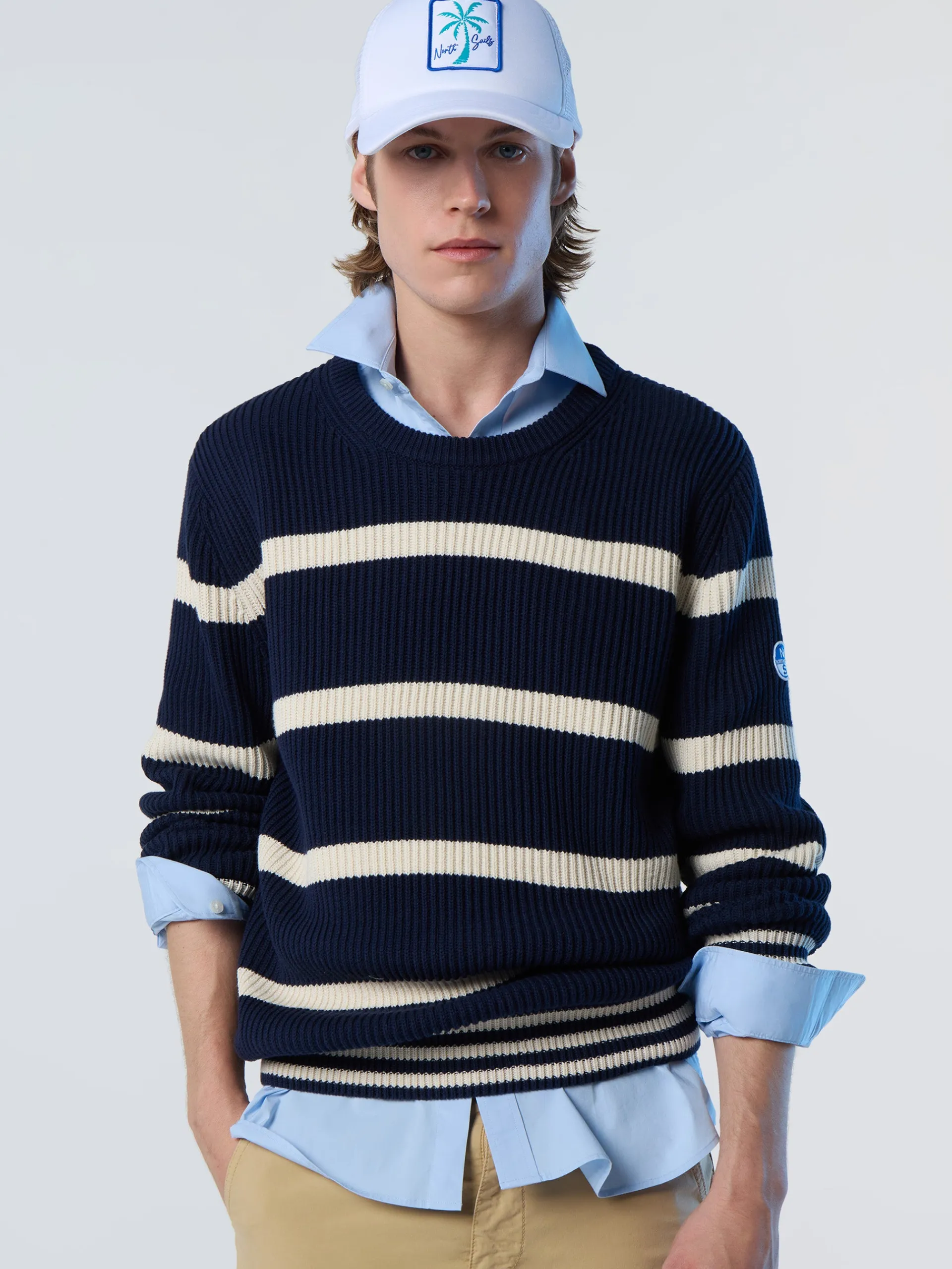 Il maglione da uomo che combina design accogliente e ispirazione nautica. Il modello si caratterizza per l'intarsio a maxi righe bicolor che richiama le nostre origini legate alla vela ed è realizzato in cotone organico con lavorazione a costa inglese. Impreziosito con il logo sulla manica per un distintivo tocco North Sails.