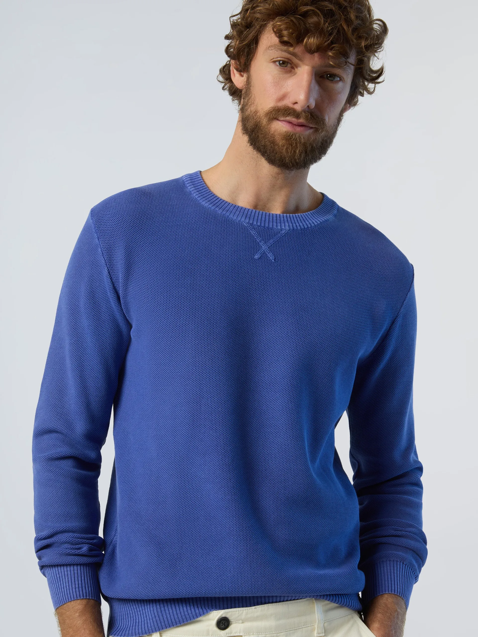 Il maglione da uomo dal look rilassato e accogliente. Il modello dimostra il nostro impegno per il rispetto del pianeta perchè è realizzato in maglia di cotone organico che riduce le emissioni e il consumo di acqua. Si caratterizza per la lavorazione a nido d'ape e il trattamento stonewashed che danno al capo un mood autentico.