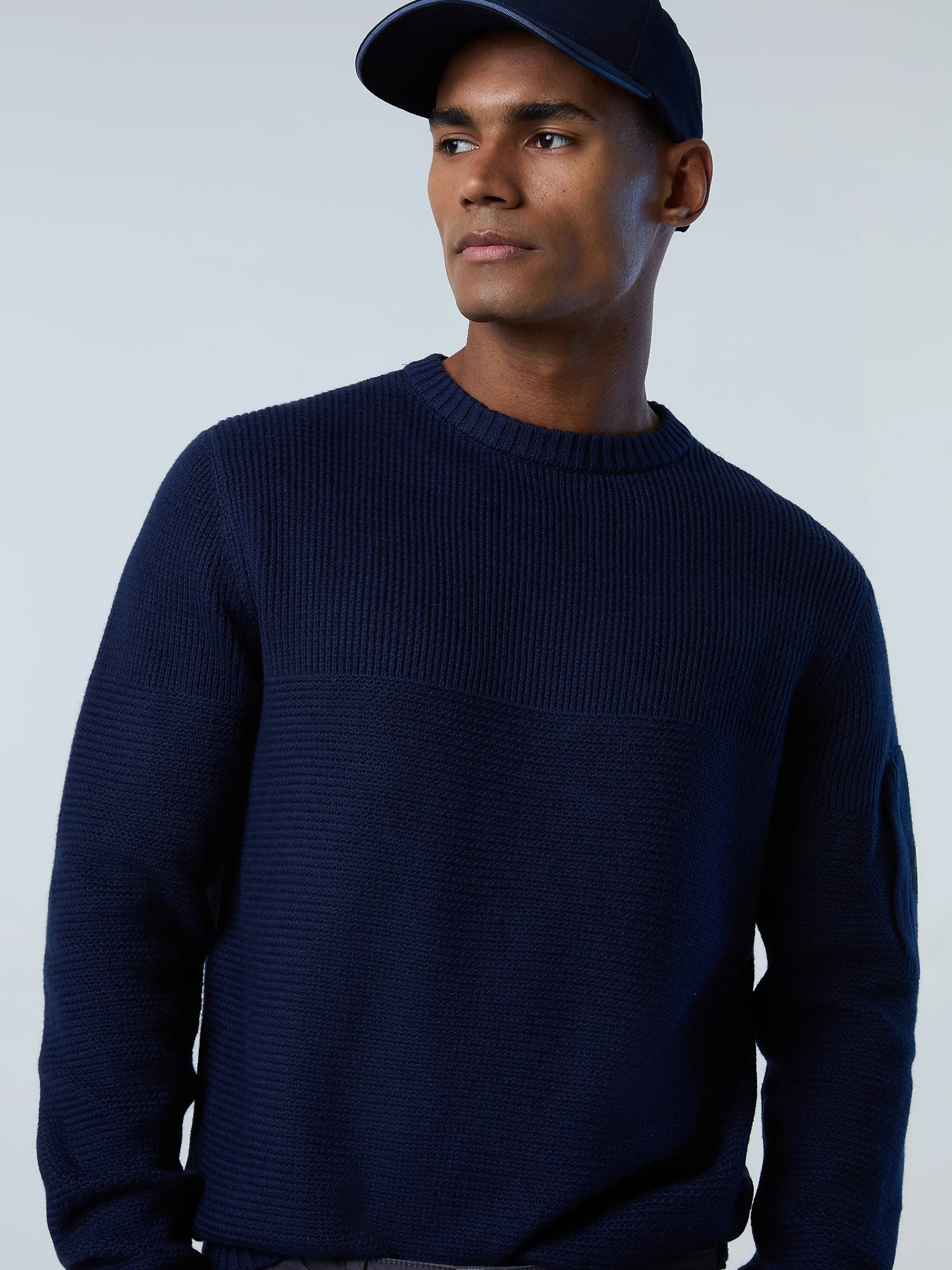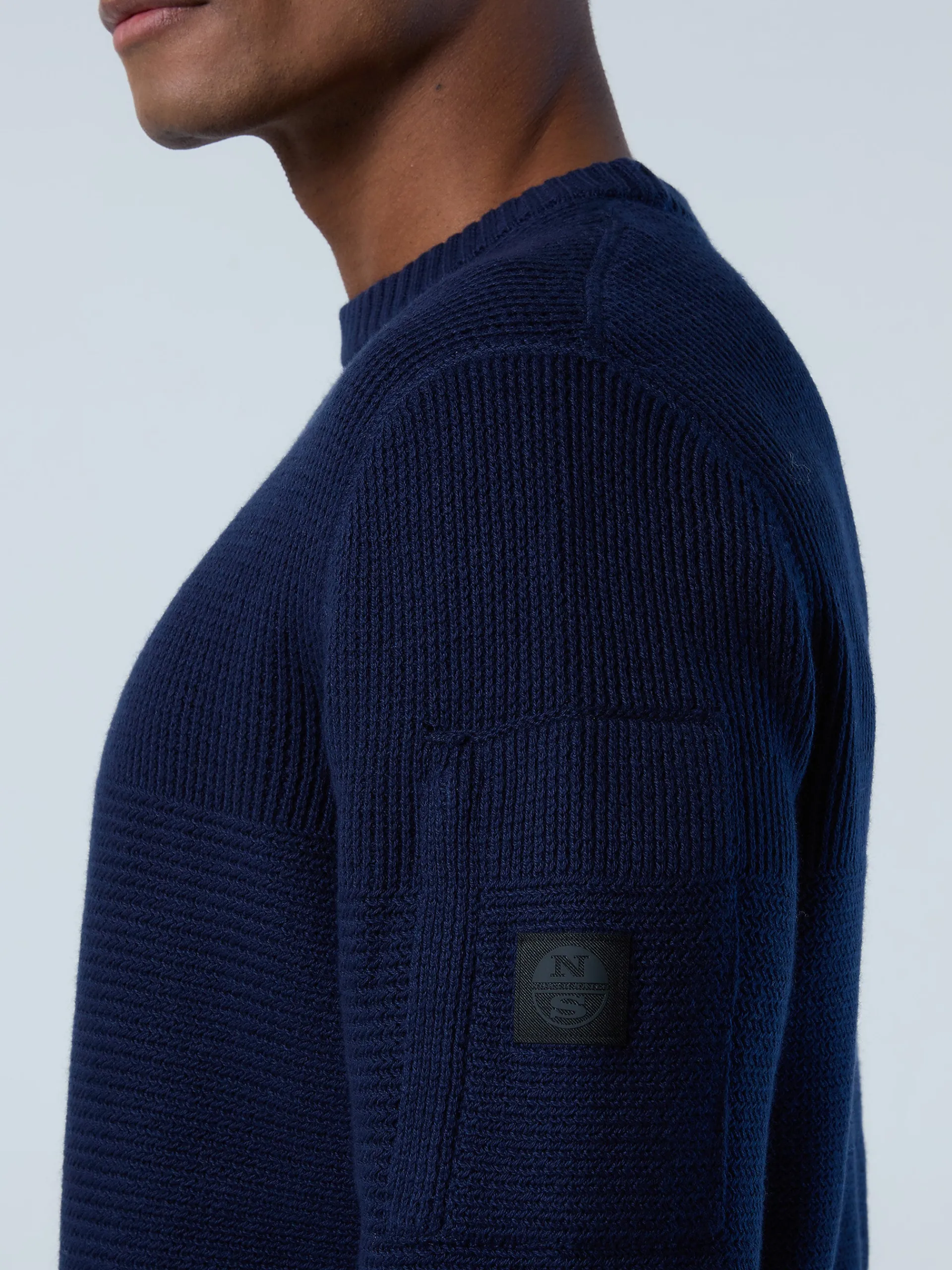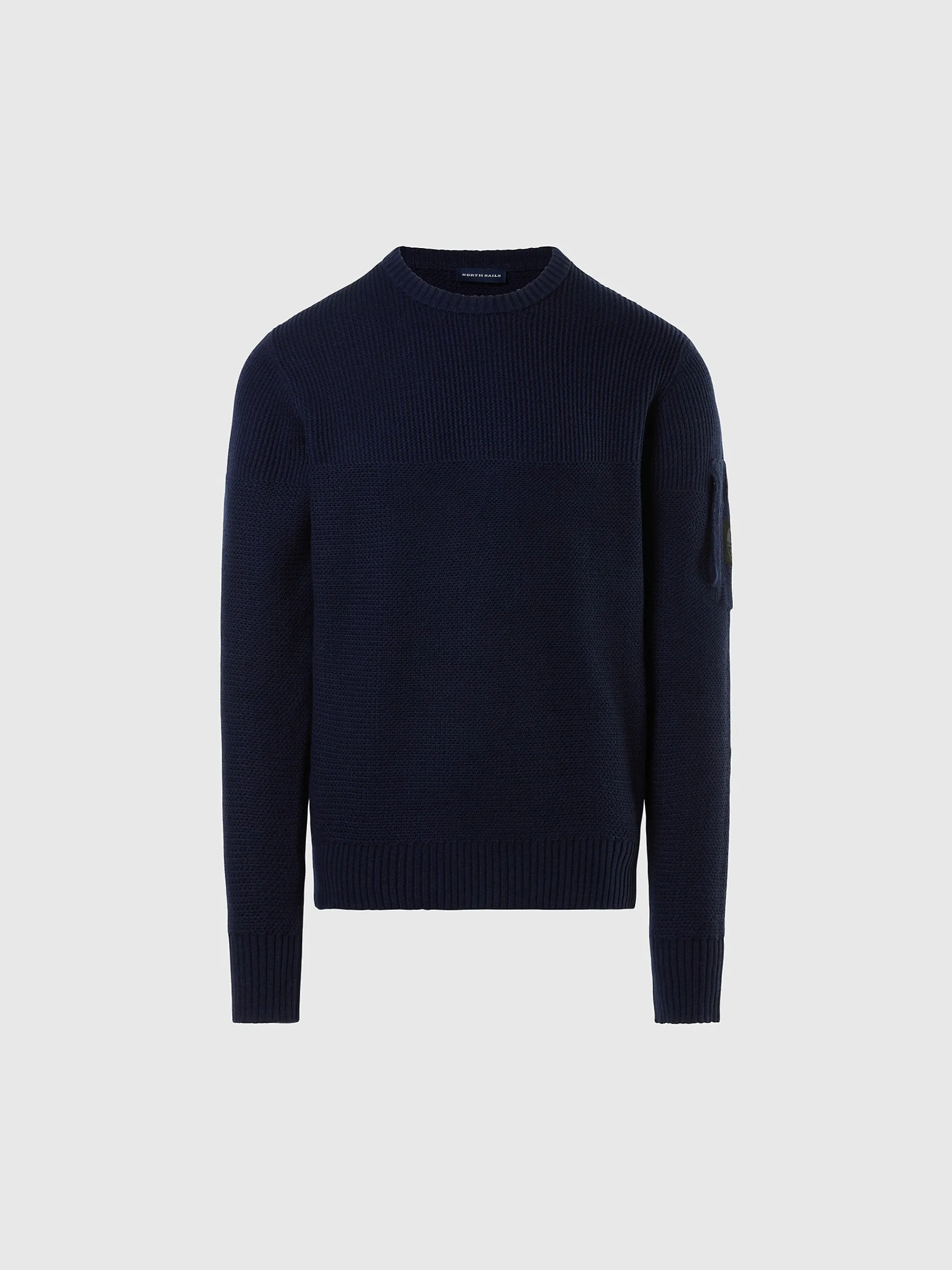 North Sails reinterpreta un classico senza tempo del guardaroba invernale. Questo maglione girocollo da uomo è realizzato in misto lana e cotone organico a basso impatto ambientale. Si caratterizza per la lavorazione a coste con orientate a contrasto che danno un aspetto dinamico al look e la tasca applicata sulla manica. Personalizzato con il logo North Tech.