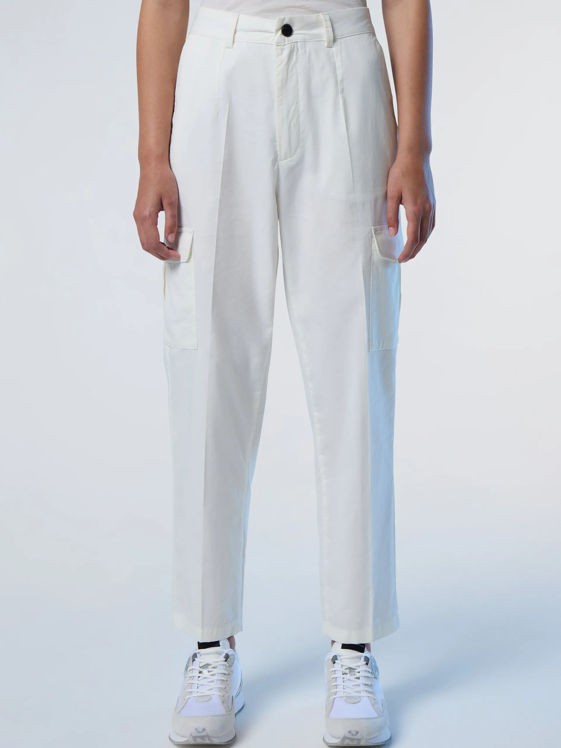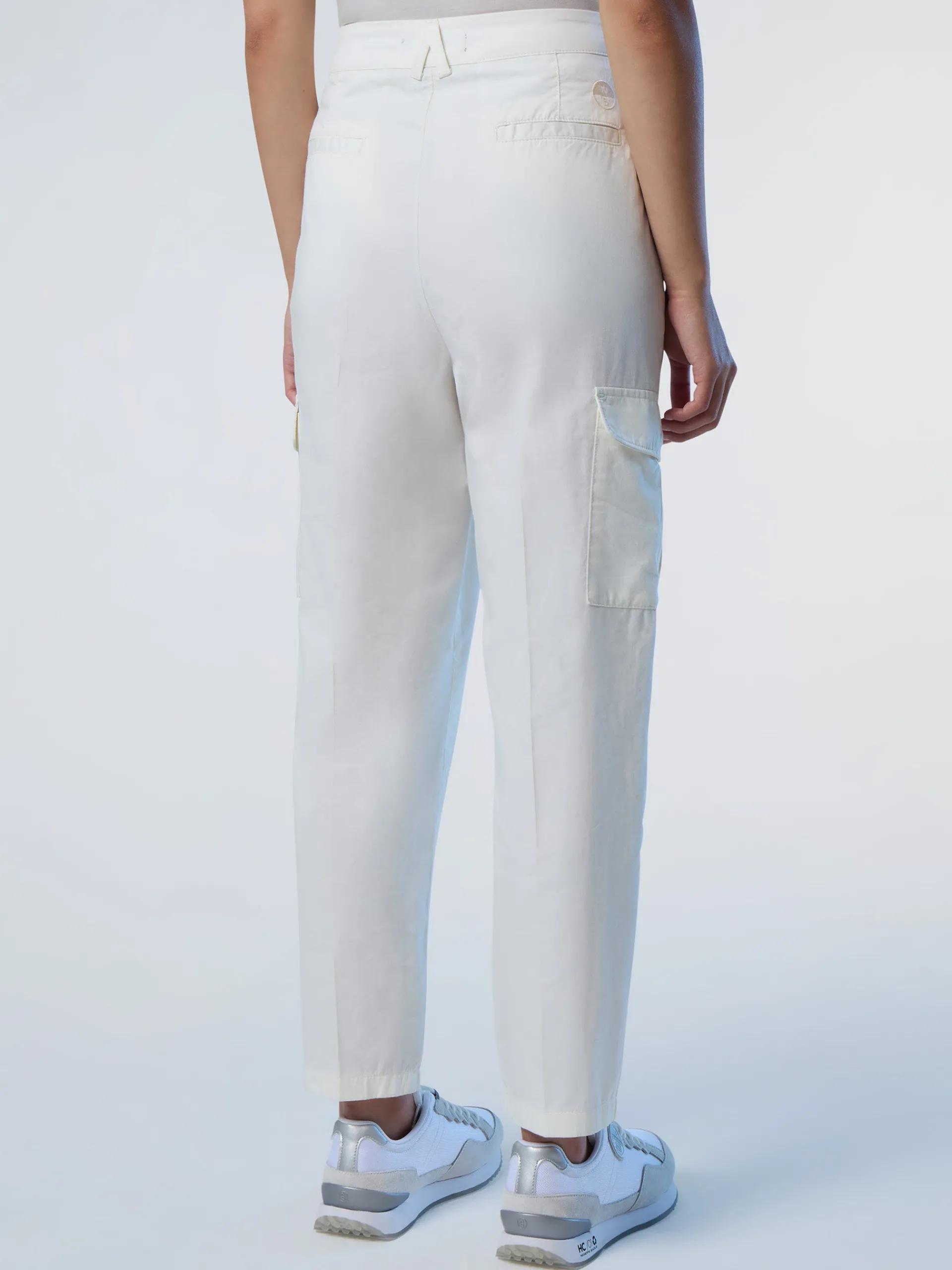 Questi pantaloni cargo da donna combinano ricerca estetica e spirito funzionale e diventano l'essenziale raffinato del guardaroba quotidiano. Il modello esprime il nostro impegno positivo per il pianeta perchè è realizzato in gabardina di misto cotone organico e SeaCell™